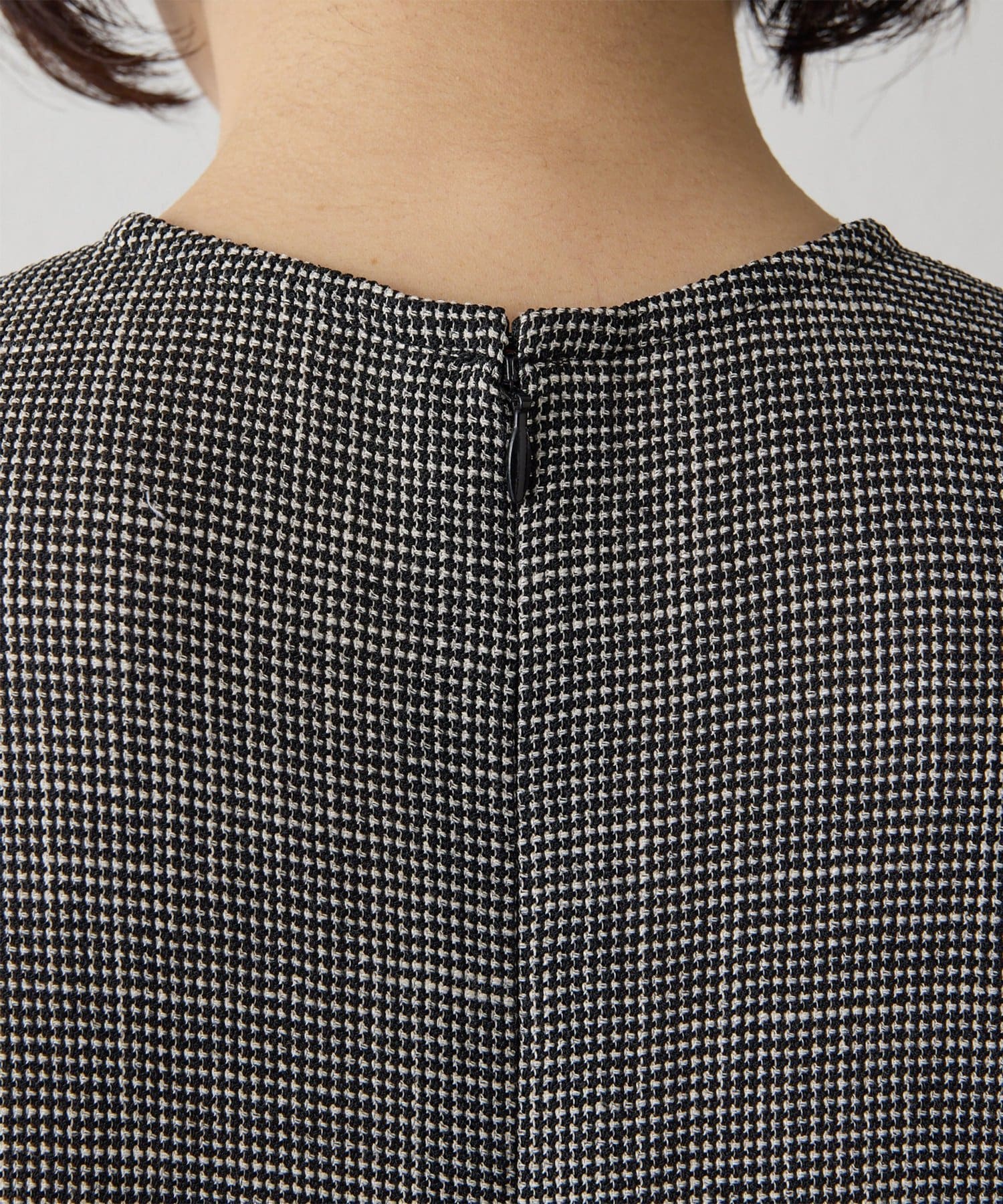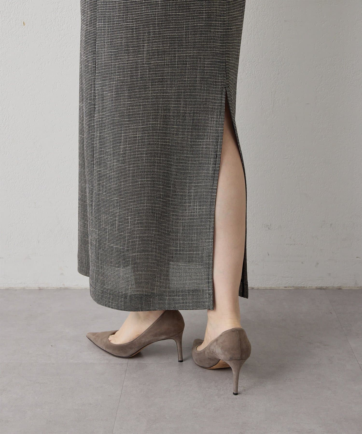 ■ミニマルなイメージのアームカットや深めのバックスリットもポイントになり、軽やかなムードを演出。
