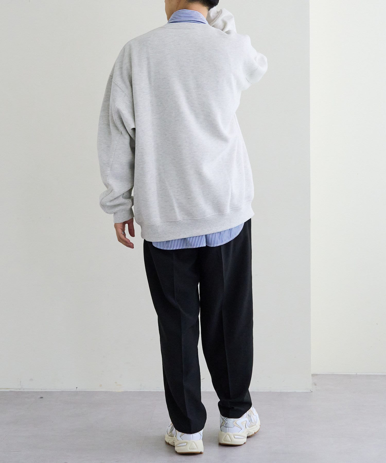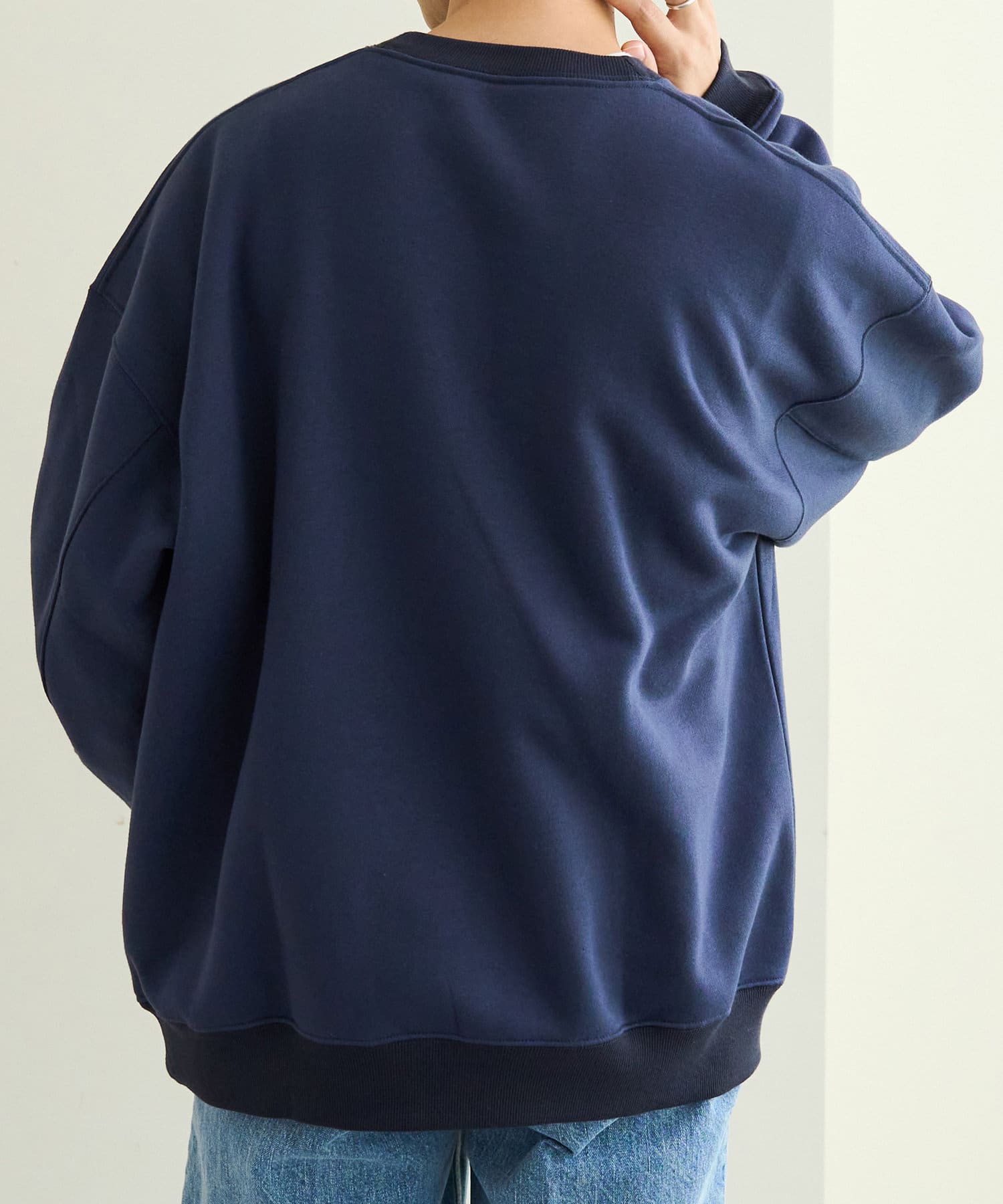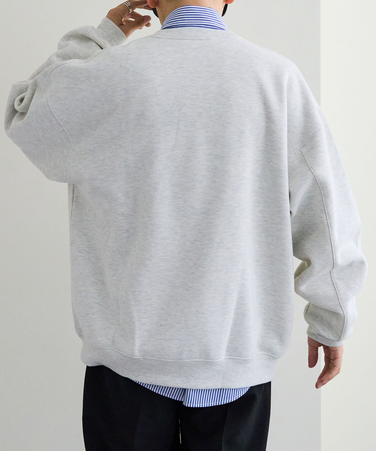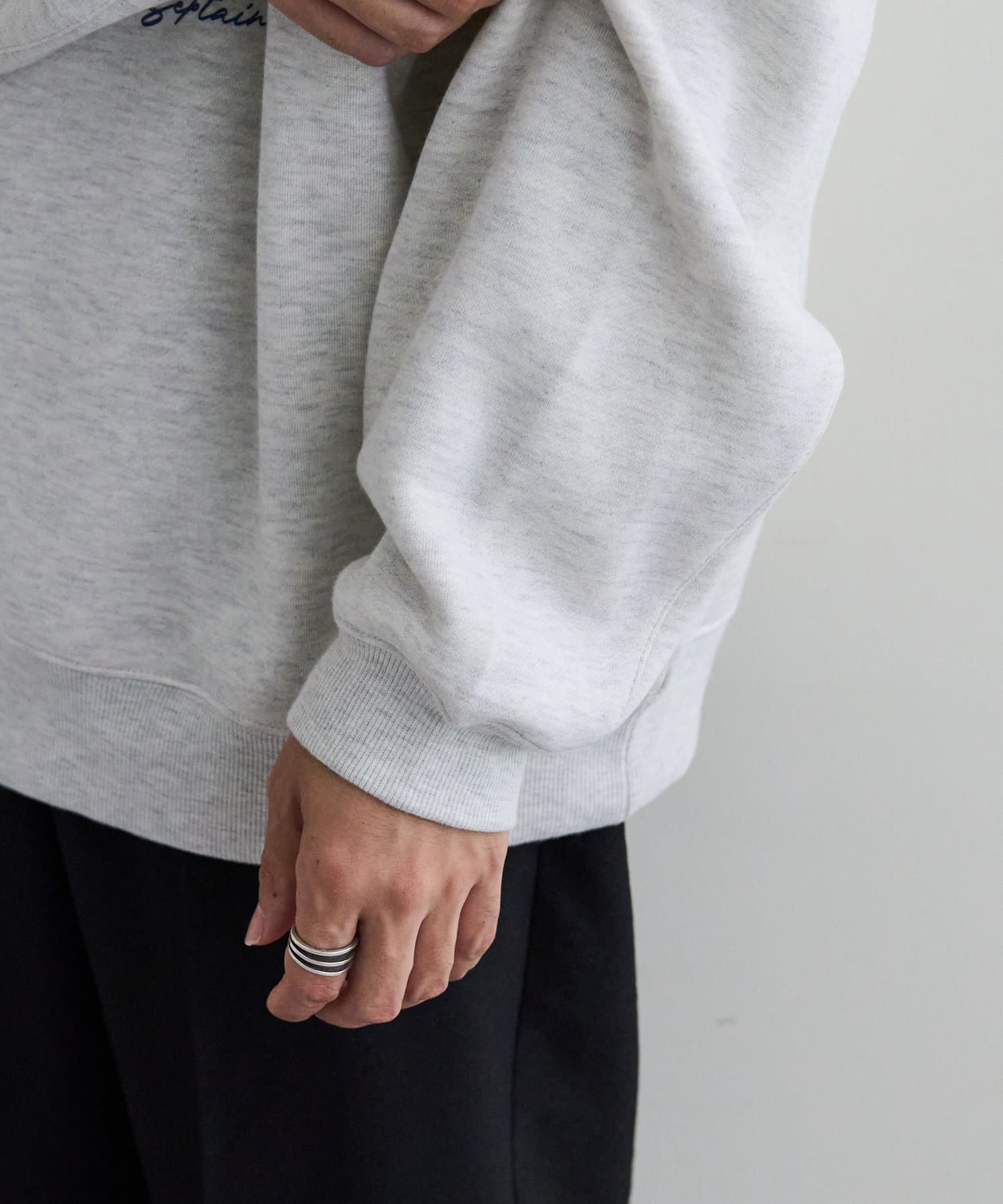 ヘヴィウェイトで柔らかなスウェット生地は一枚でも暖かい裏起毛仕様に、ラインを拾いにくいたっぽりとしたスリーブや、ヒップ辺りまであるゆるっとしたビッグシルエットは男女兼用のユニセックスサイズに仕上げました。