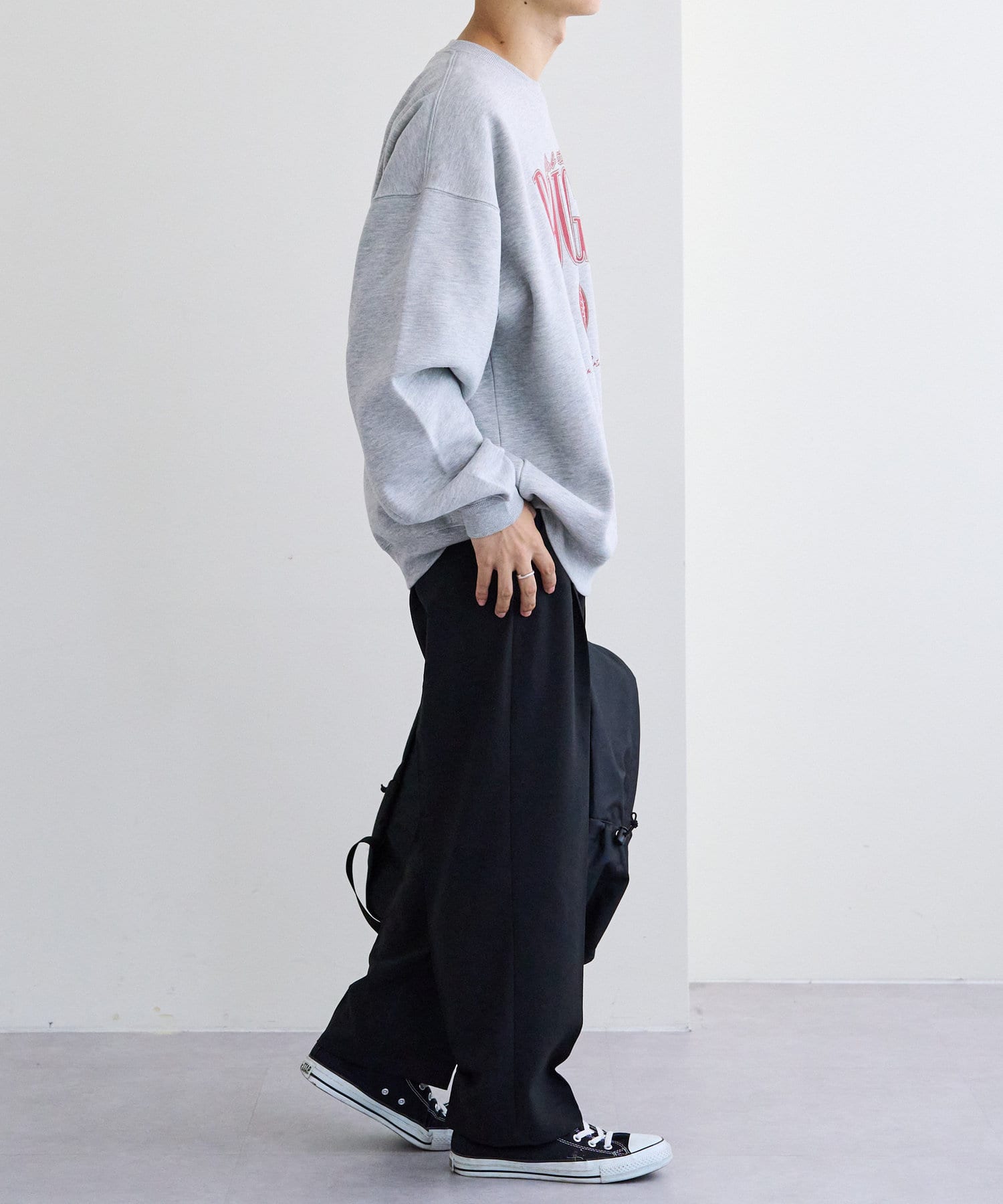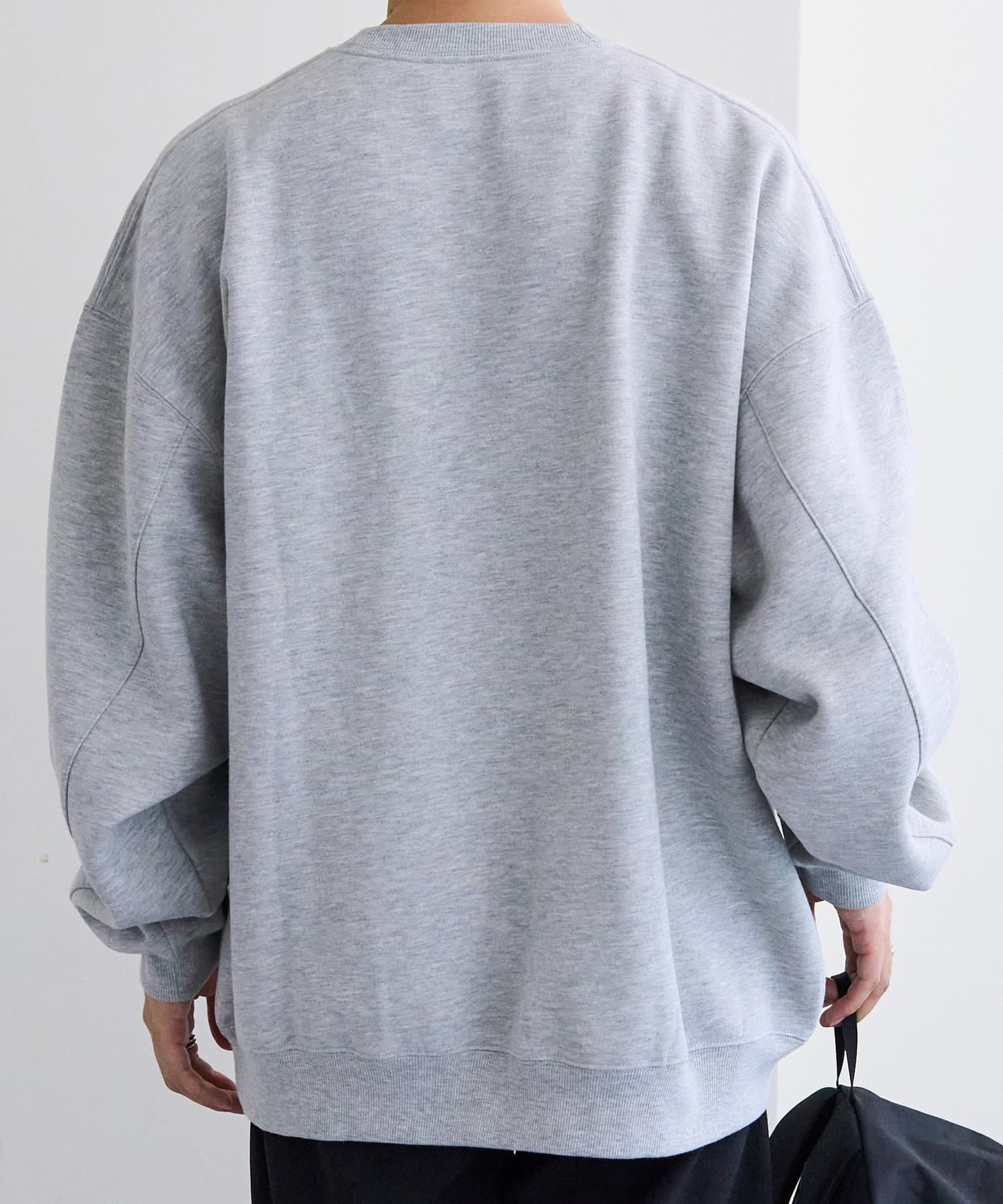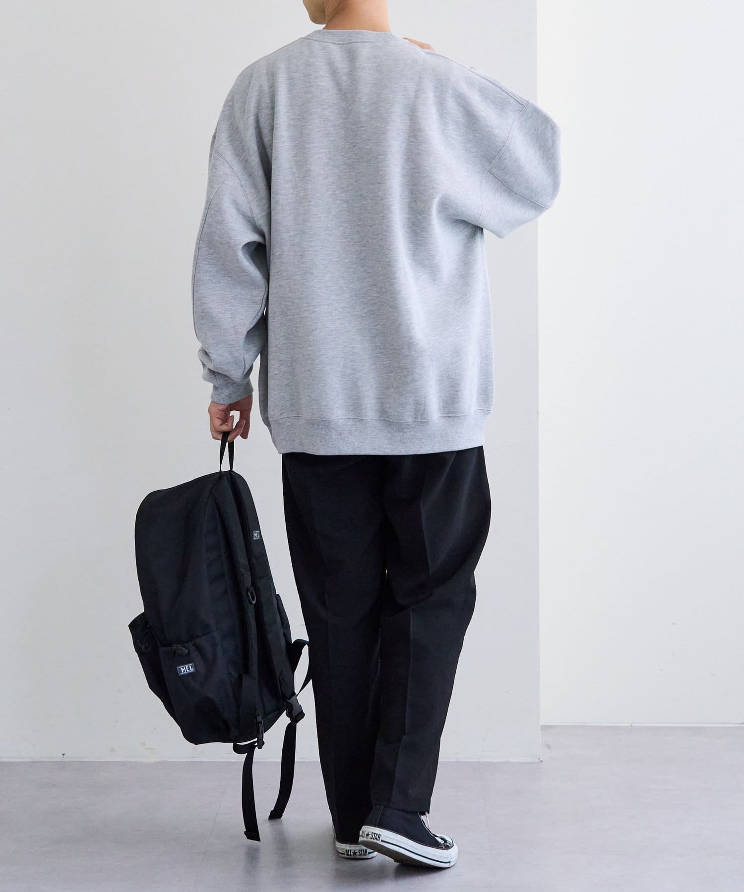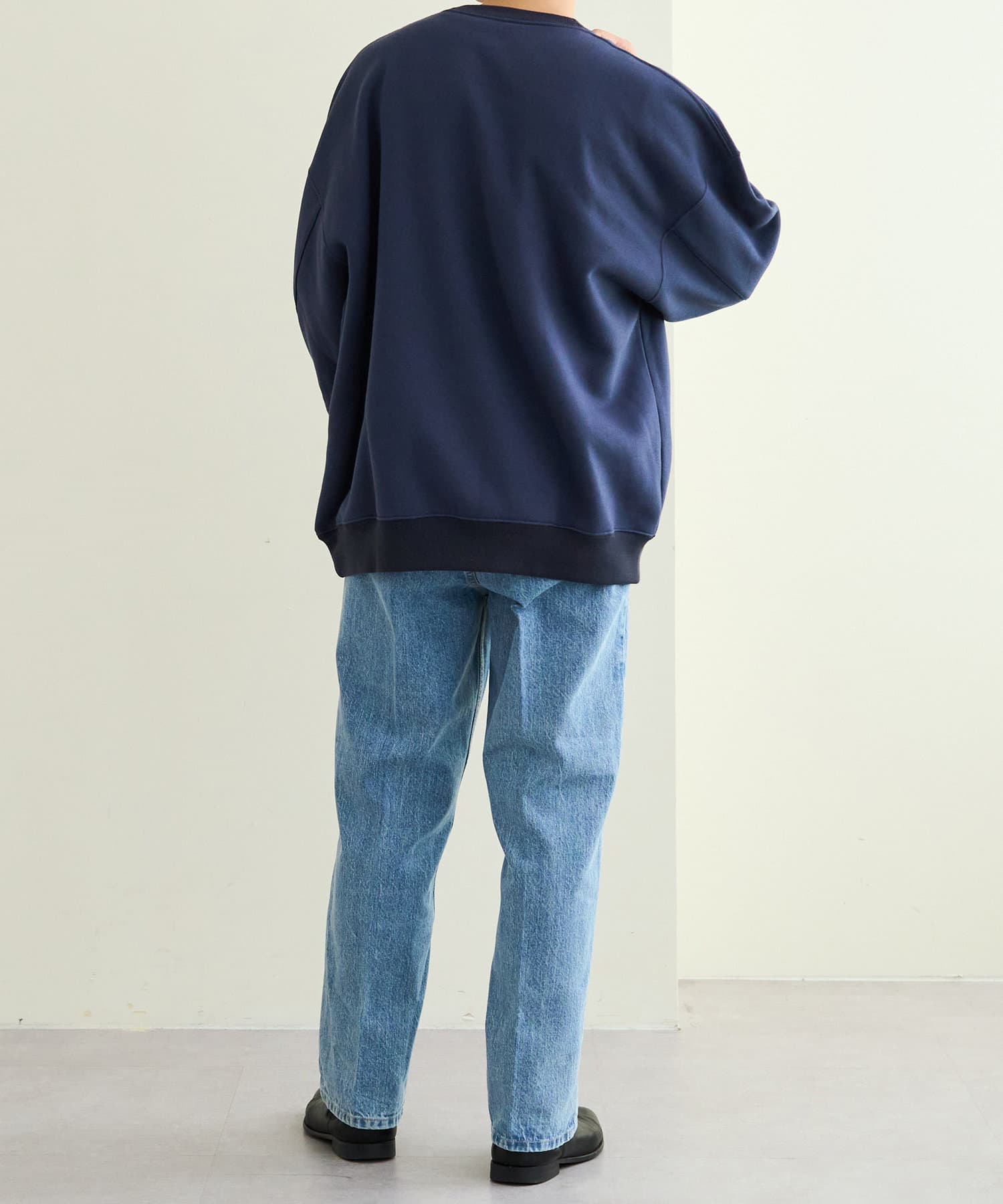 ヘヴィウェイトで柔らかなスウェット生地は一枚でも暖かい裏起毛仕様に、ラインを拾いにくいたっぽりとしたスリーブや、ヒップ辺りまであるゆるっとしたビッグシルエットは男女兼用のユニセックスサイズに仕上げました。