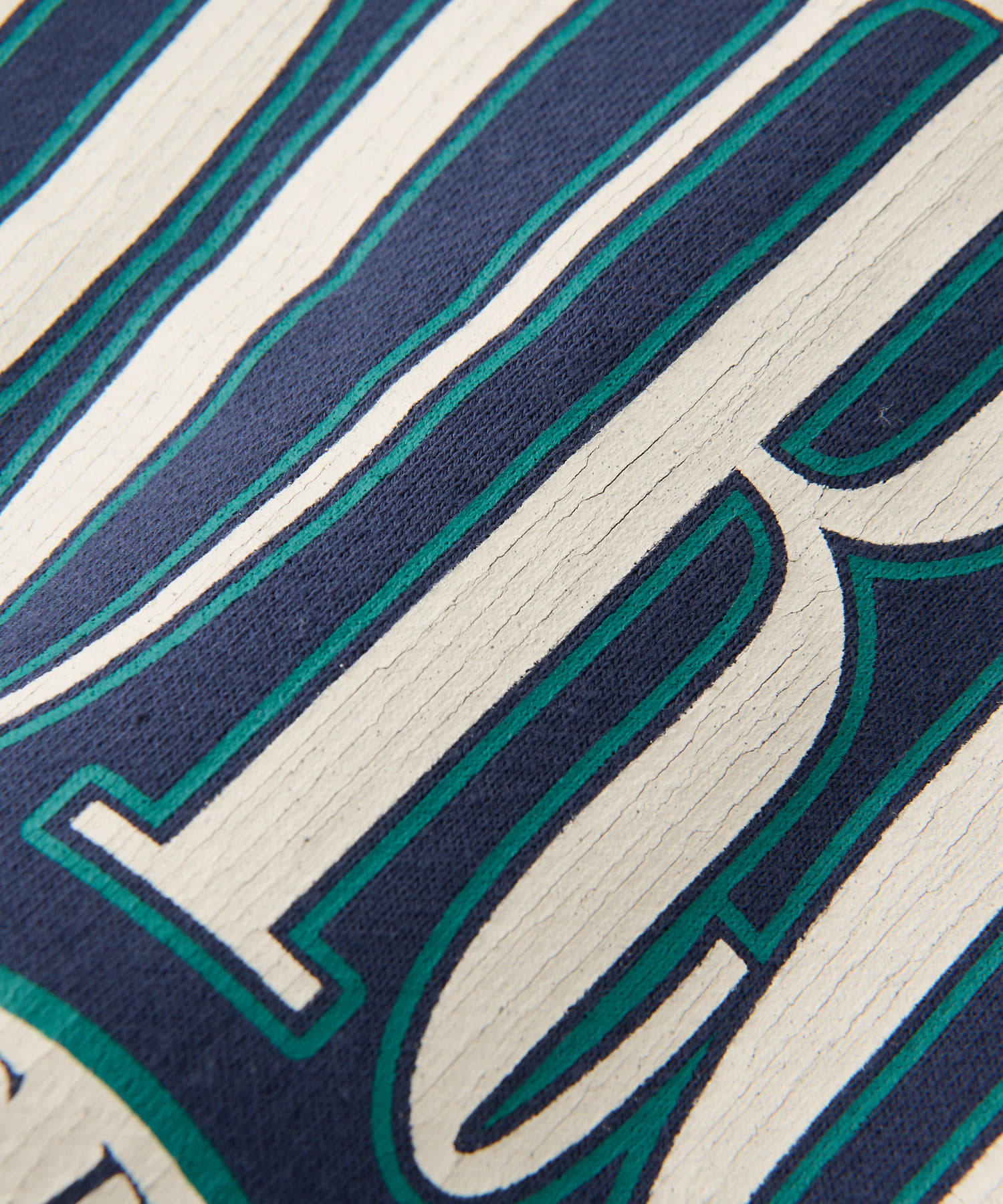 Discoatらしい拘りの配色使い、プリント部分は雰囲気を演出するひび割れのような加工を施したヴィンテージ感あるデザインが特徴です。