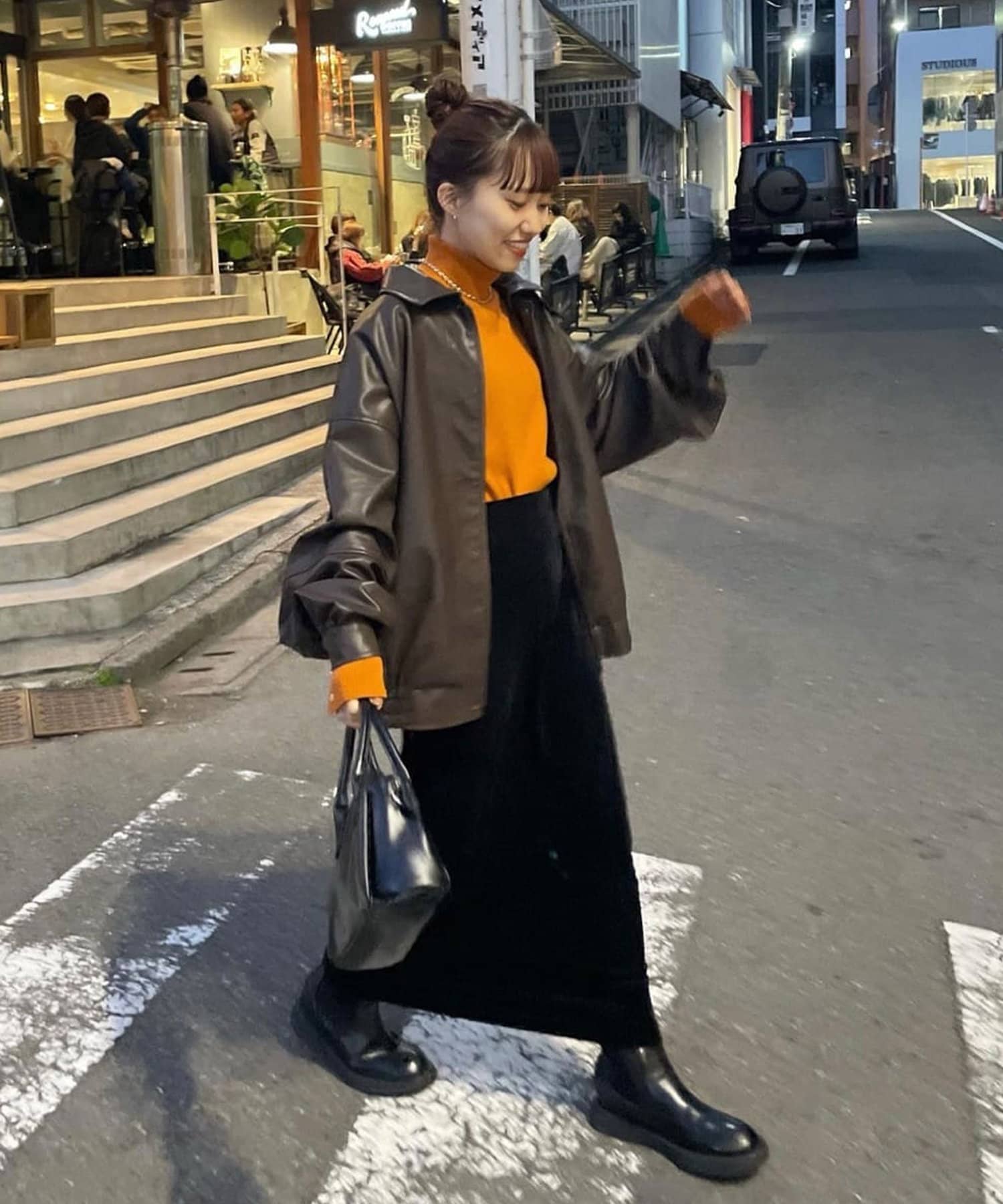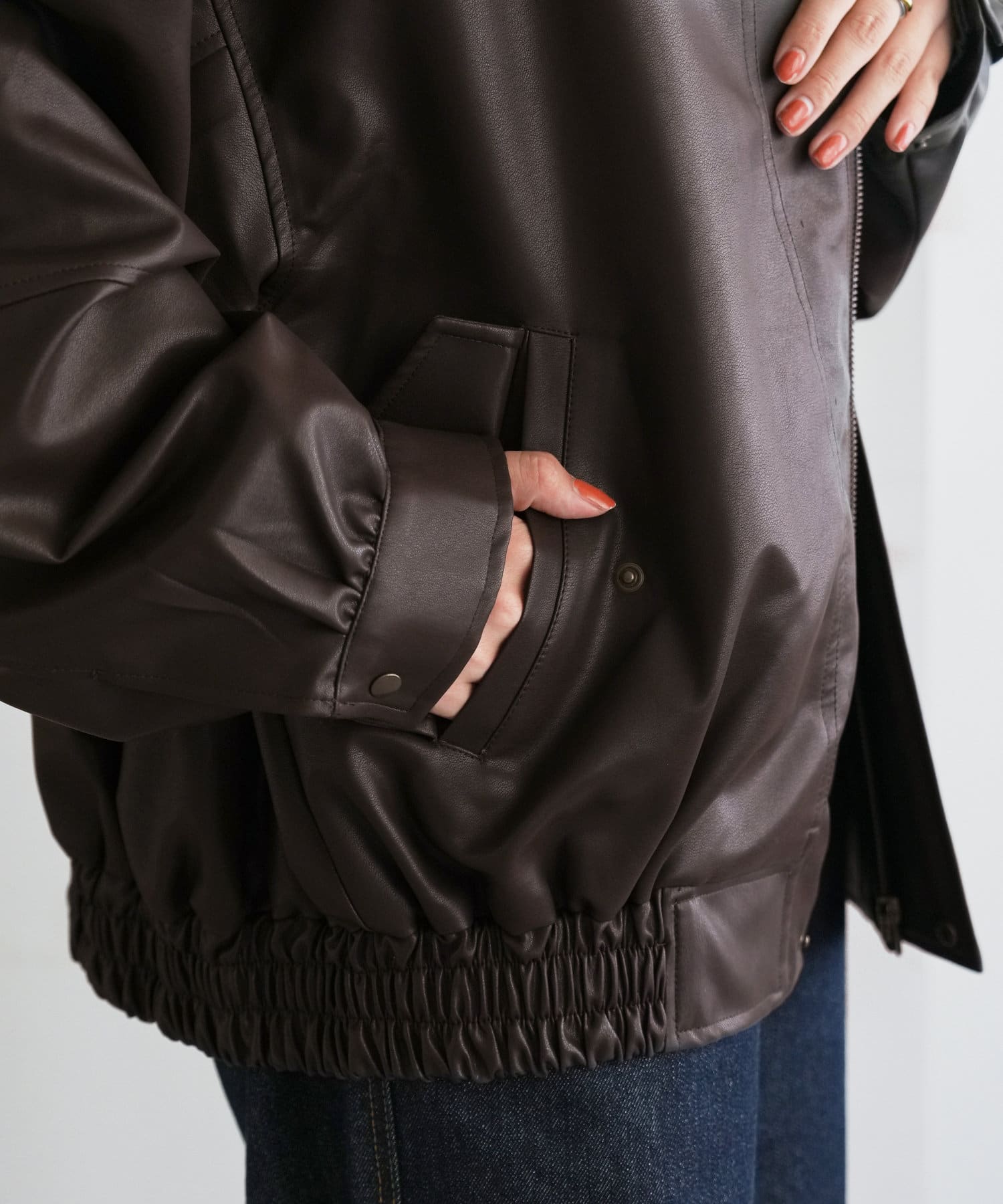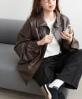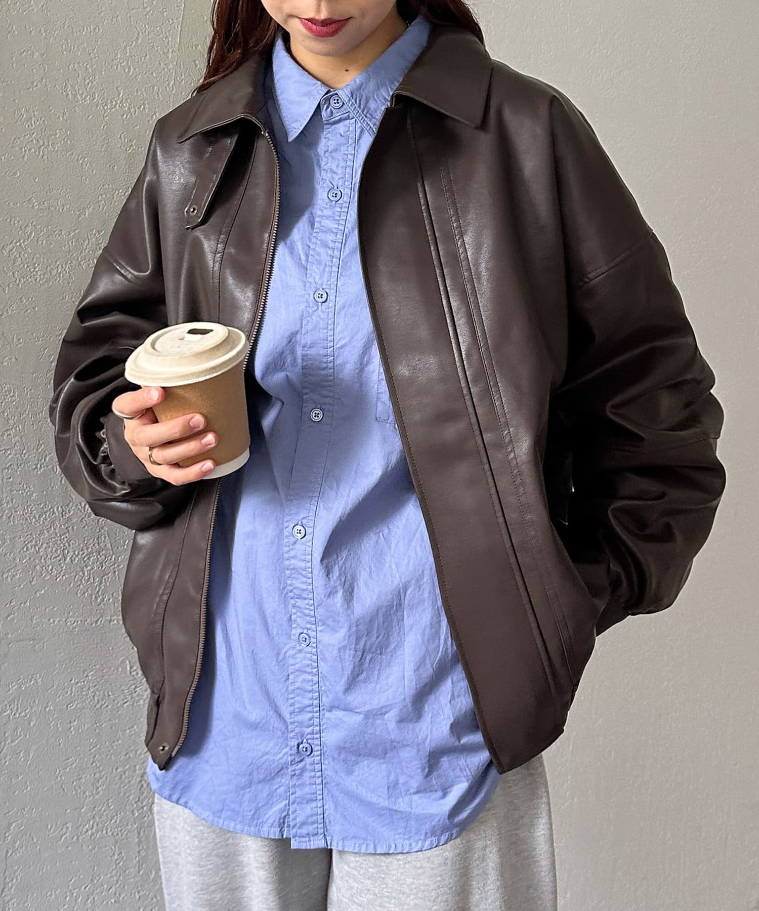 購入場所:店舗ふくよかな体型でもダボっとしているので中に着込めるのと、レザージャケットだけどブラウンなので女性らしくも着こなせるのでとてもいいです。タイトなスカートやワンピースと合わせるのがお気に入りです!