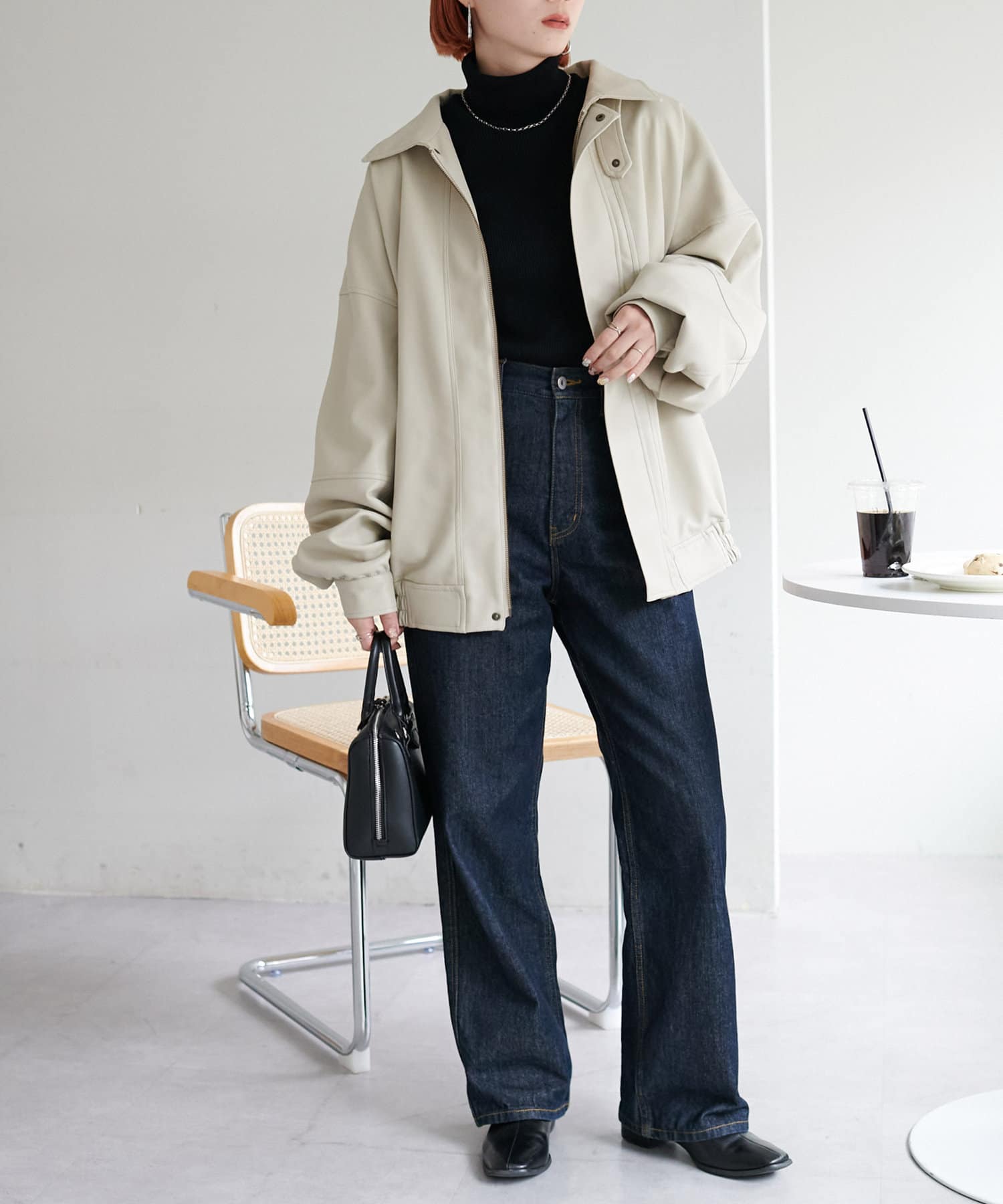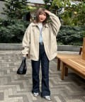 155cmレディーススタッフ:ゆったりとした着心地のジャケットは季節の変わり目にもおすすめです♩