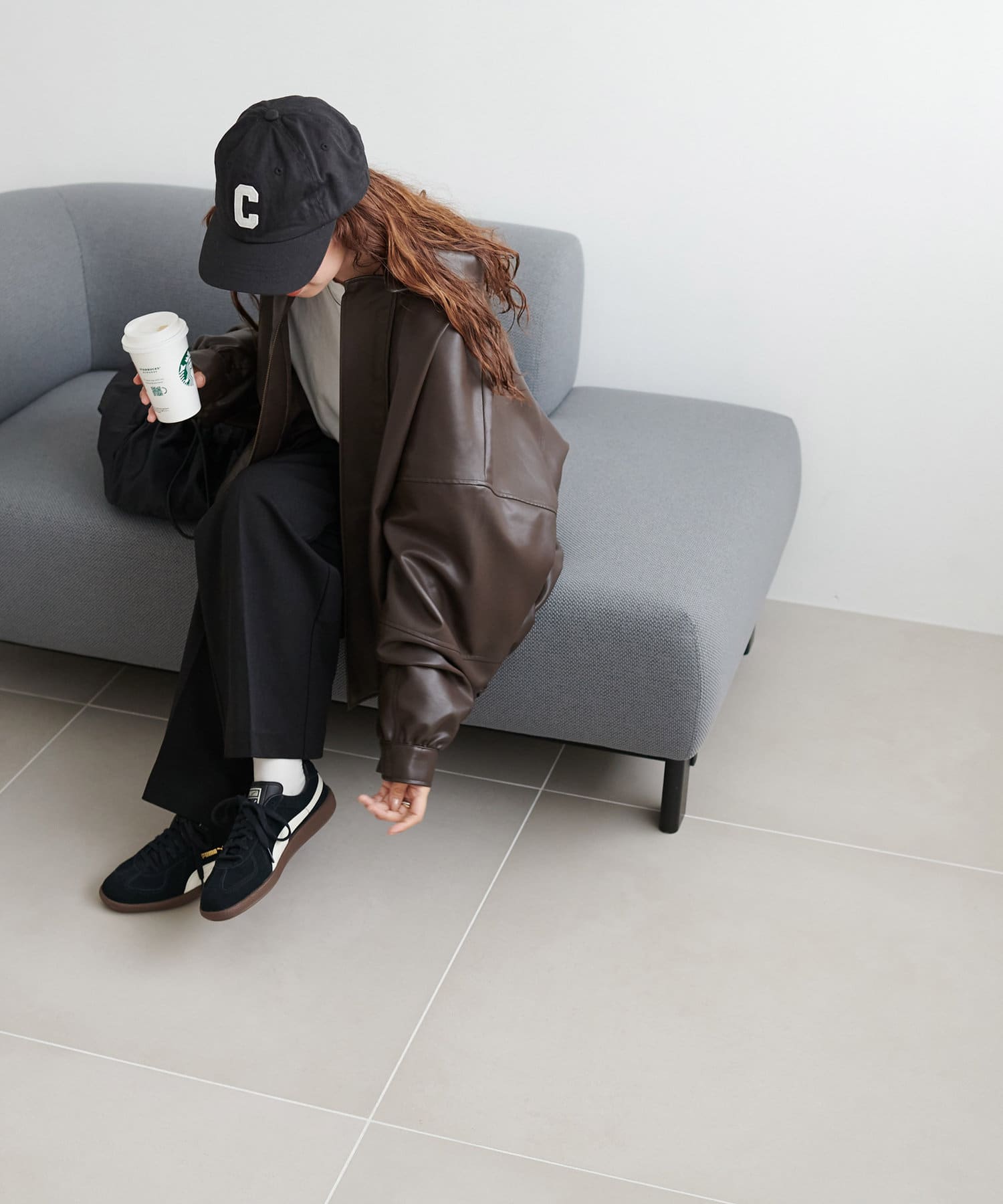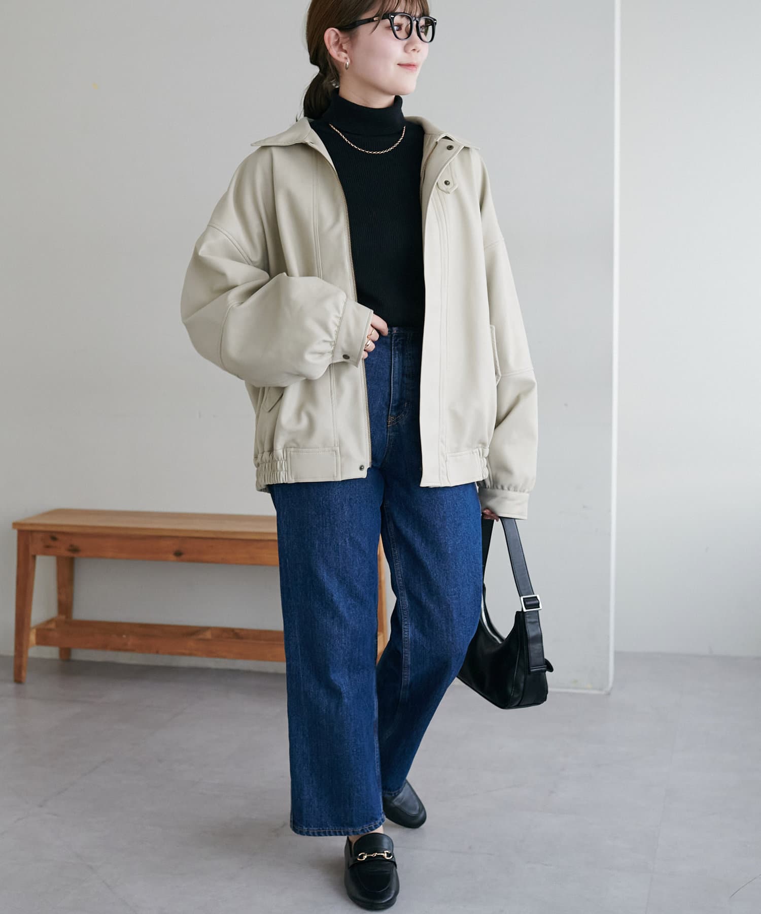 フェイクレザーなので、軽くて柔らかい着心地のよさもポイント◎