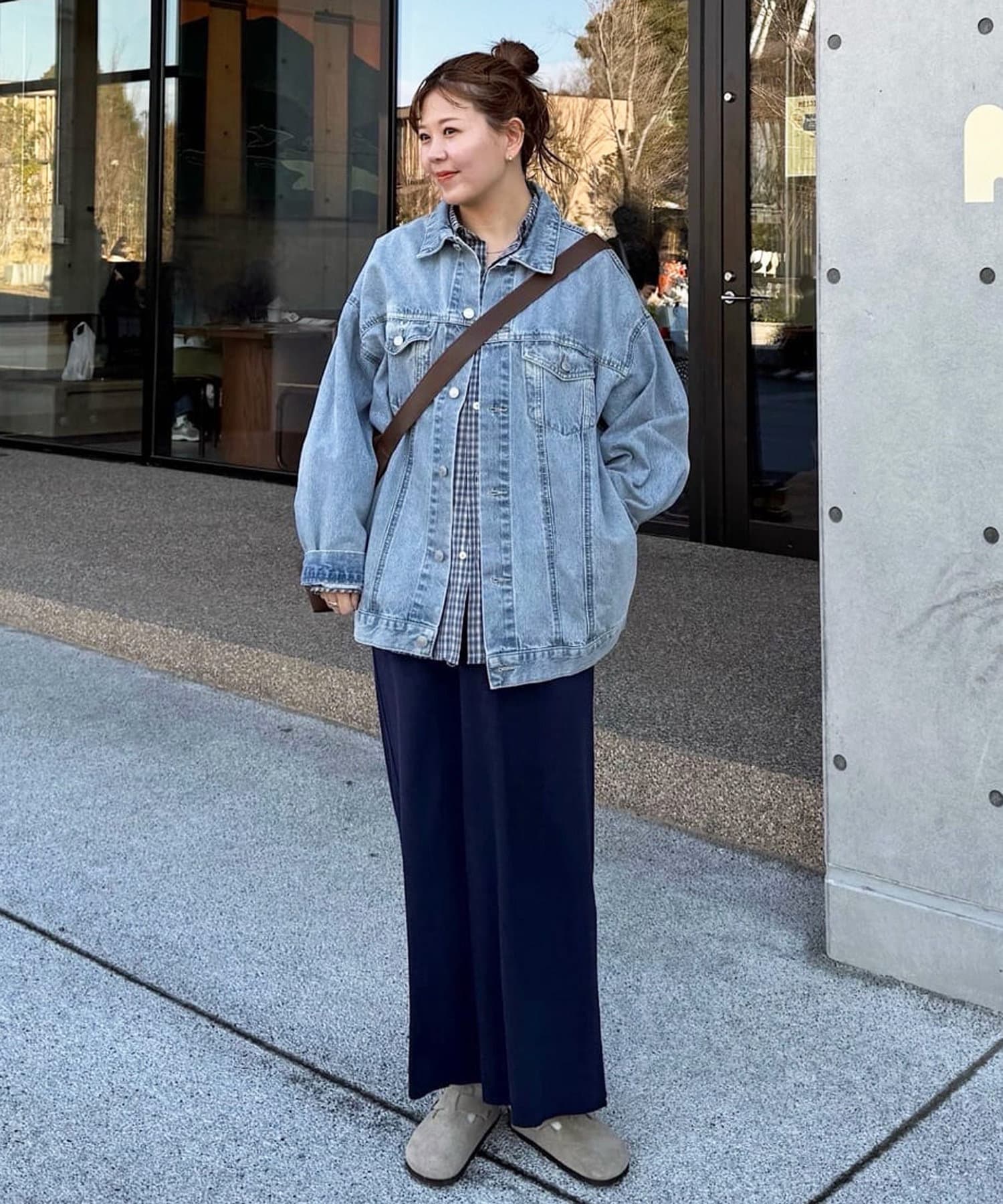 どんなボトムスとも合わせやすい着丈で幅広いスタイリングを楽しめます♪デニムオンデニムでこなれ感のあるスタイリングもおすすめです。