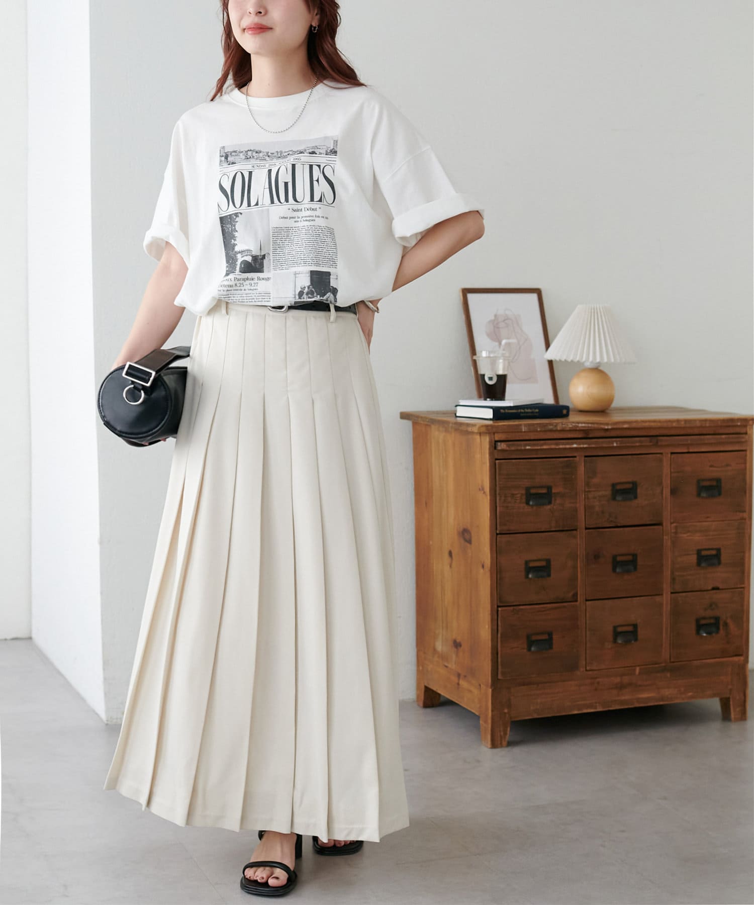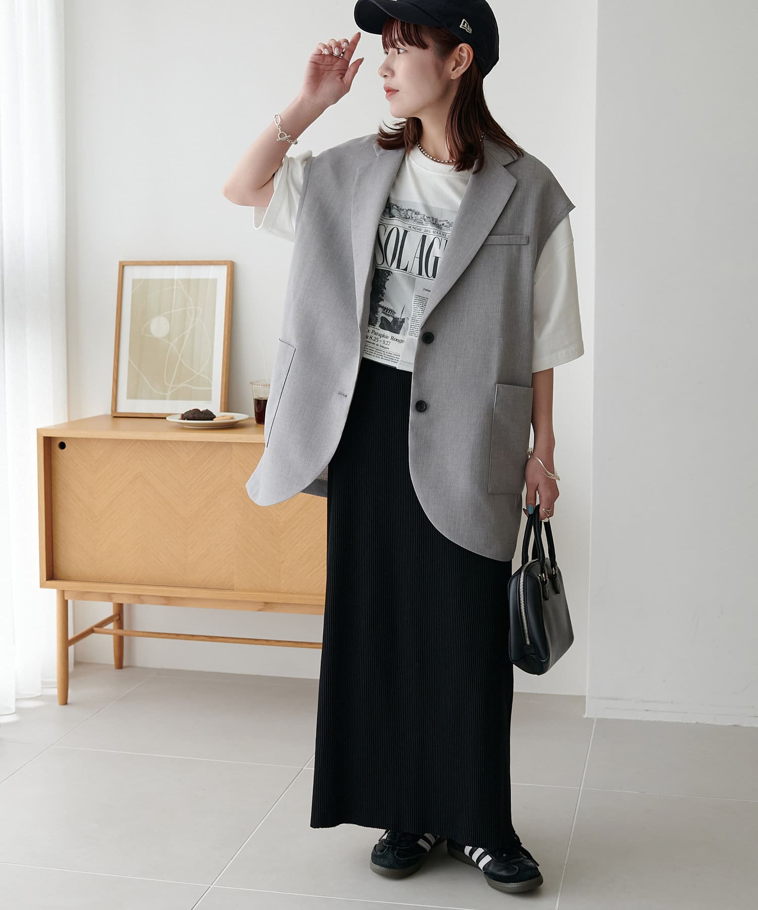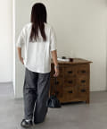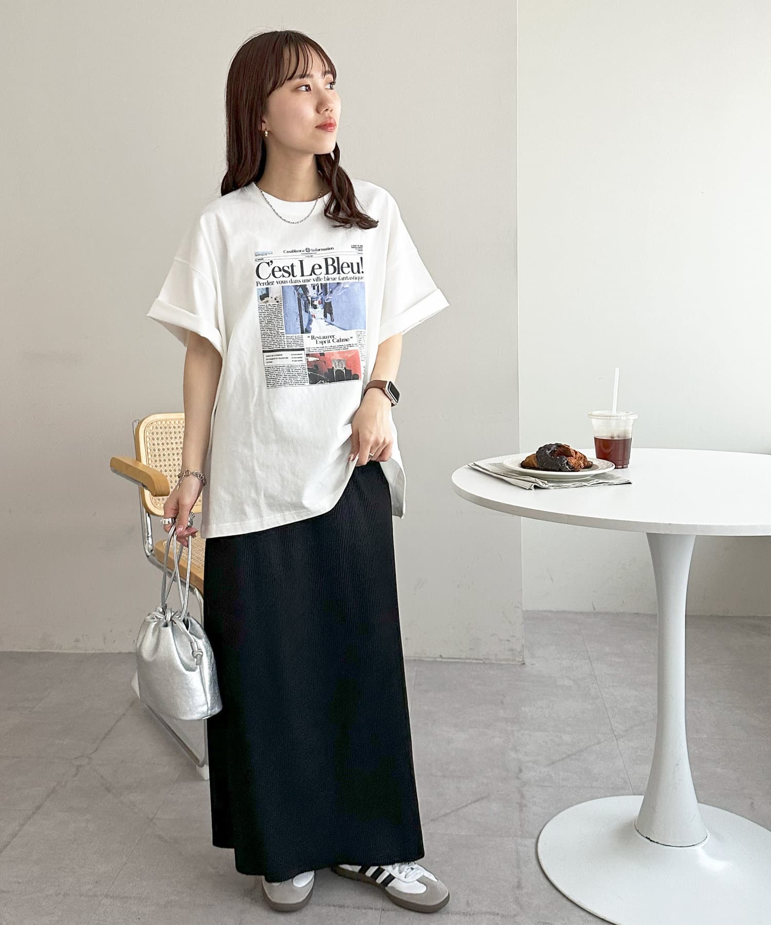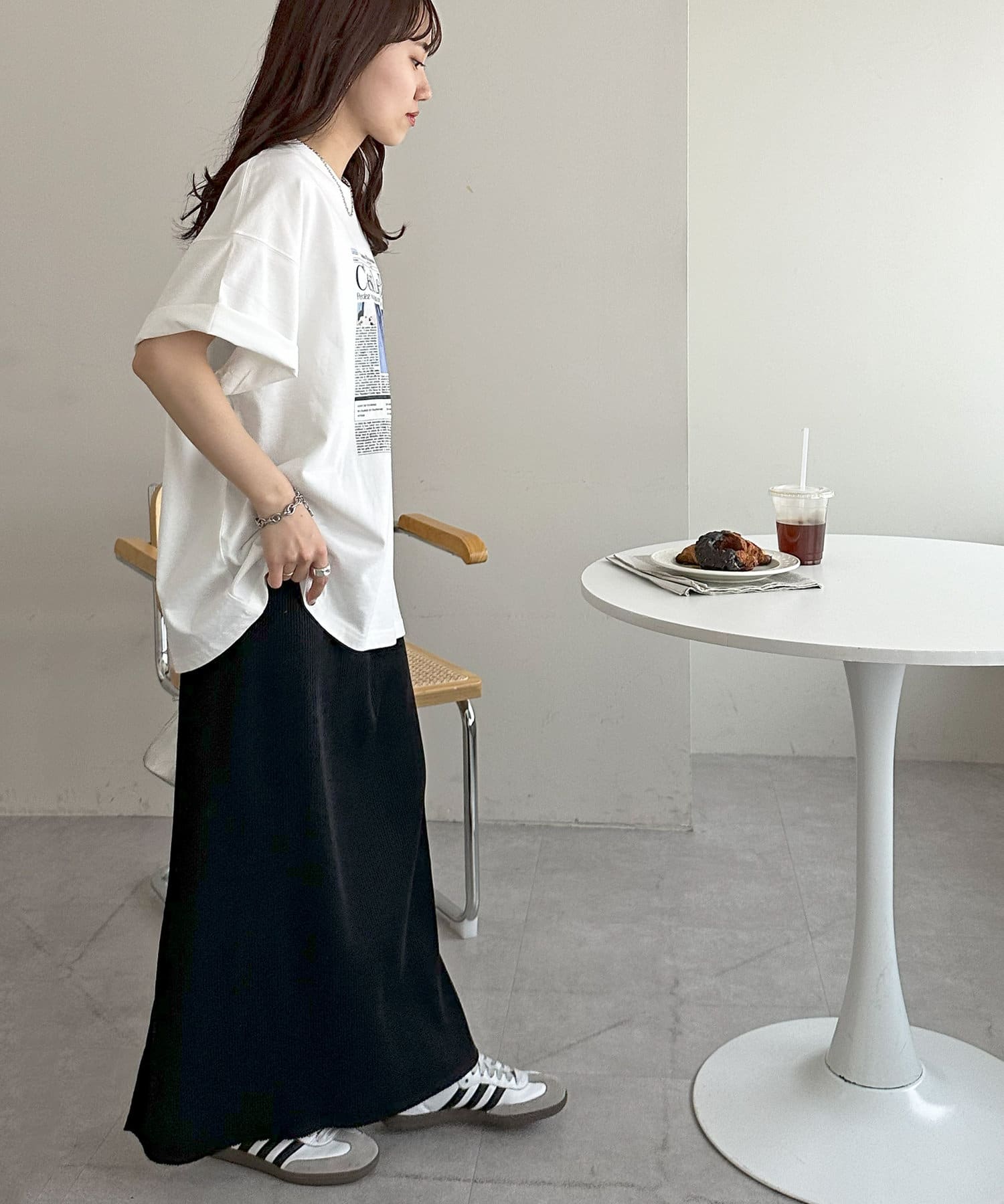 ゆったりとしたサイズ感なので、スッキリと着たい方はボトムスにインや細身のナロースカートと合わせてアウトしたスタイリングもおすすめ◎