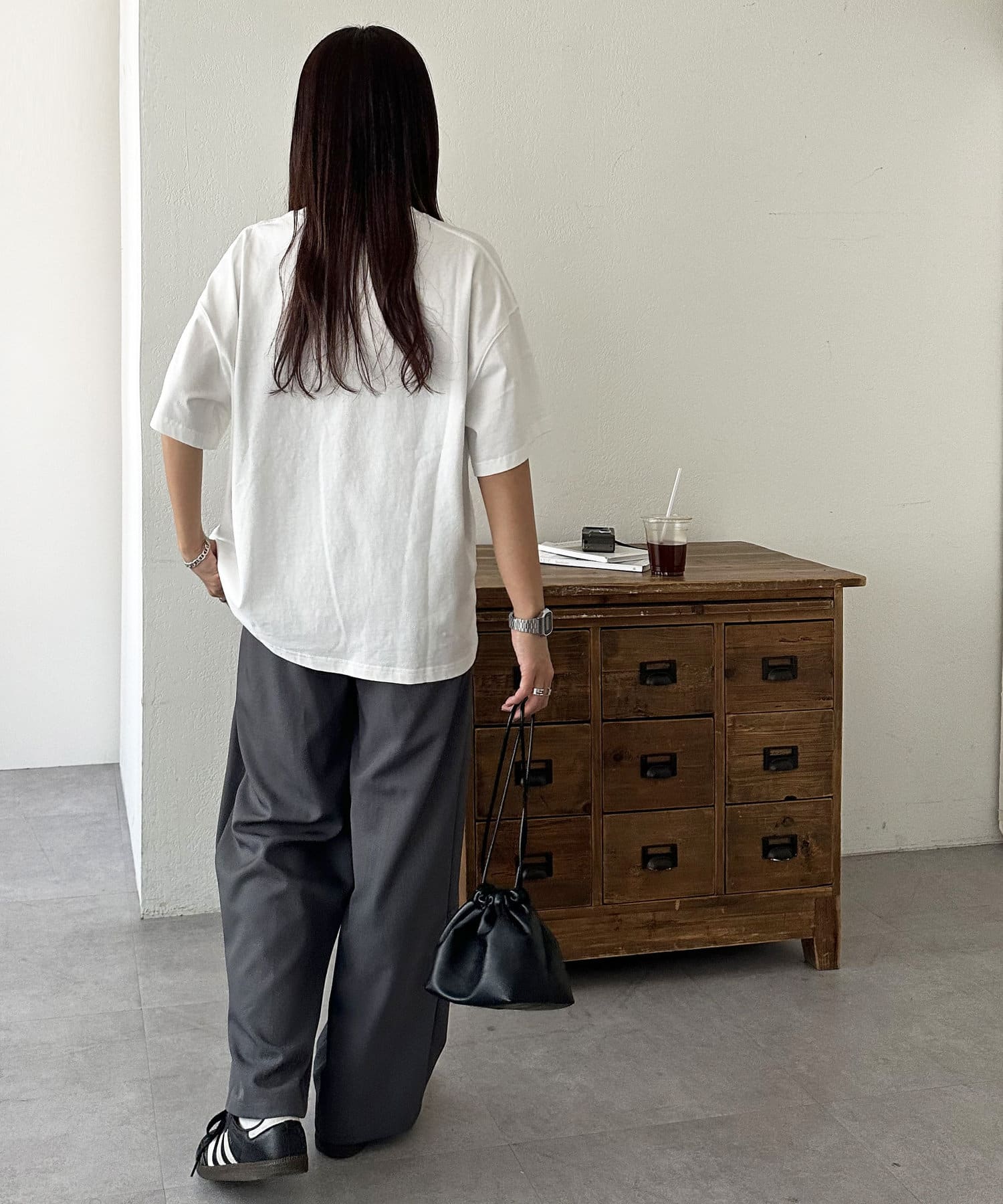 メンズも着られるサイズ感なので、袖は一度ロールアップして着ていただくとすっきりとした印象をプラスすることができます◎