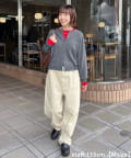 163cmレディーススタッフ(Mサイズ着用):太ももから裾にかけてのゆるやかな丸みが体のラインを拾わず、自然にスタイルカバーしてくれます!