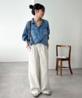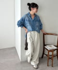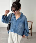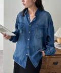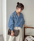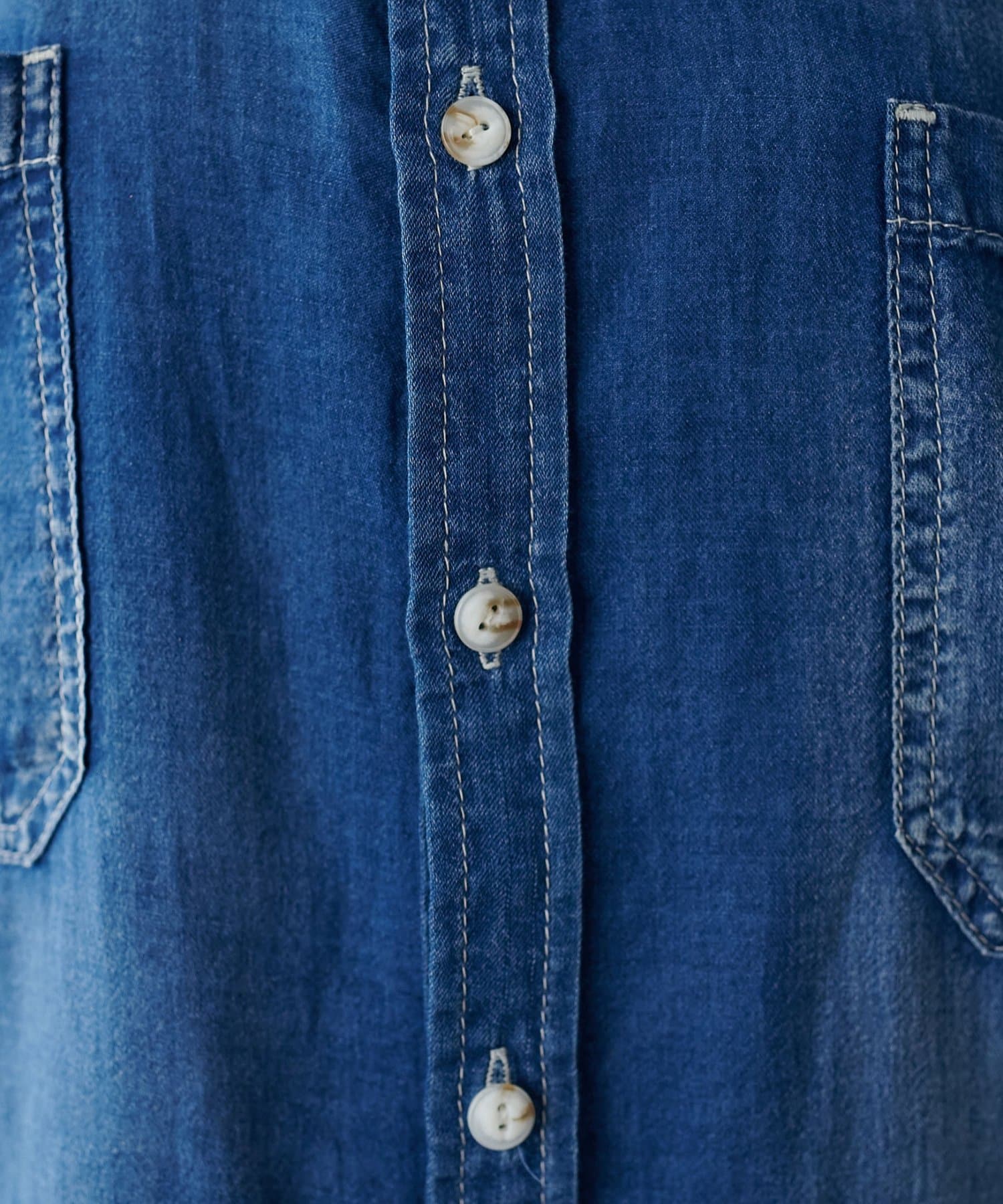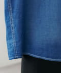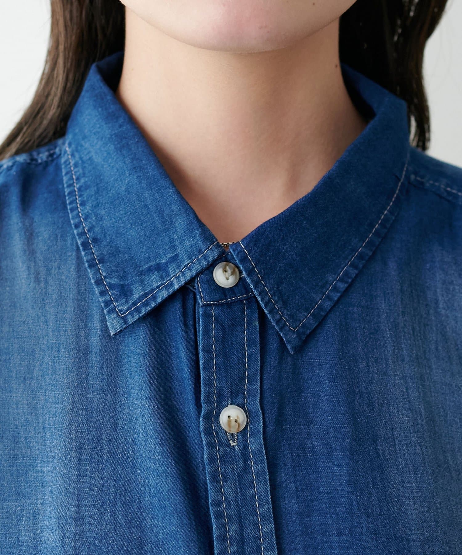軽やかで柔らかいシアーデニム素材を使用。やや透け感があり、キャミソールやタンクトップとのレイヤードが映える1枚。秋冬はロンTや薄手ニットの上に重ねて、快適に着られる素材感です。