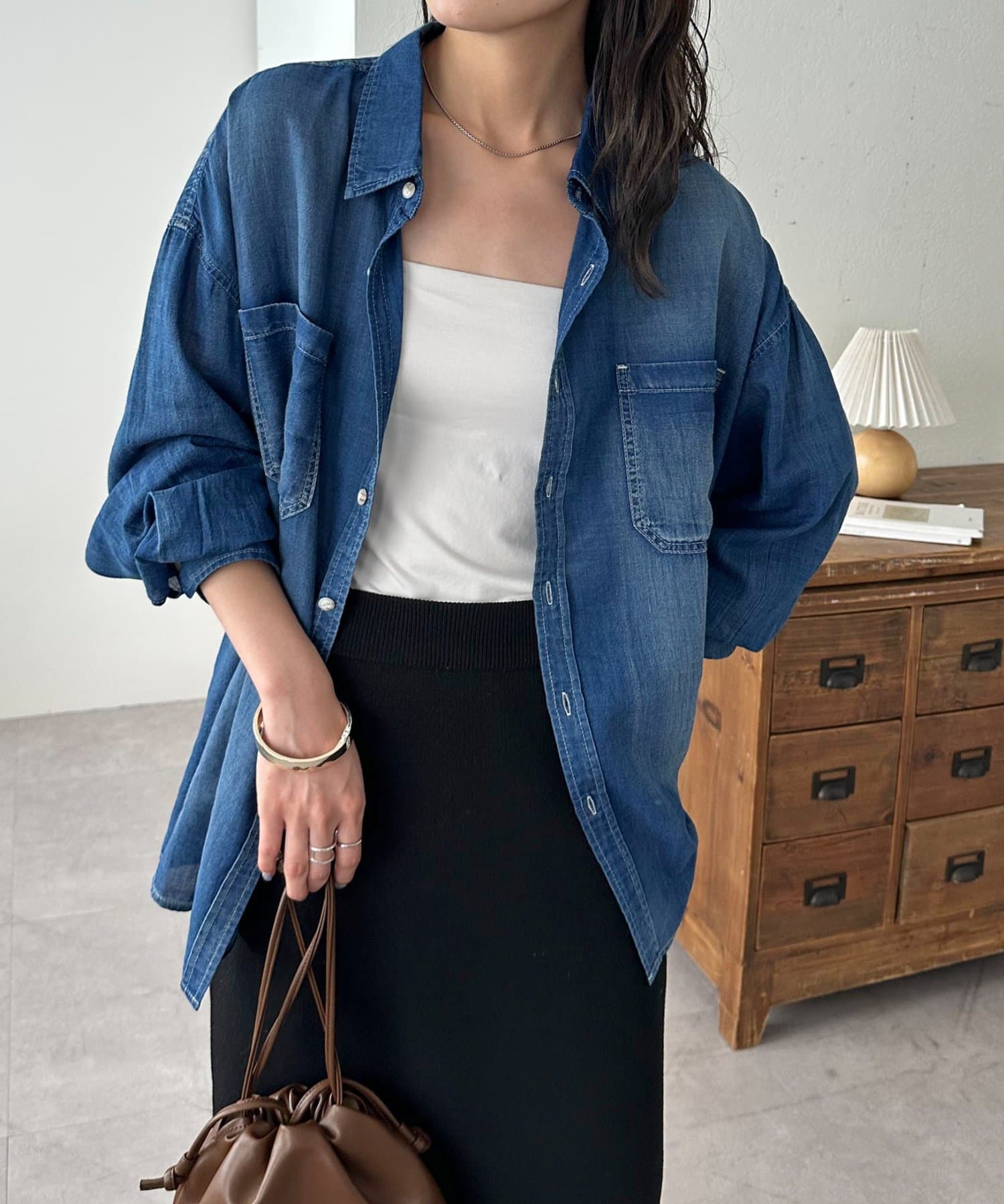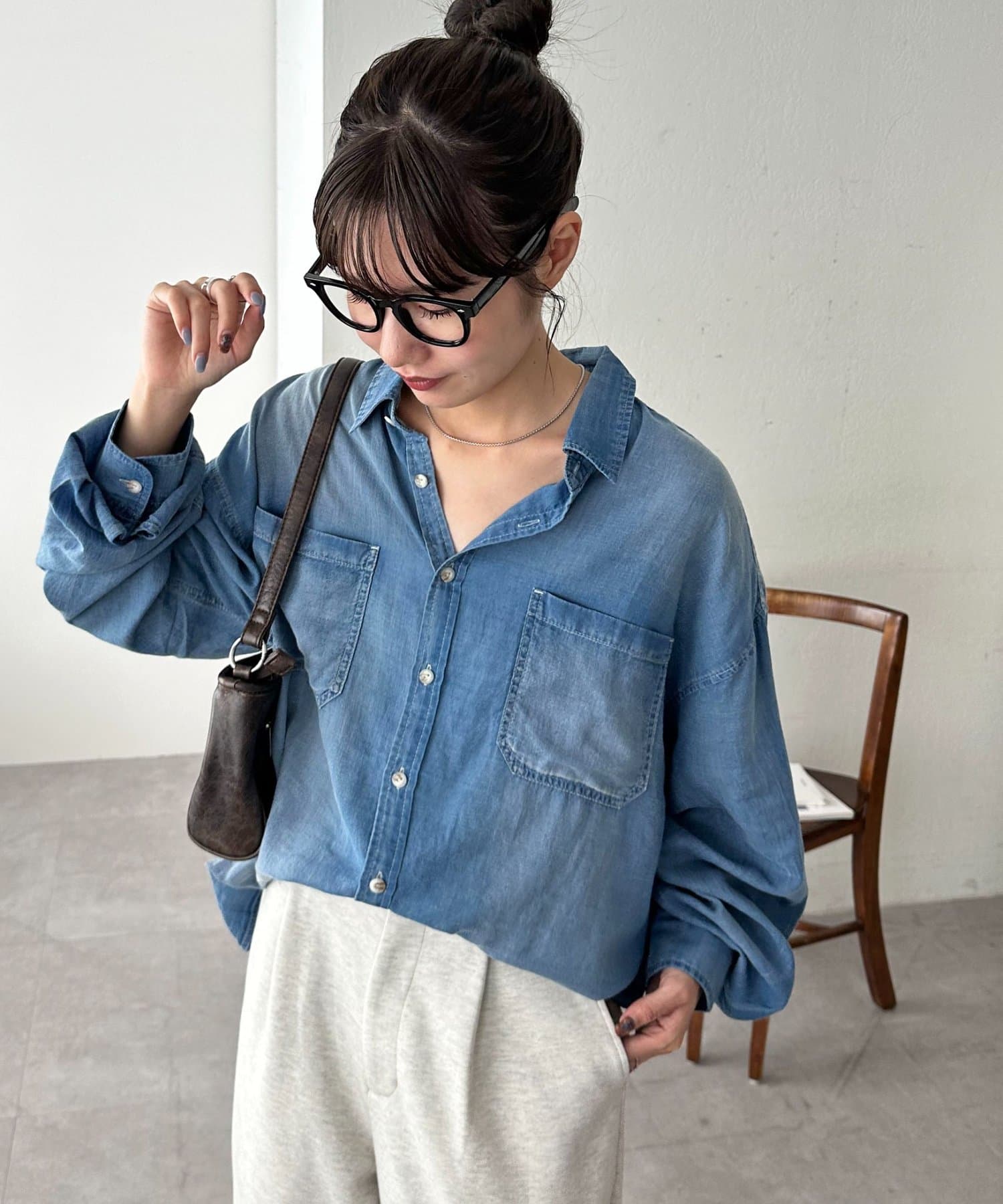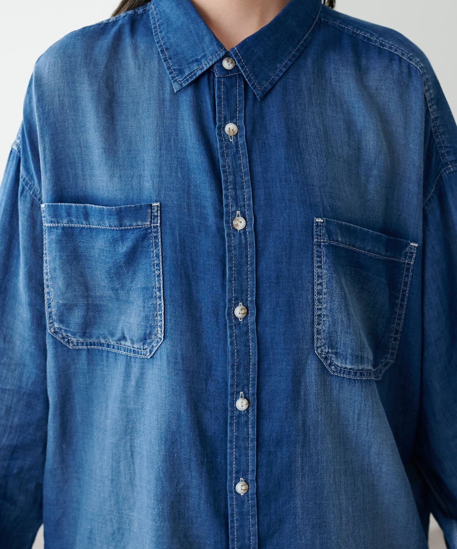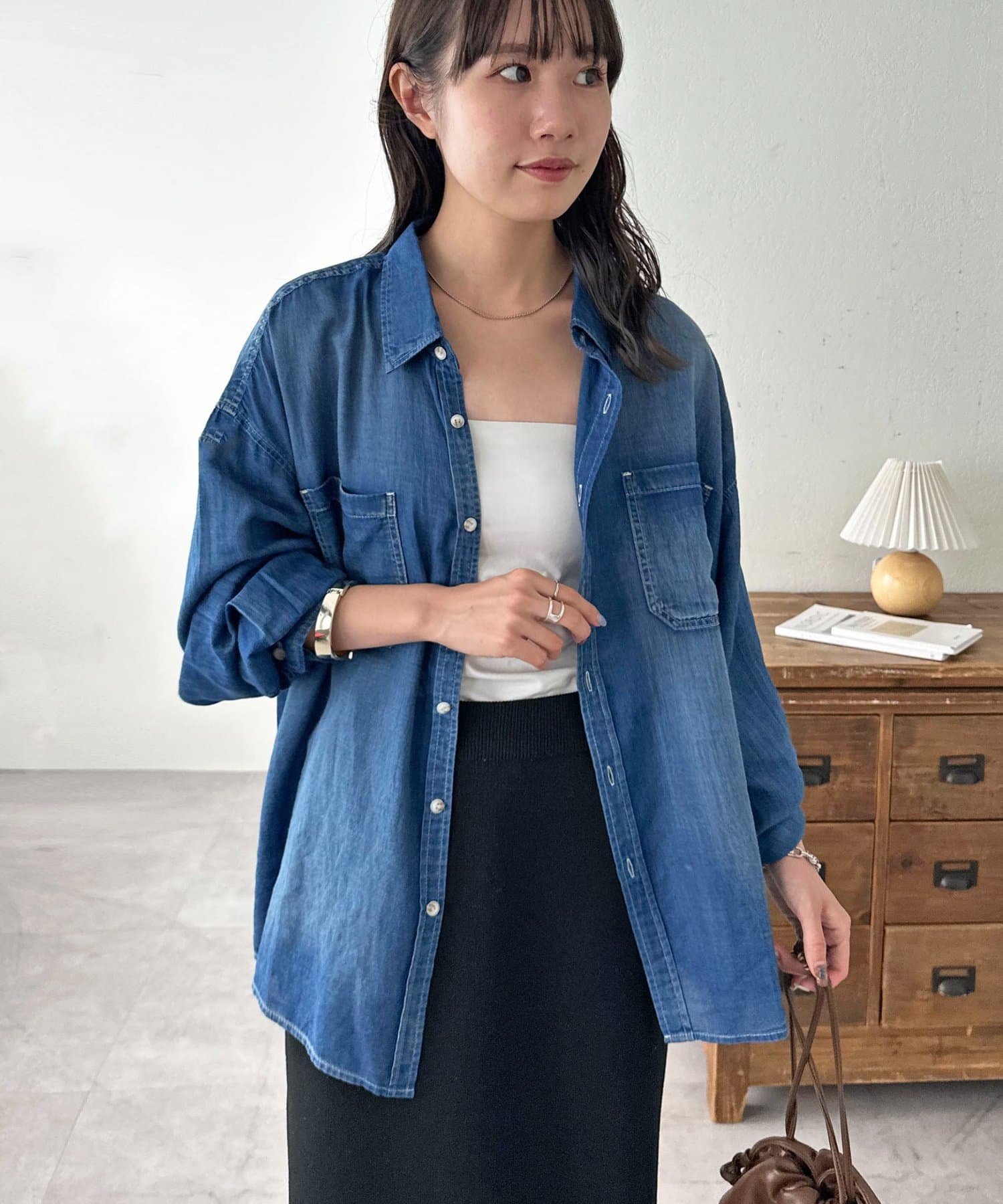 ラフに羽織ってこなれ感シアーデニムオーバーシャツ