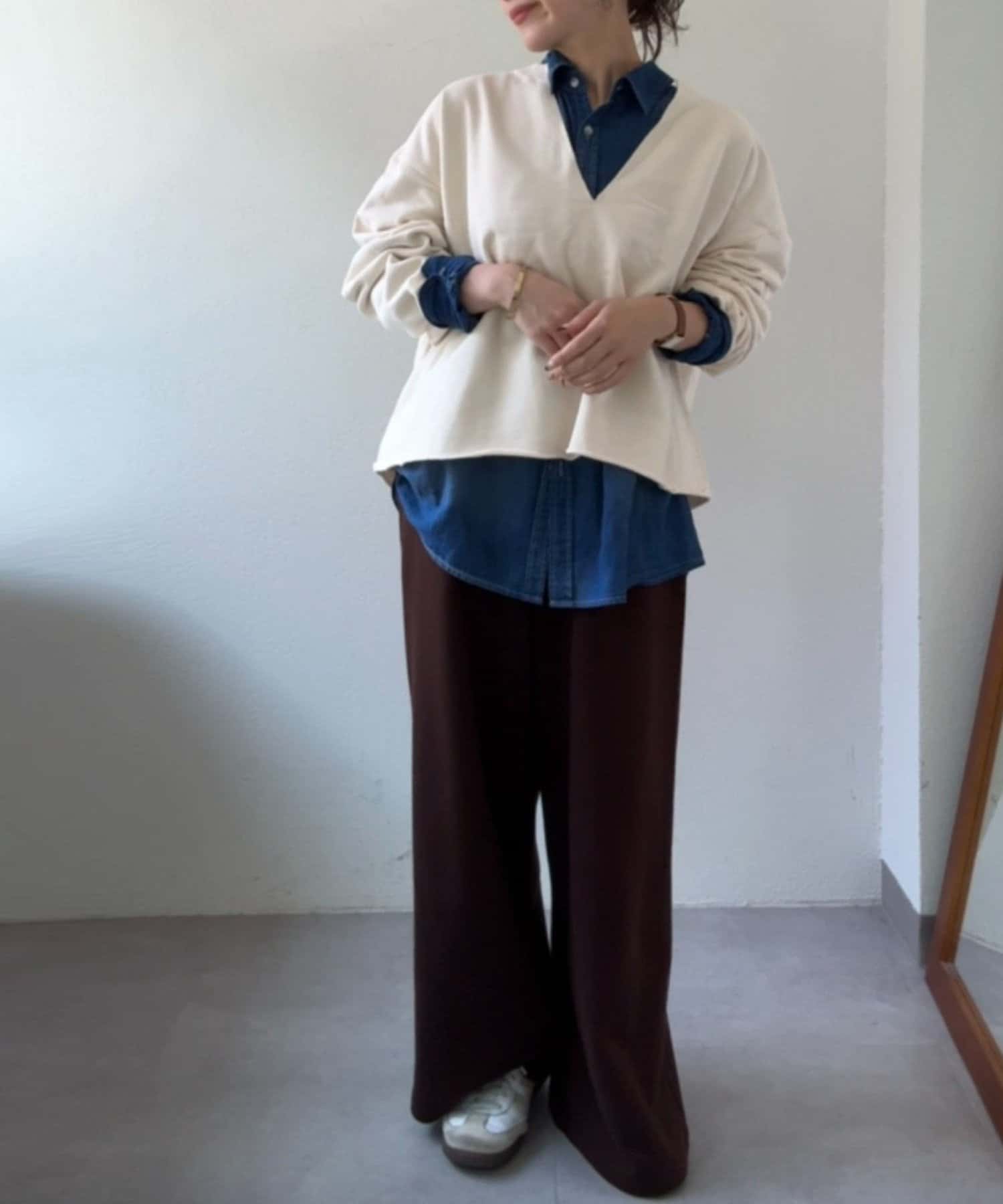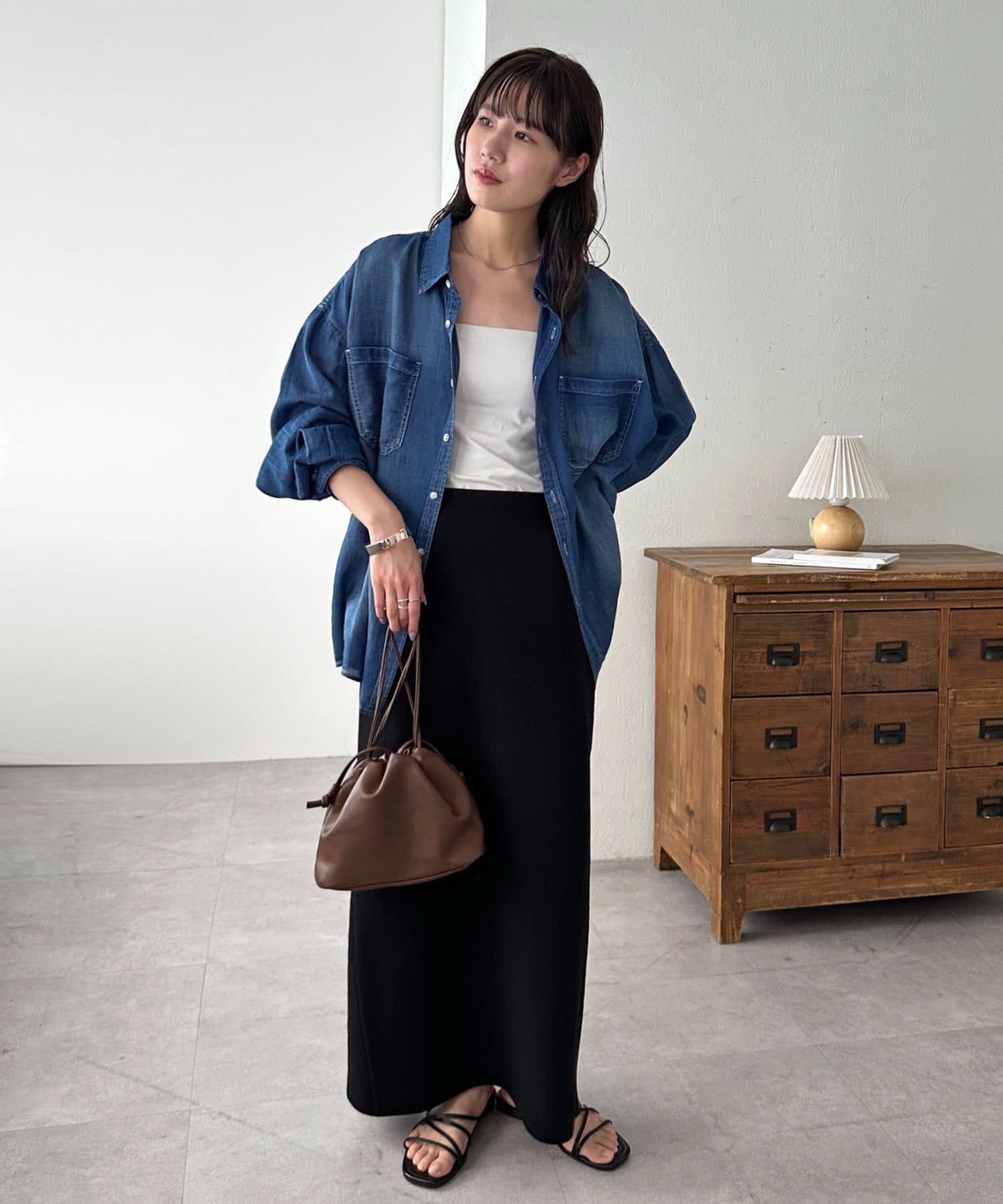 キャミソールやタンクトップにさらっと羽織れば、透け感を活かしたヘルシーな着こなしに。秋冬はロンTや薄手のニットを重ねて、カジュアルながらも季節感のあるスタイルが楽しめます。デニムやチノパンと合わせればラフな大人カジュアルに、肩掛けや腰巻きにしてアクセント使いするのもおすすめです。