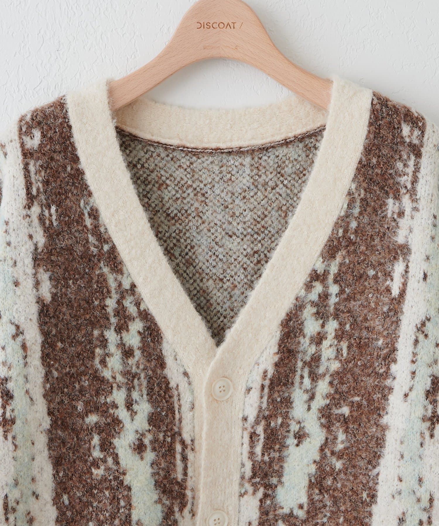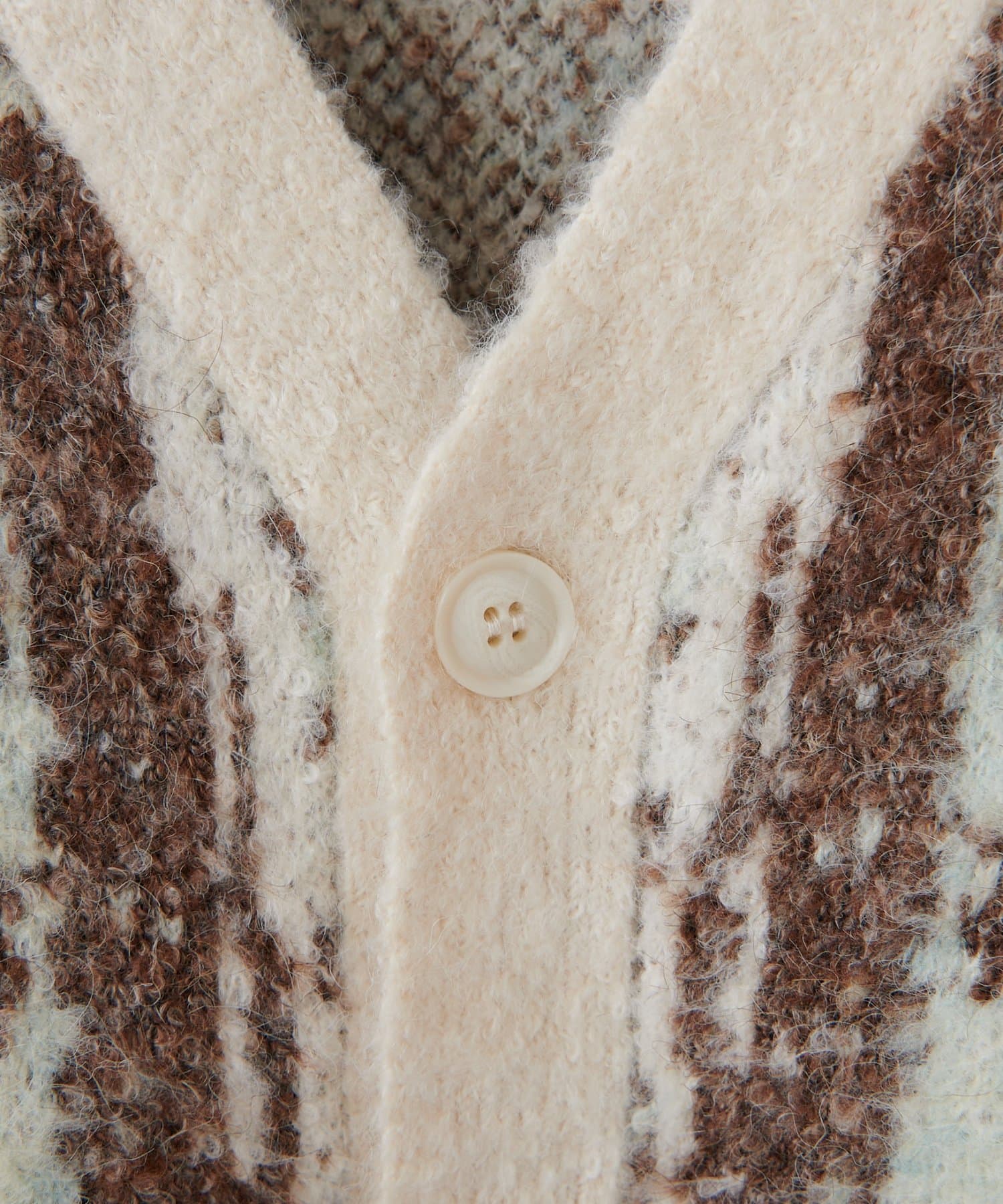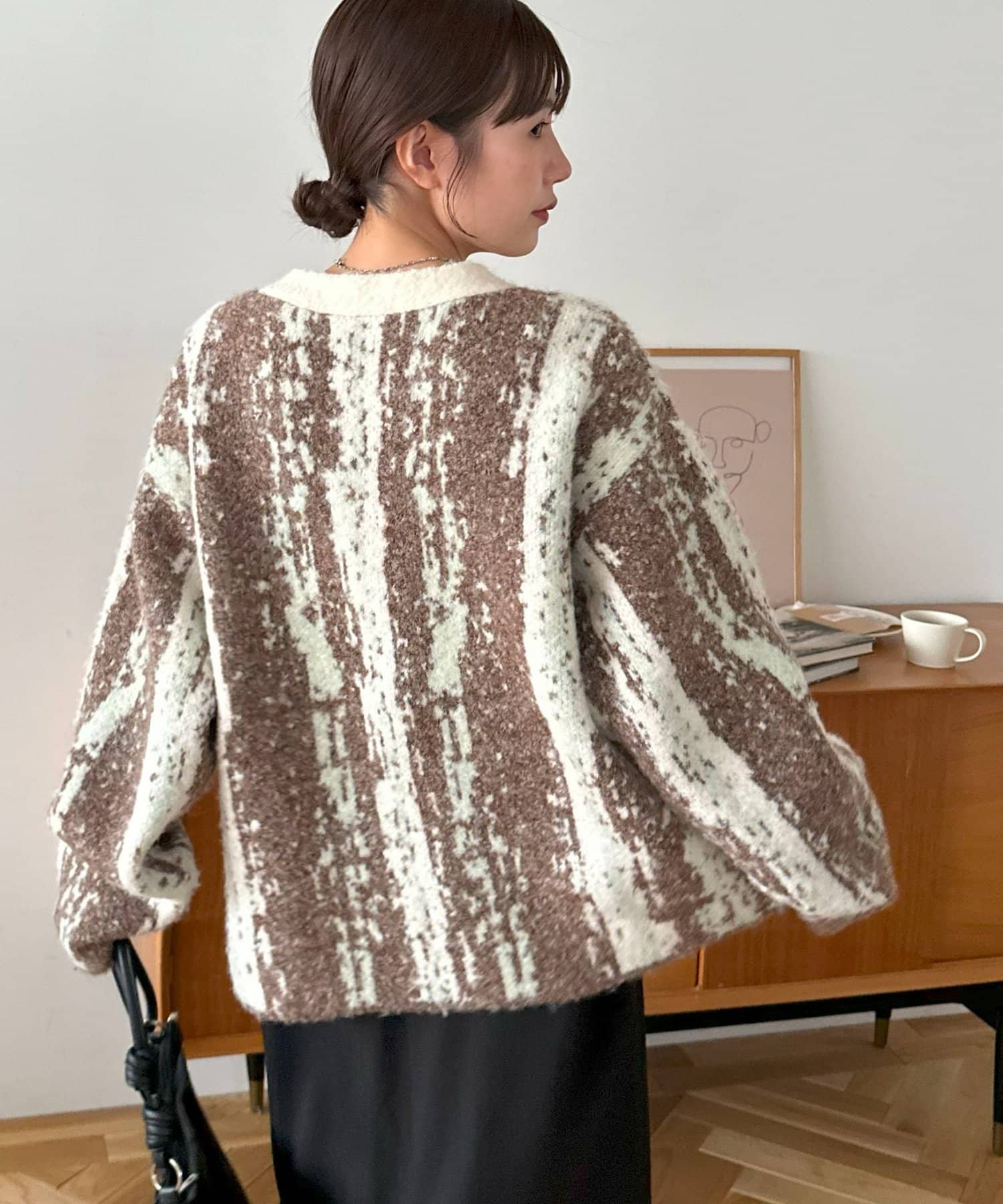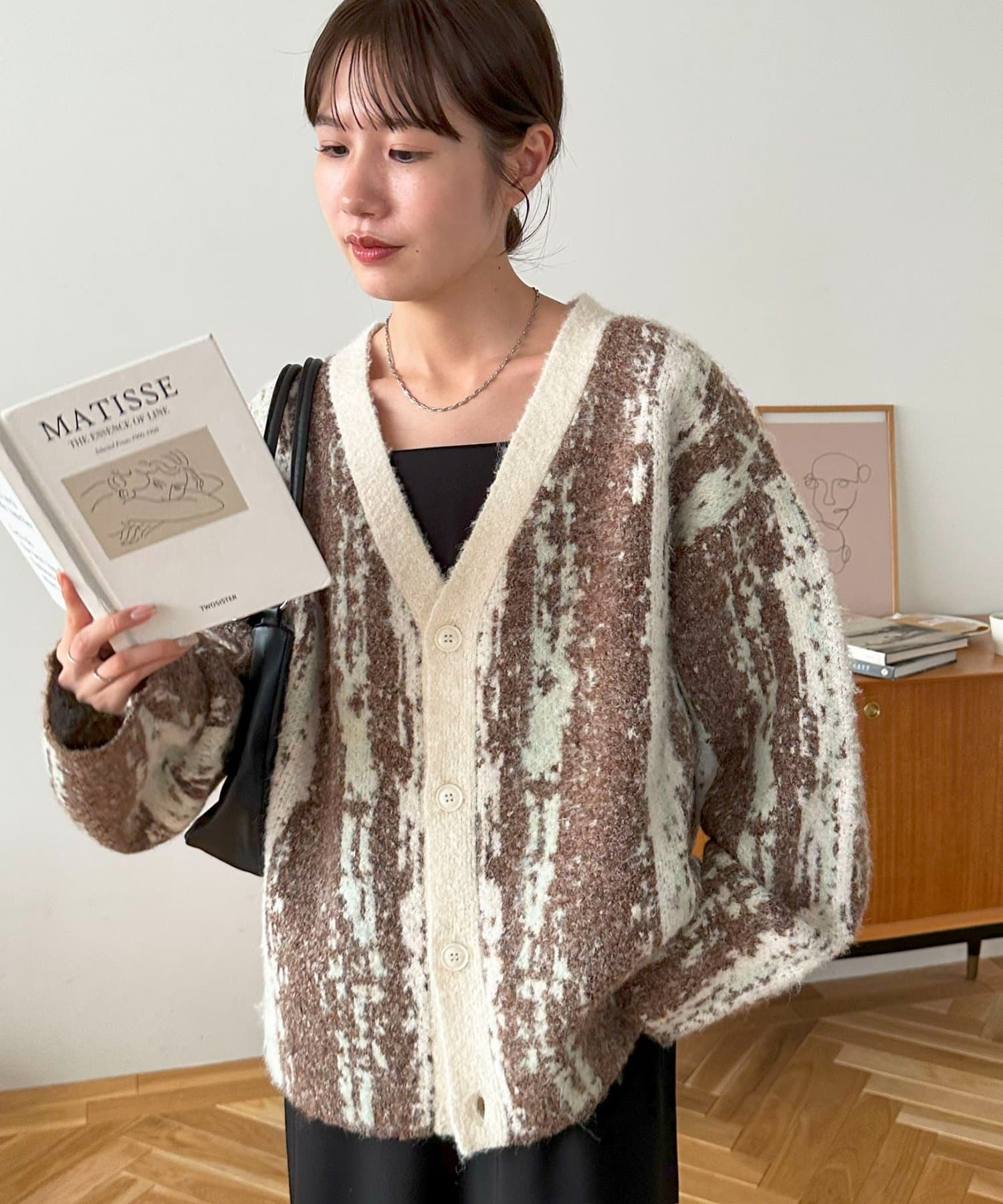 表情豊かなジャガード編みで仕立てた、ふんわりと柔らかな肌触りの素材を使用。チクチクしにくく、ニット特有のごわつき感もなく、快適な着心地を実現しています。適度な厚みがありつつも軽量なので、ロングシーズン使えるのも魅力◎肌寒い季節の羽織りとしてはもちろん、真冬はアウターの中に差し込むレイヤードアイテムとしても活躍します。