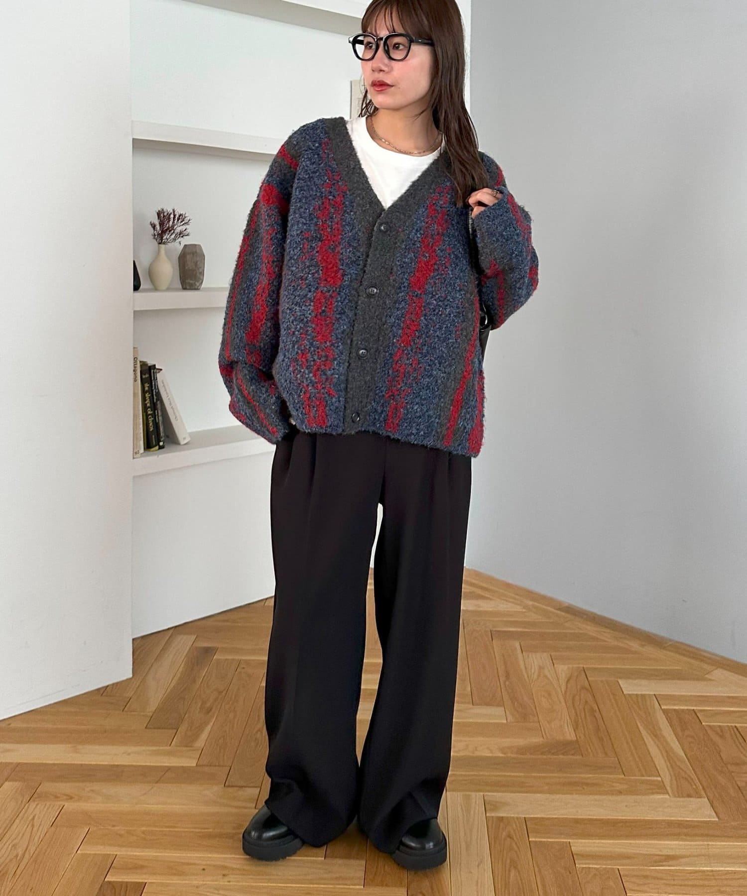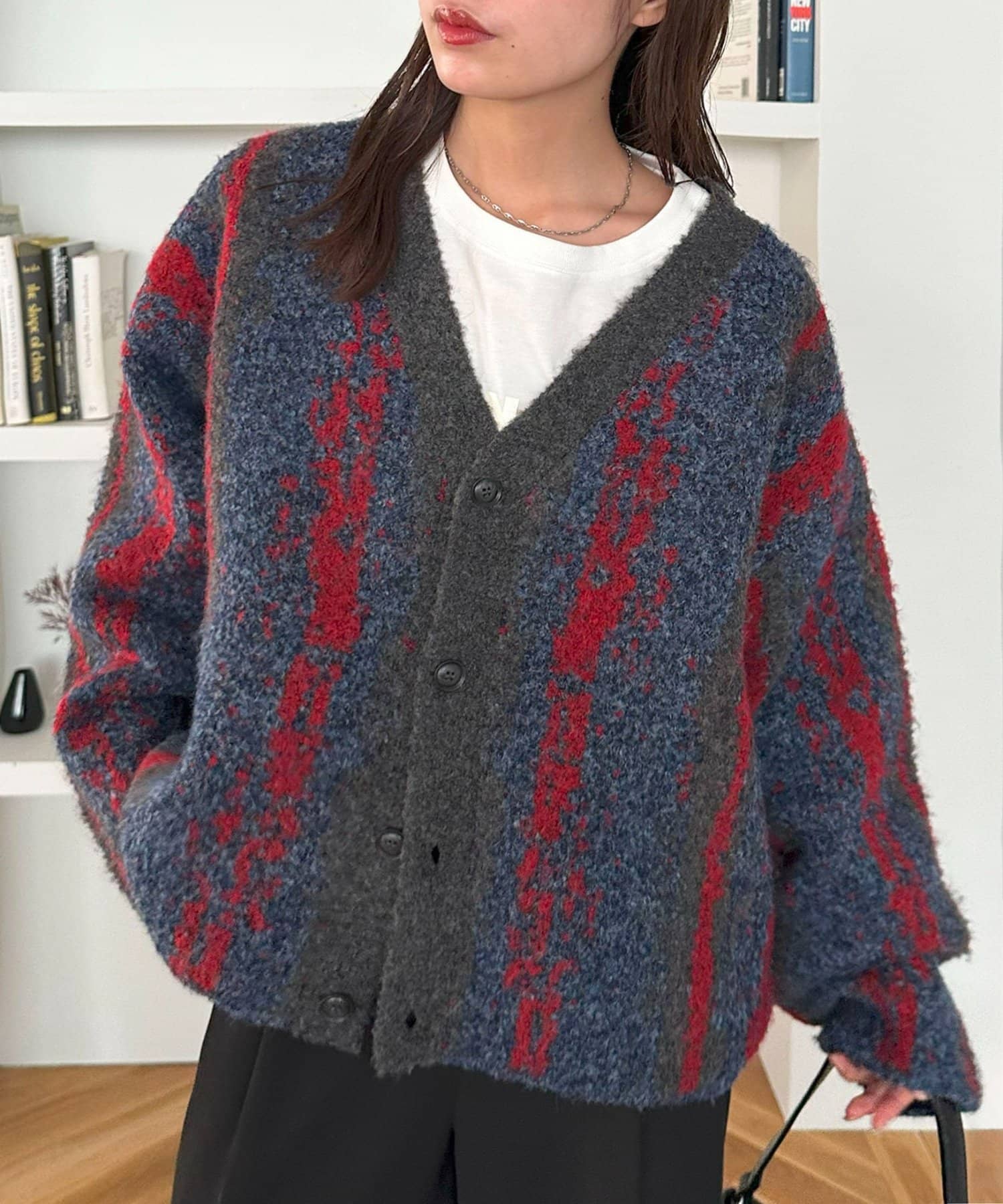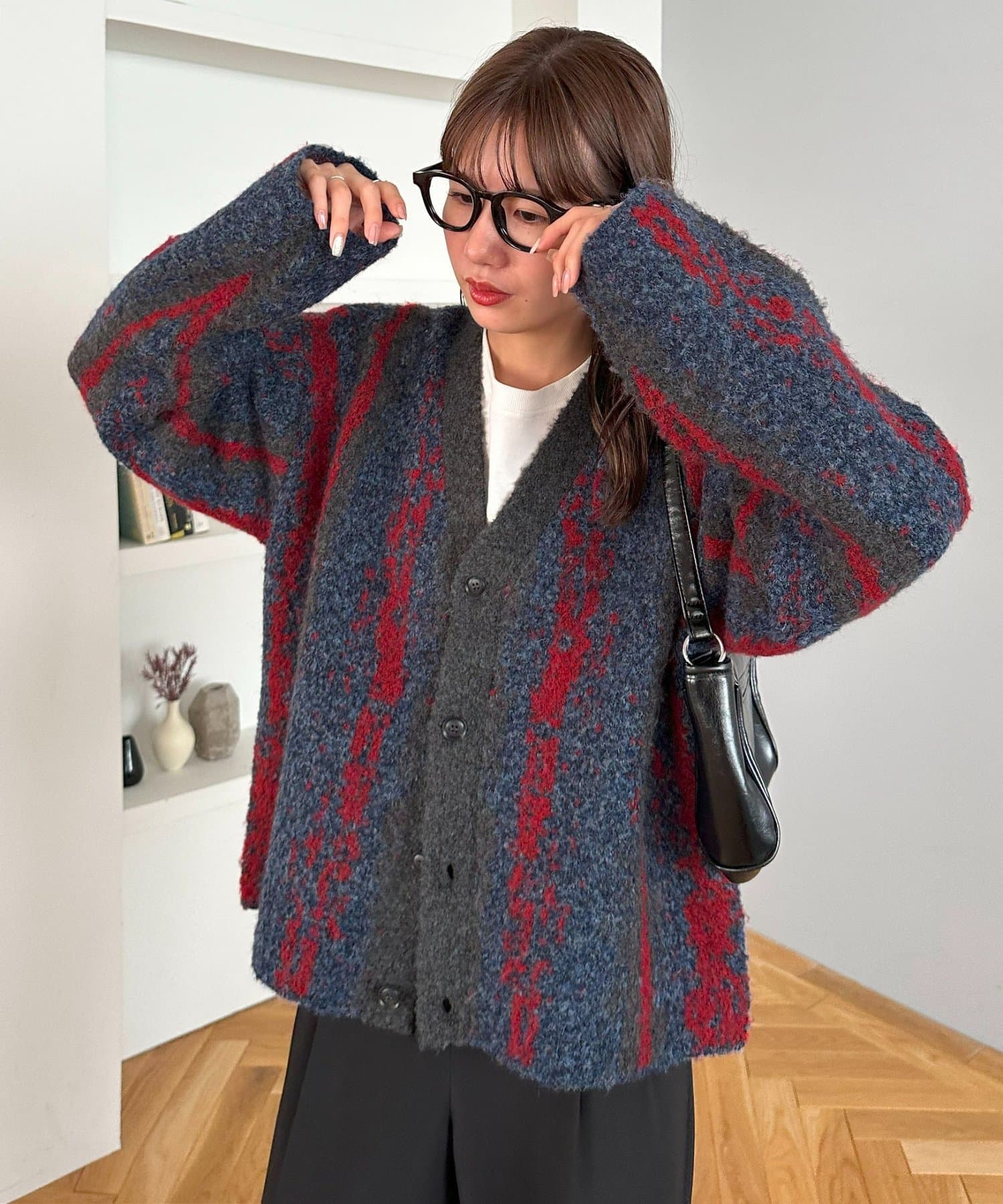 目を惹く個性的なパターンと深みのある配色が、シンプルなコーディネートに取り入れるだけで一気にこなれた印象に。ユニセックスで楽しめる、程よくゆったりなシルエットが魅力♪肩のラインを落としたドロップショルダーや、ルーズな袖のフォルムが、抜け感とリラックス感を演出してくれるため、さらっと着こなせるのが嬉しいポイントです◎