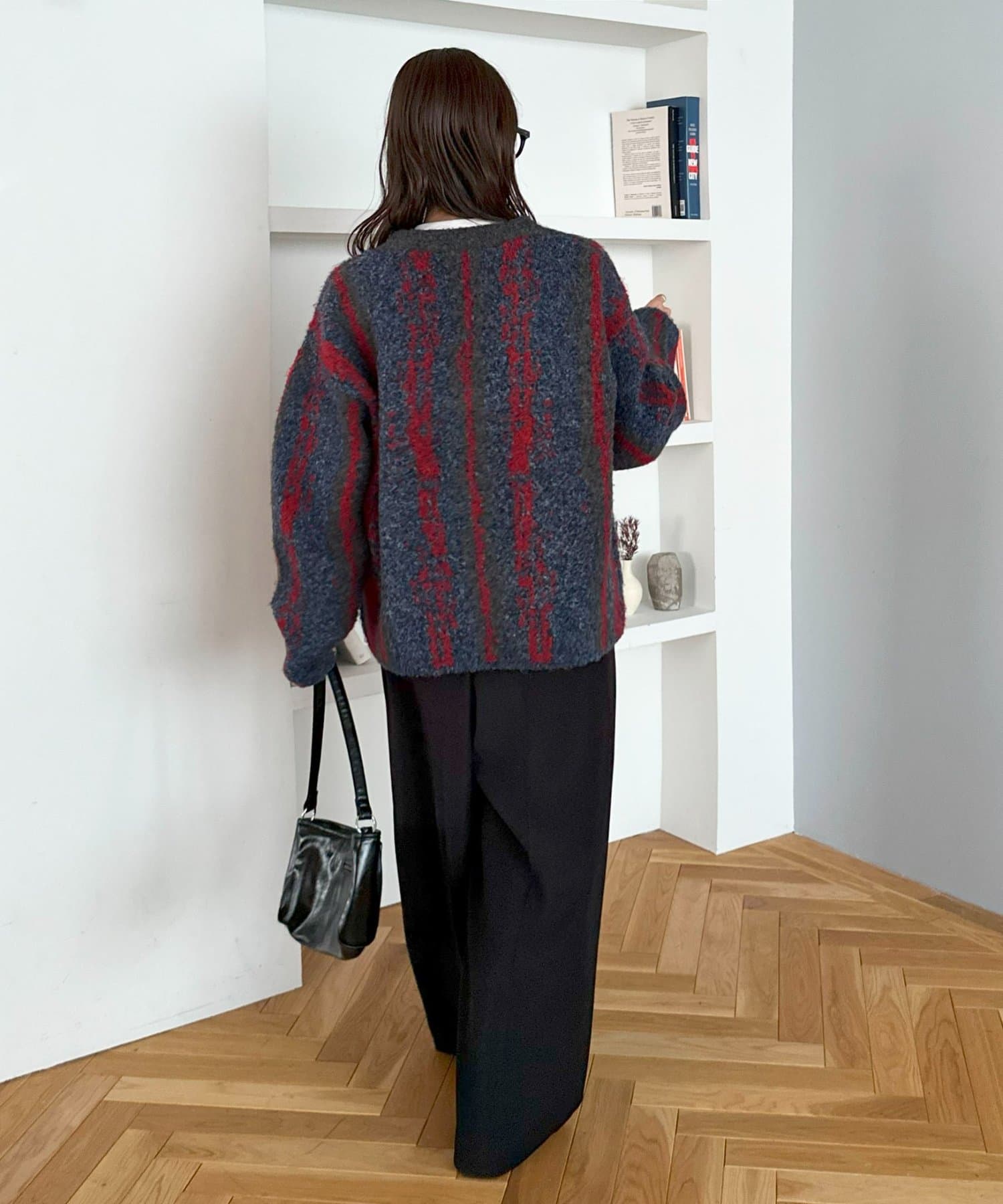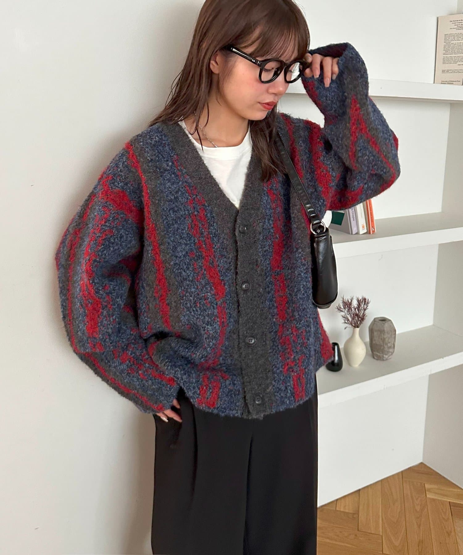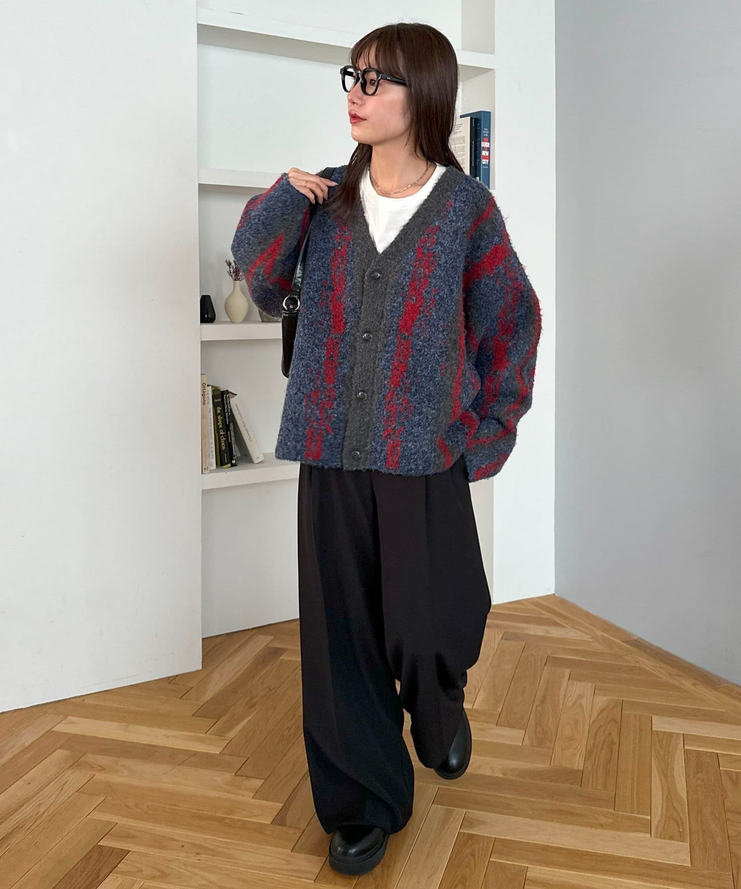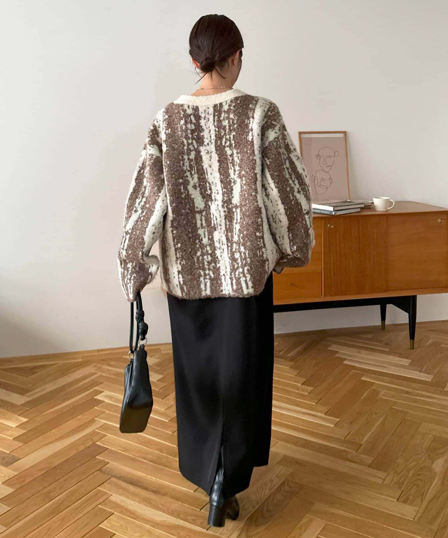 目を惹く個性的なパターンと深みのある配色が、シンプルなコーディネートに取り入れるだけで一気にこなれた印象に。ユニセックスで楽しめる、程よくゆったりなシルエットが魅力♪肩のラインを落としたドロップショルダーや、ルーズな袖のフォルムが、抜け感とリラックス感を演出してくれるため、さらっと着こなせるのが嬉しいポイントです◎