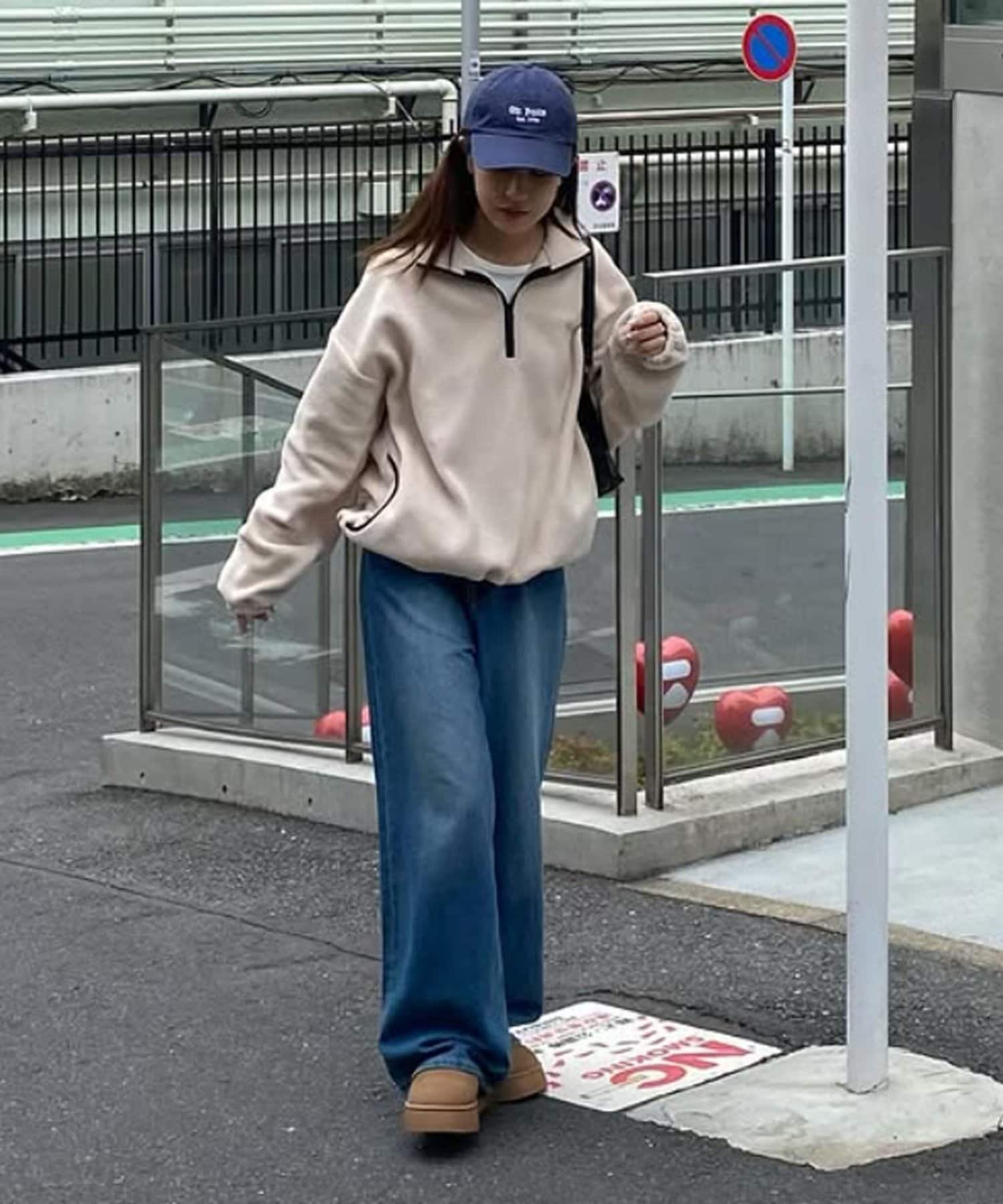 TシャツやロンTをインしてジップを少し開けるだけで一気にこなれ見えのレイヤードスタイルが完成。