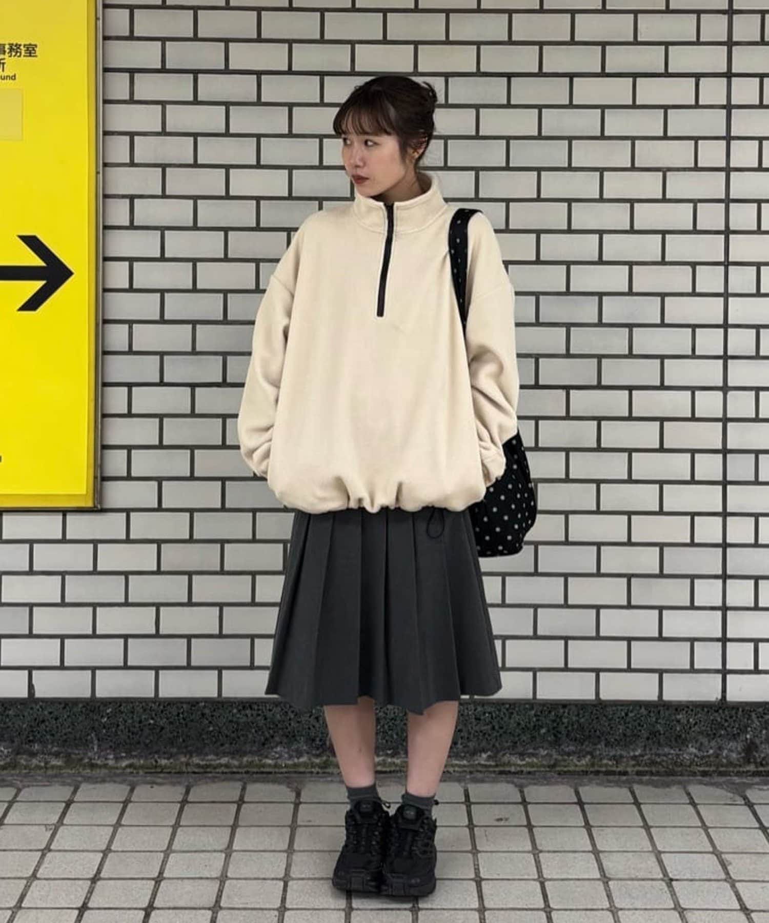 155cmレディーススタッフ: 中にロンTやタートルを仕込んでも窮屈感ゼロ。フリースが軽くて柔らかいので一日中着ていてもラクです◎