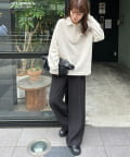 スウェットですが、あえて裾をリブにしなかったことで腰回りにゆとりができ、リラクシーな着こなしが叶います♪