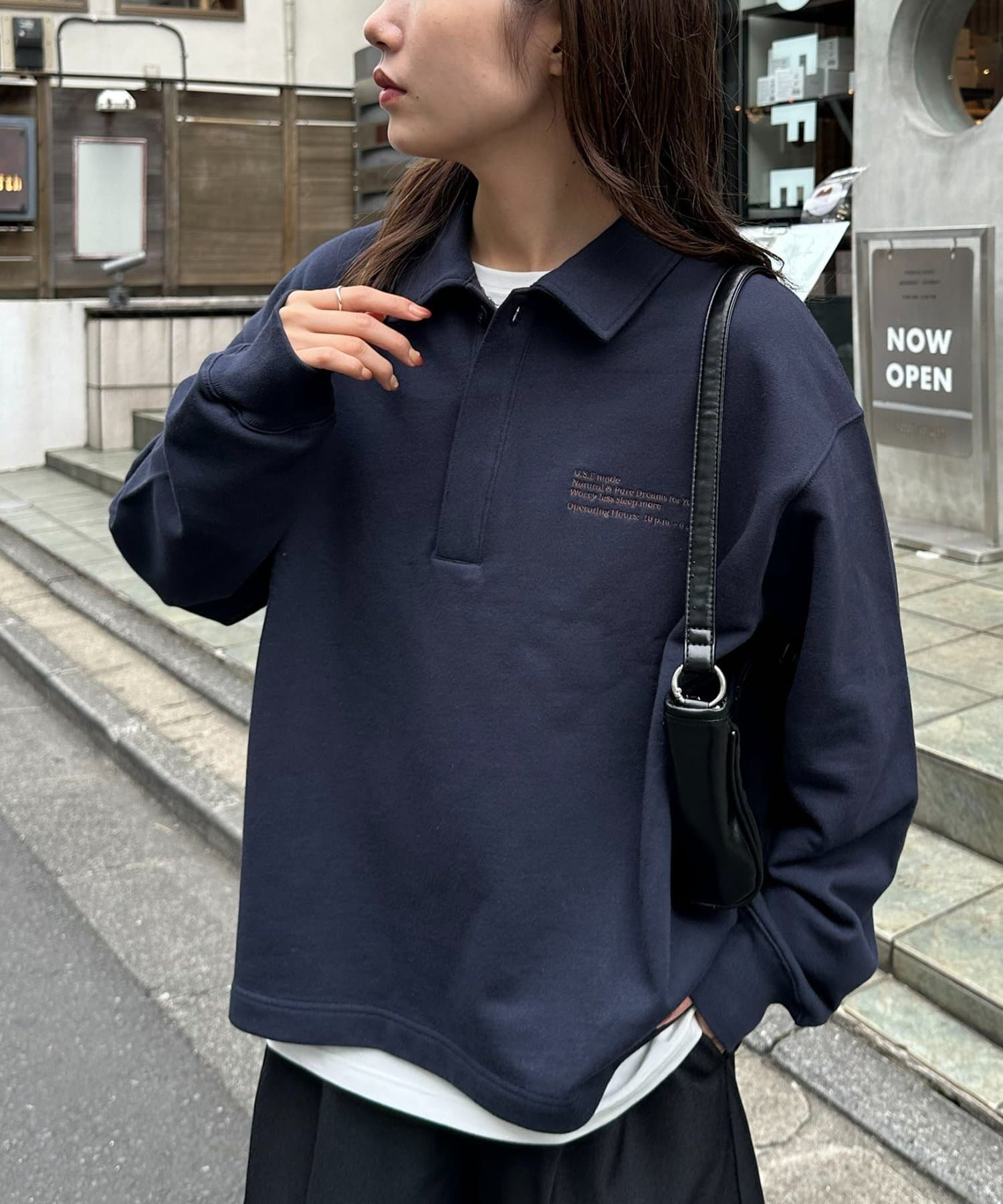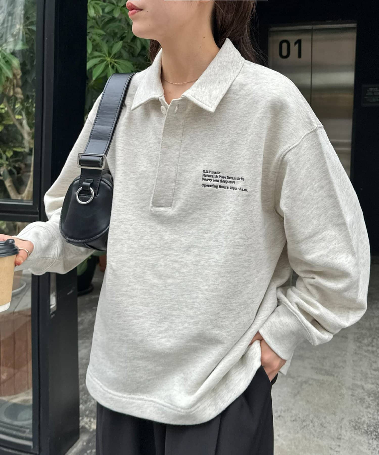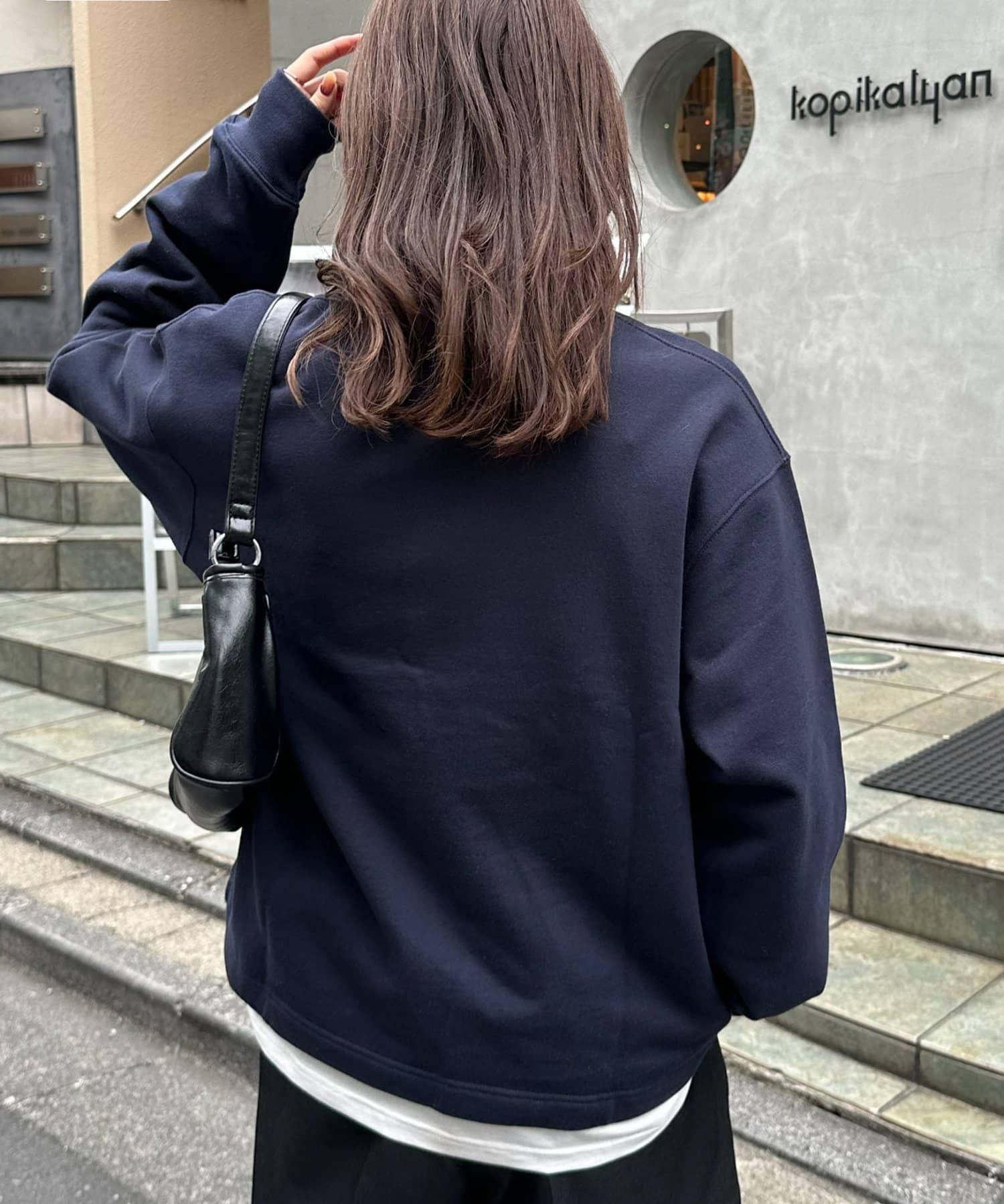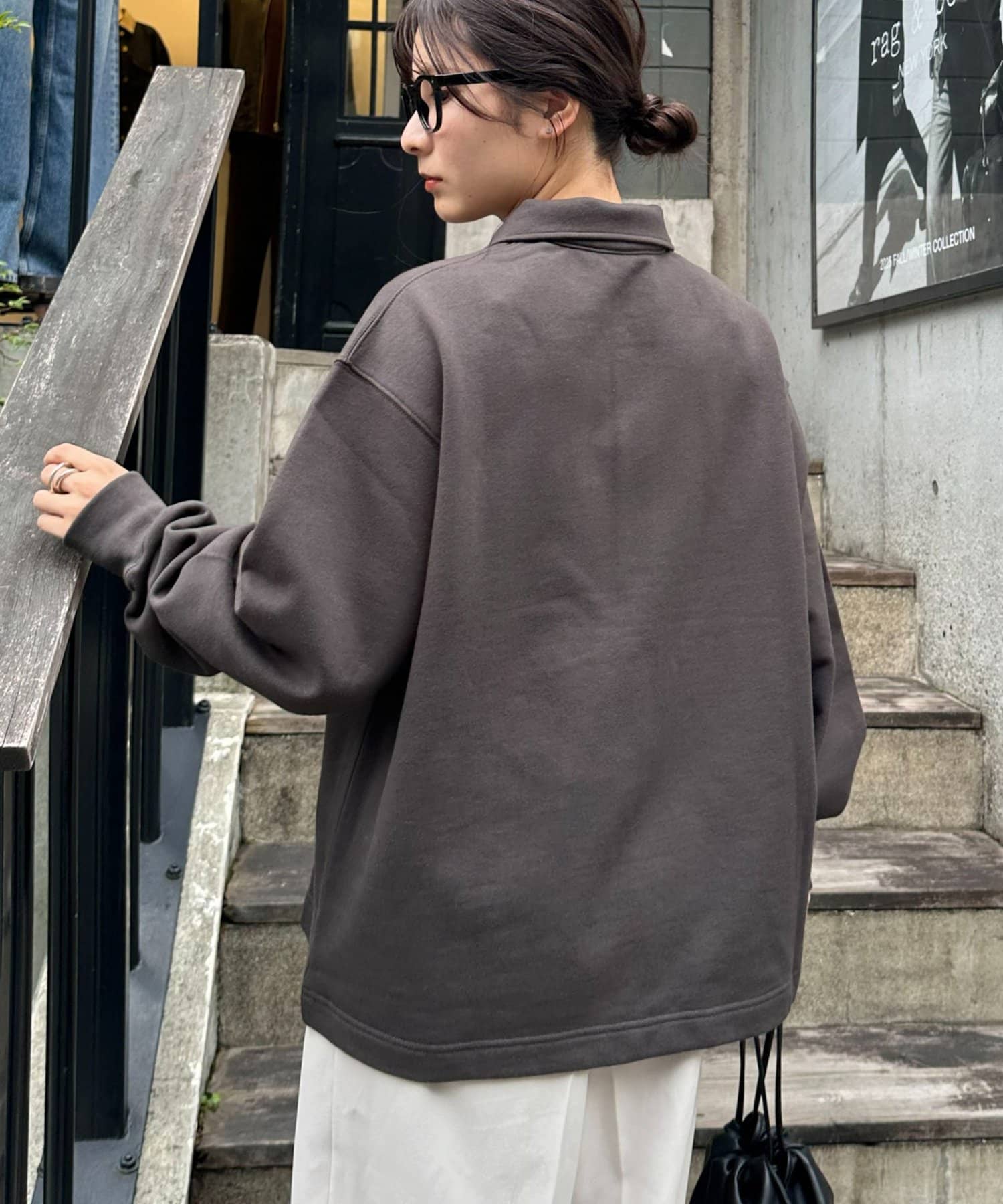 襟付きのデザインで、スウェットでもラフすぎず、1枚でもレイヤードでもサマになる着回し力が魅力です◎
