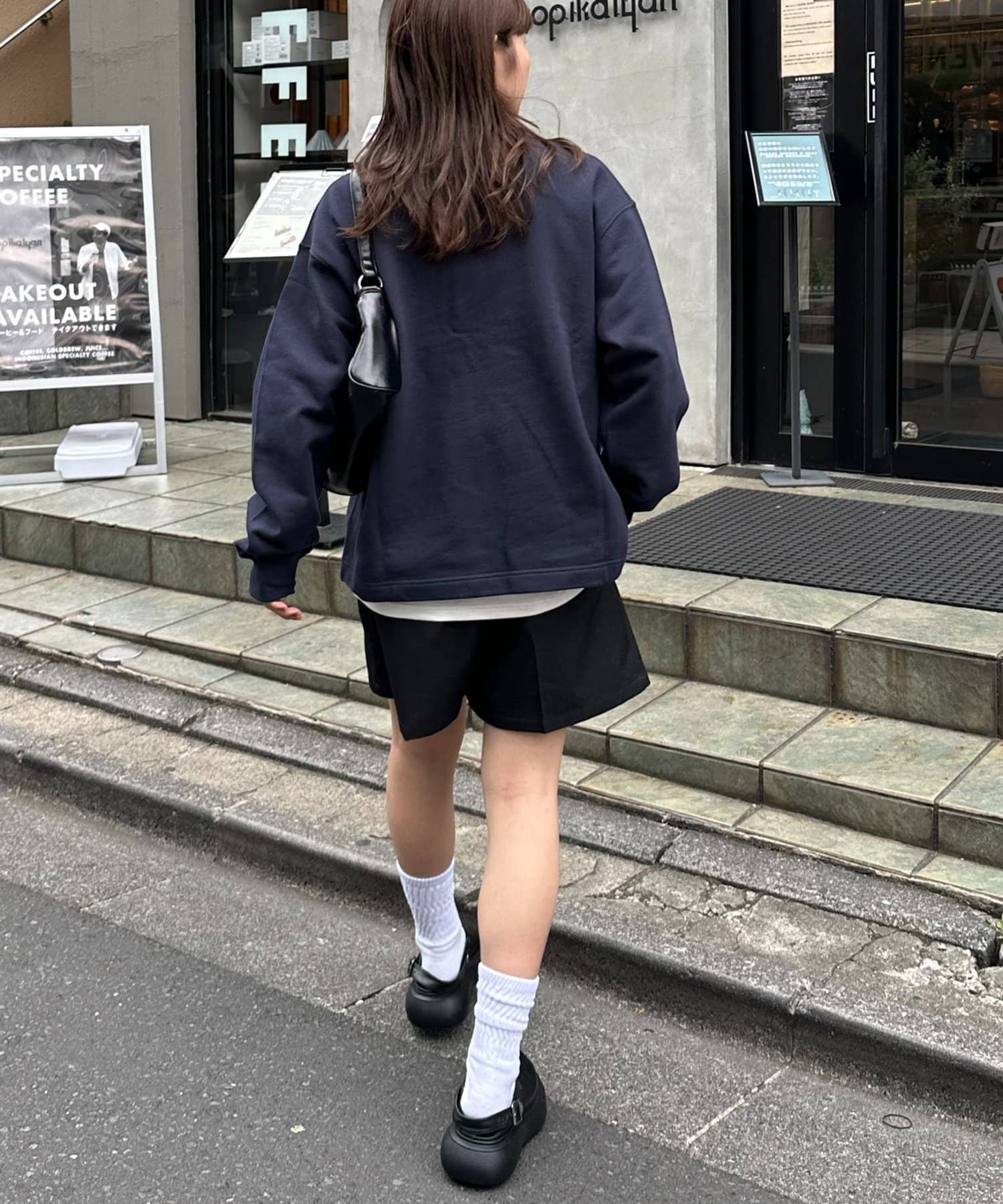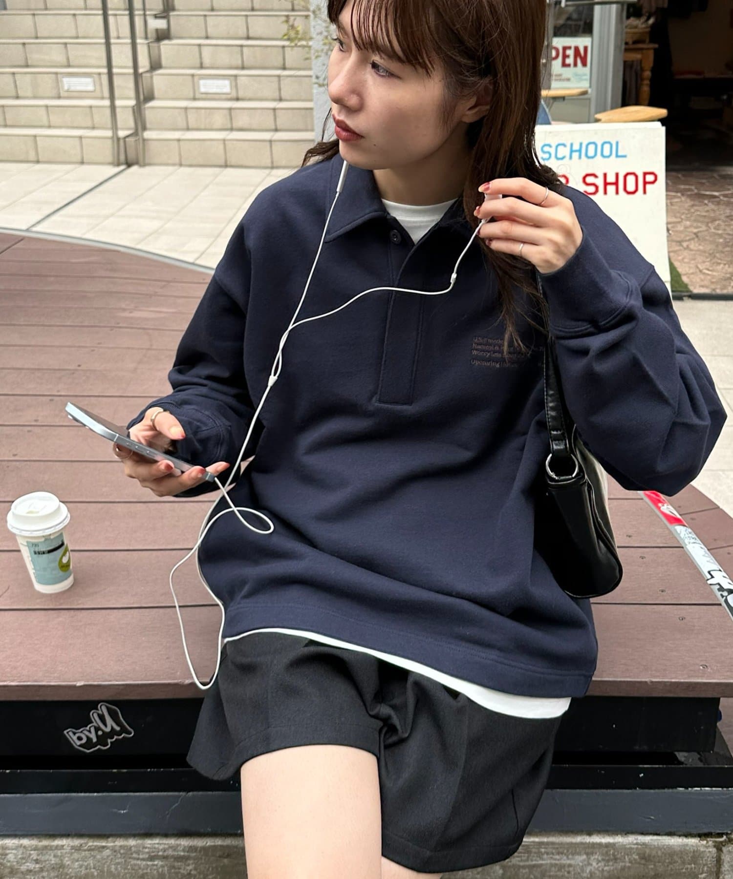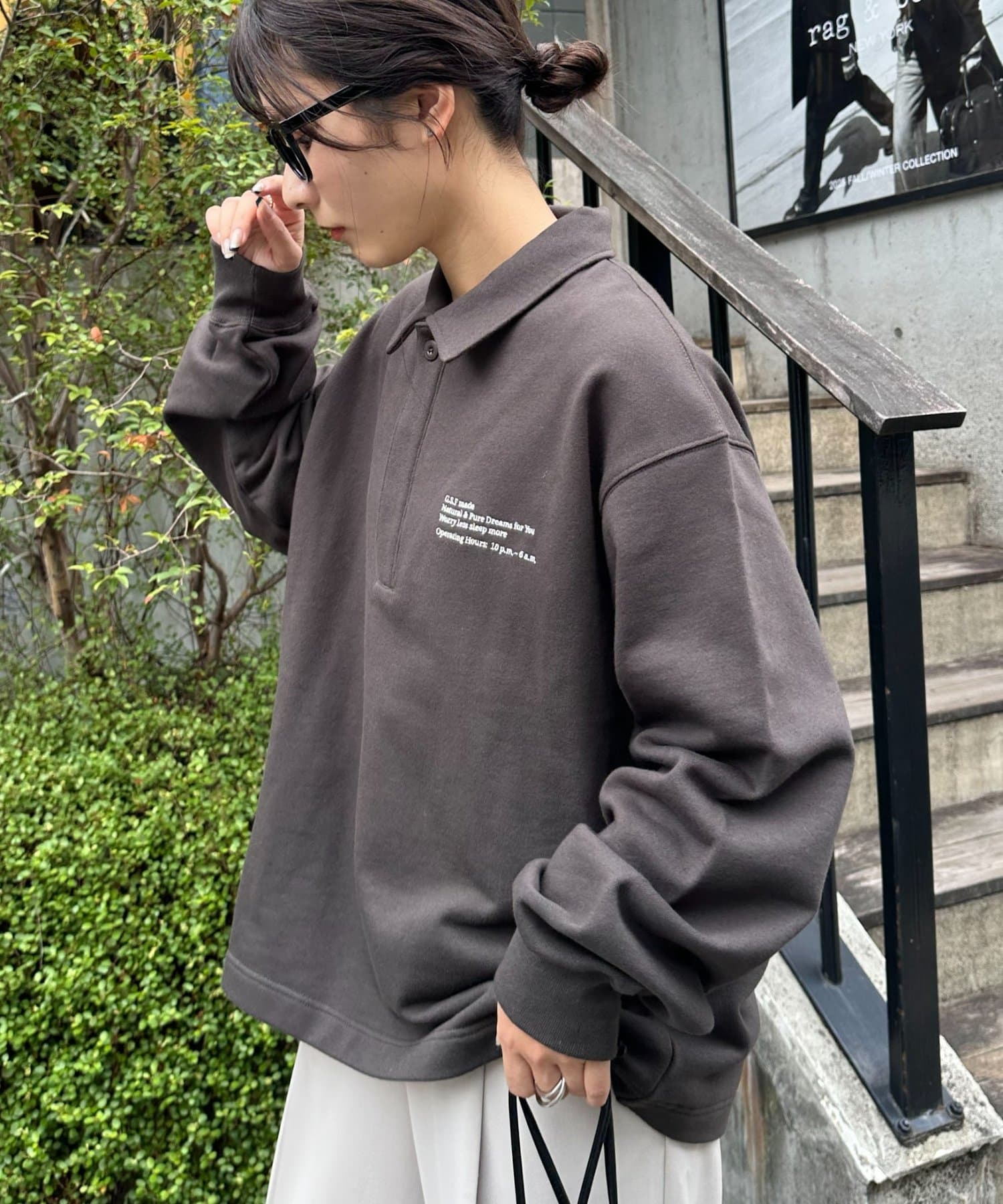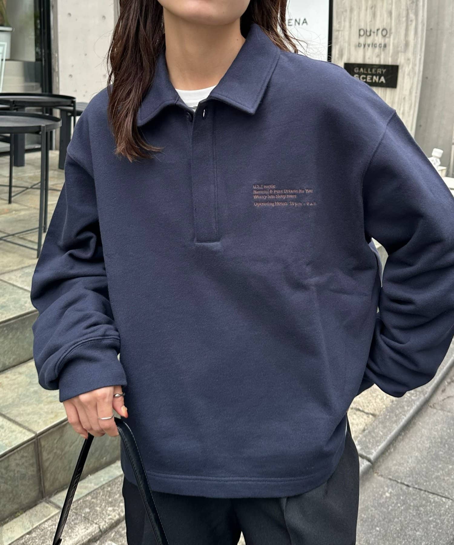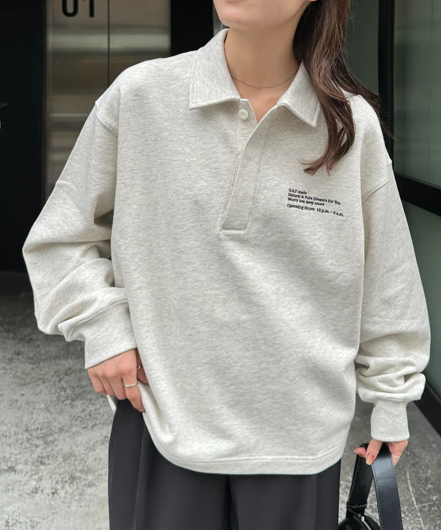 襟付きのデザインで、スウェットでもラフすぎず、1枚でもレイヤードでもサマになる着回し力が魅力です◎