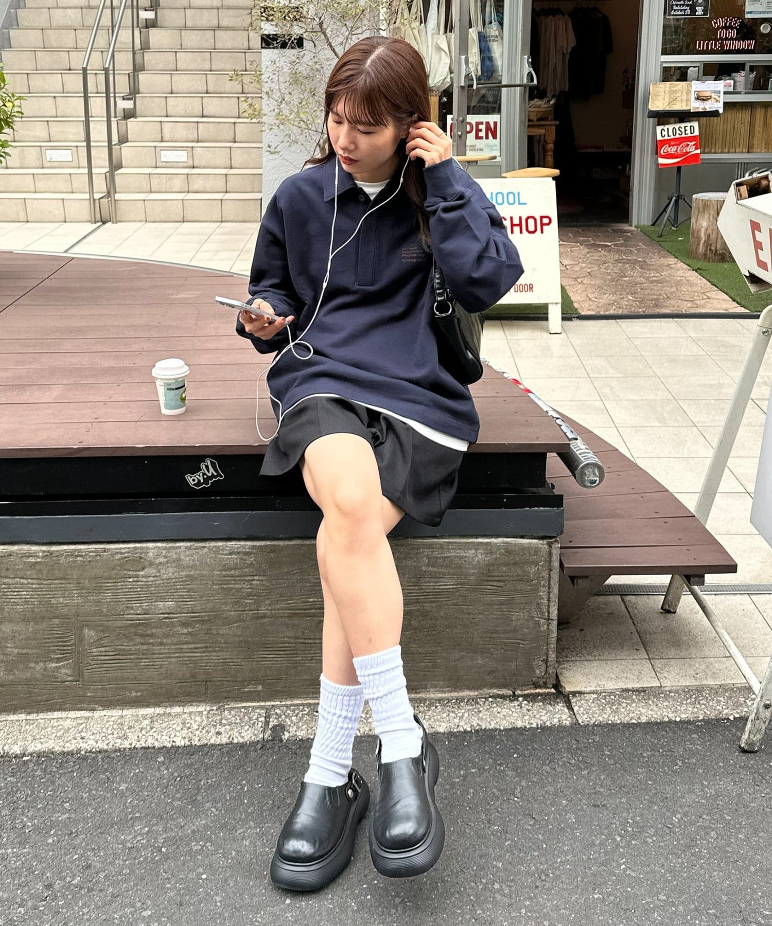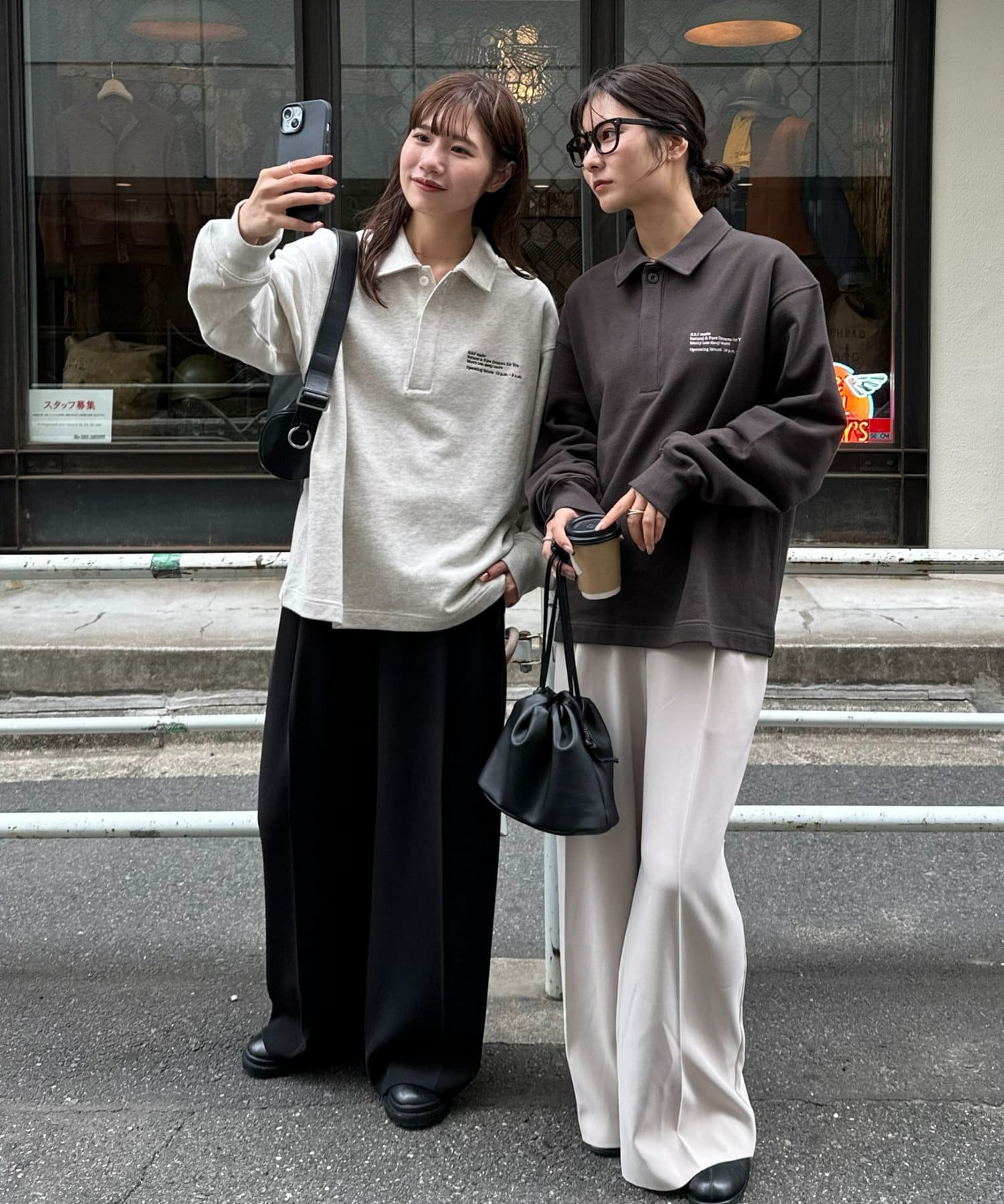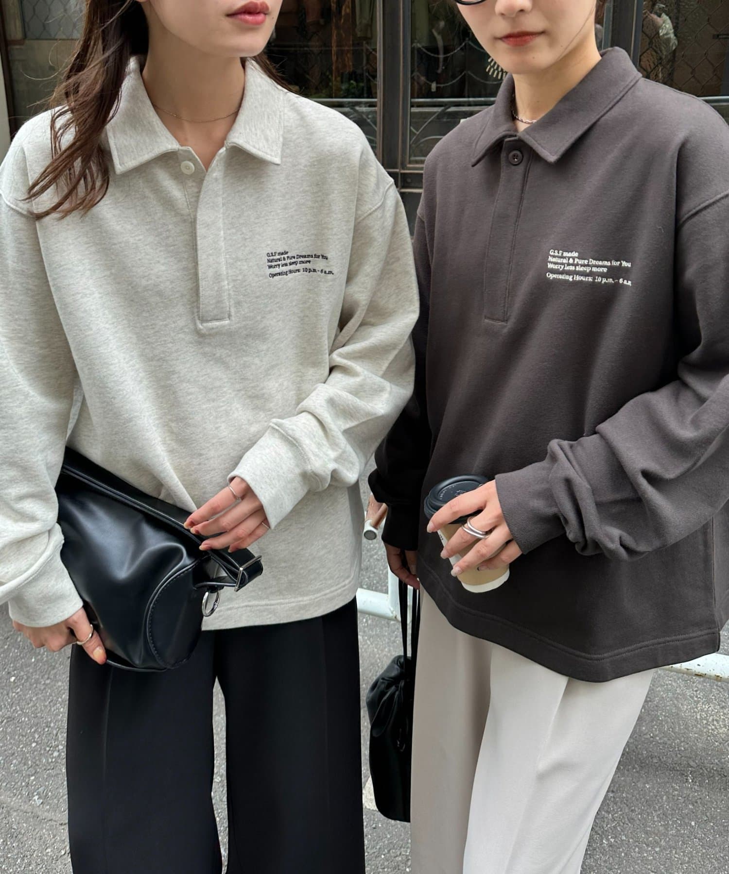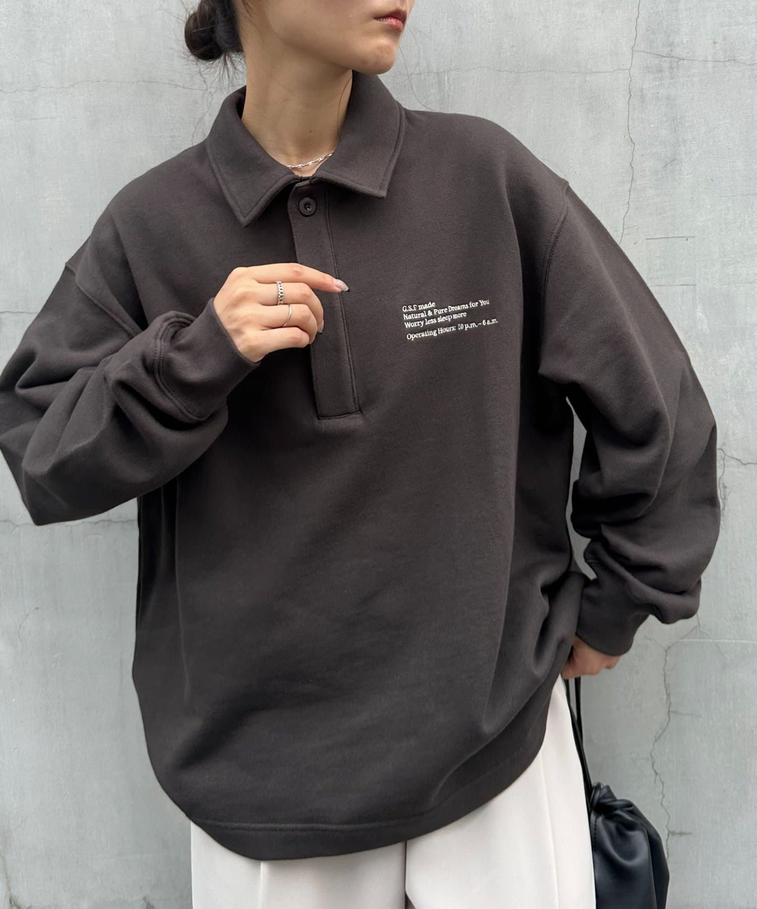 襟付きのデザインで、スウェットでもラフすぎず、1枚でもレイヤードでもサマになる着回し力が魅力です◎