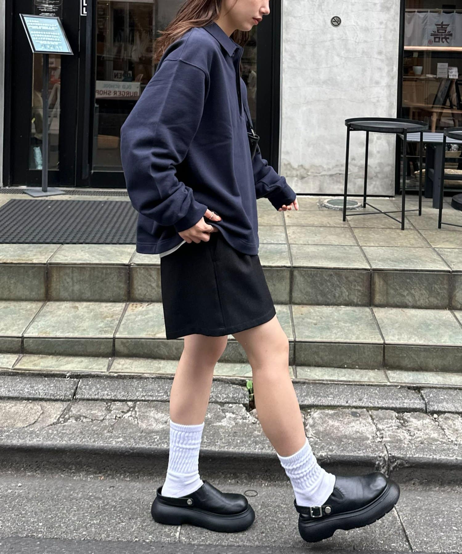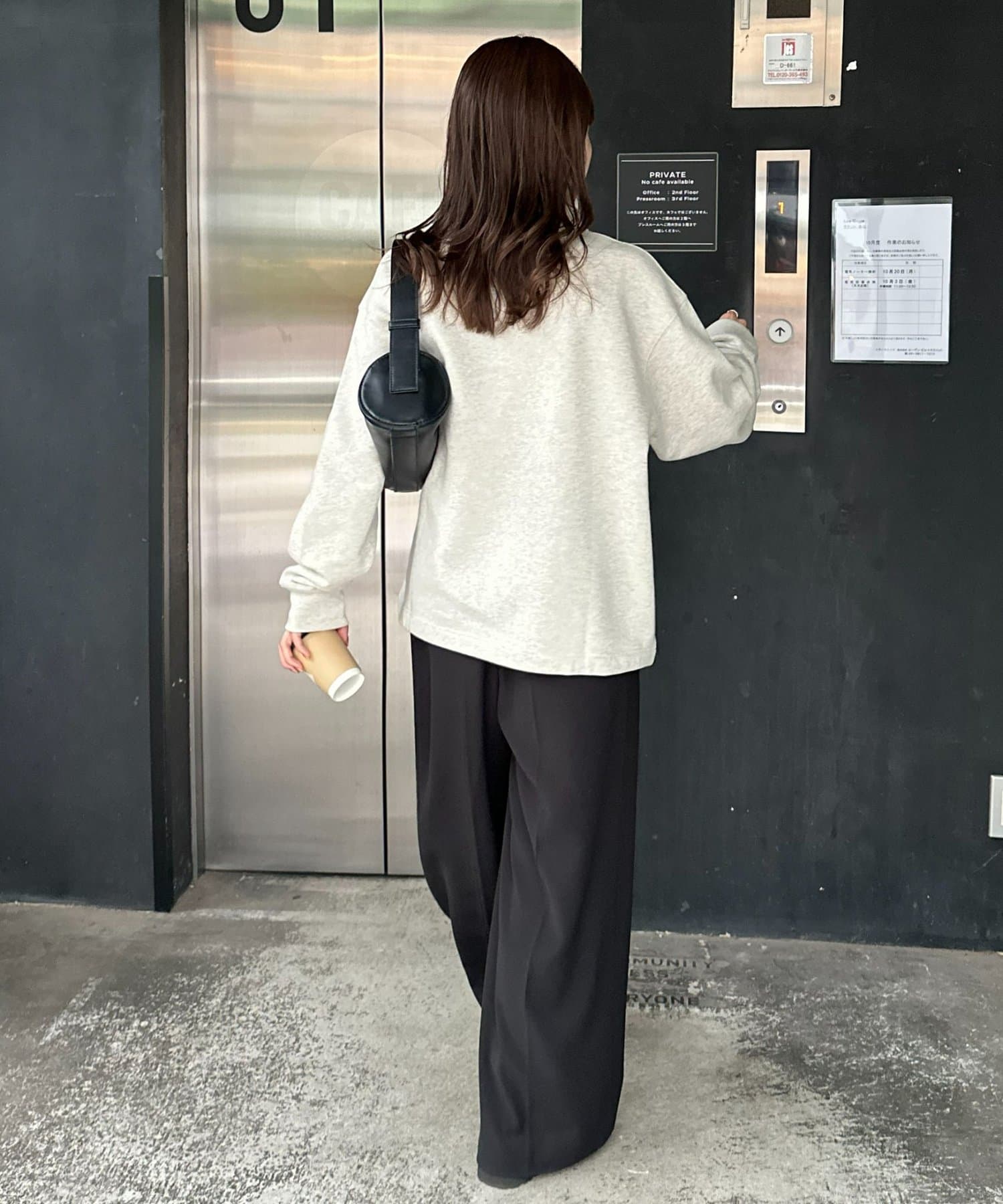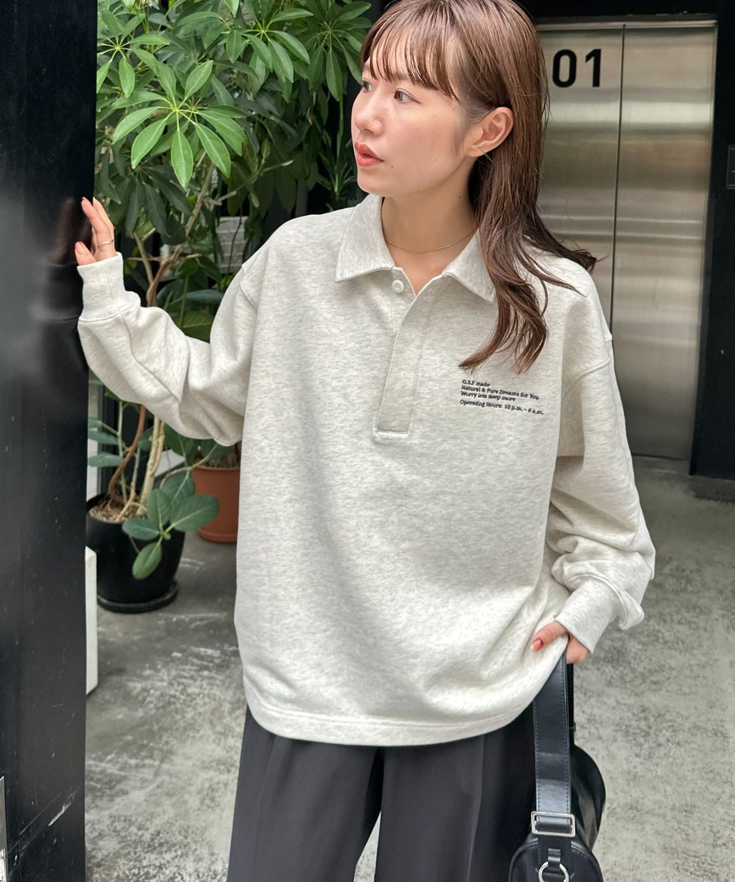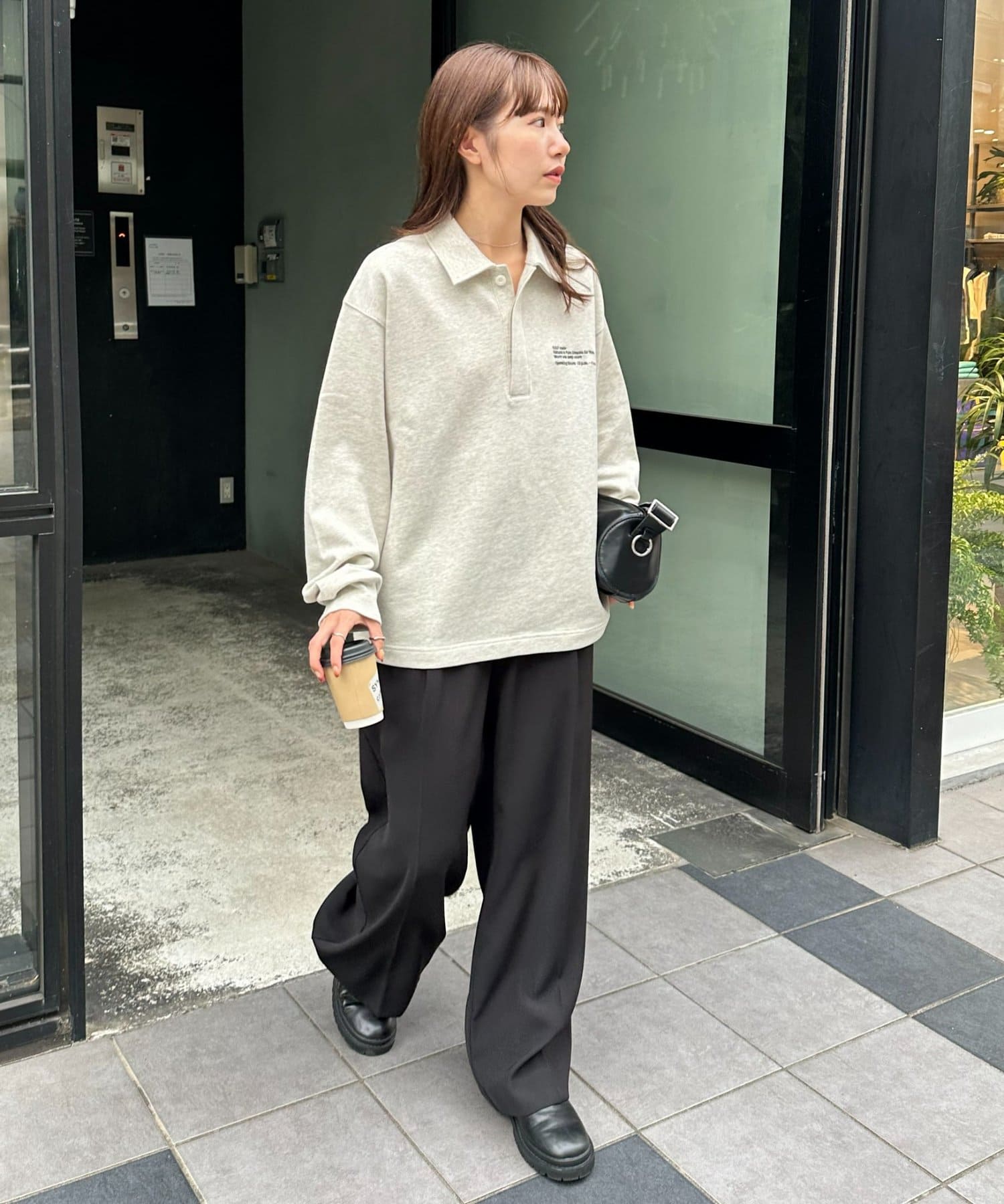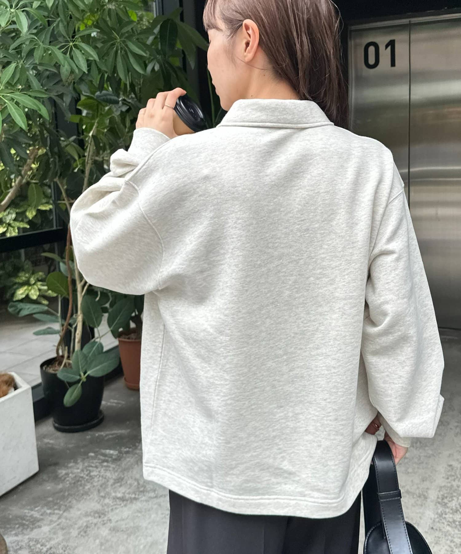 襟付きデザインで、スウェットながらもカジュアルすぎず、こなれ感のある印象に♪
