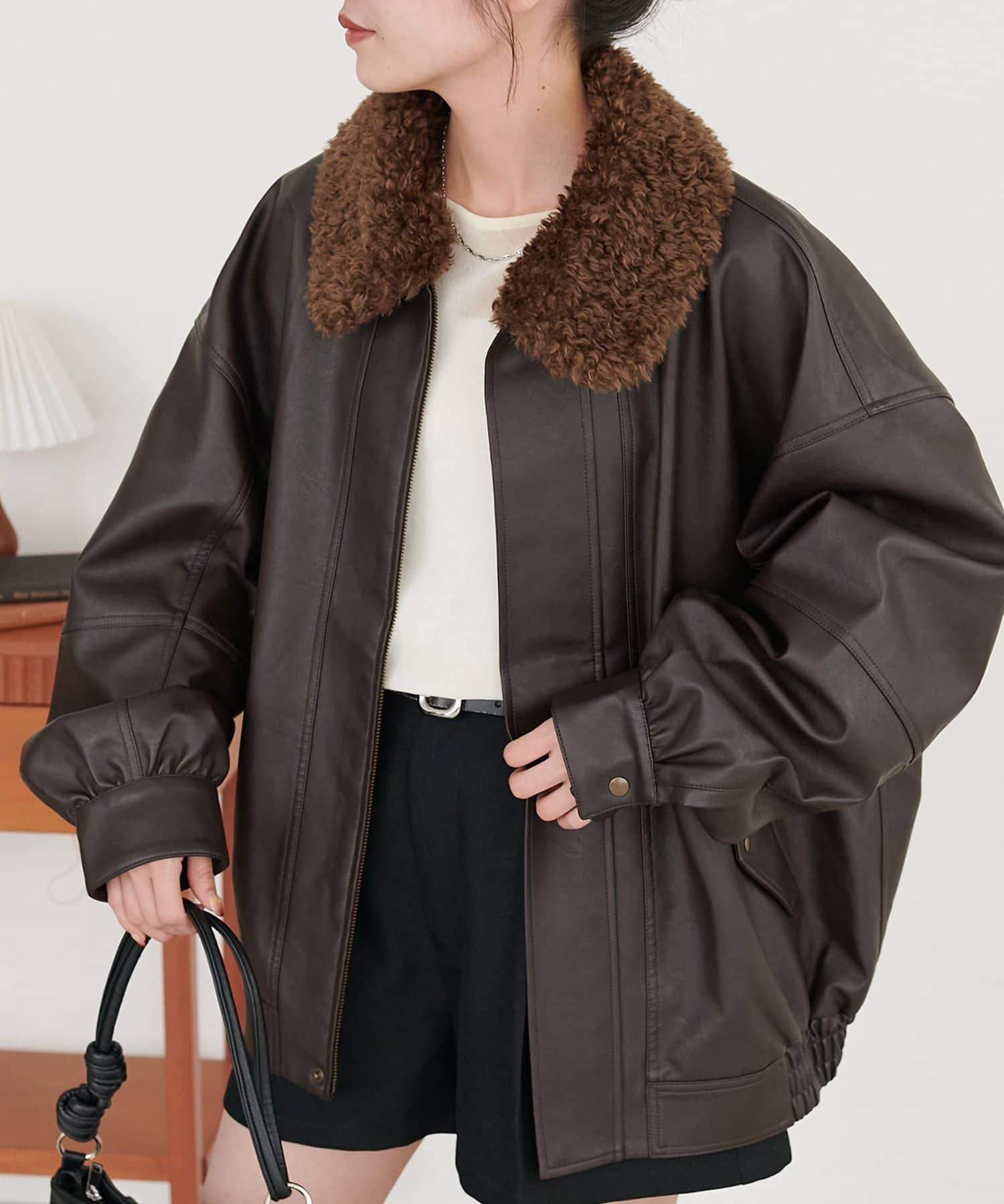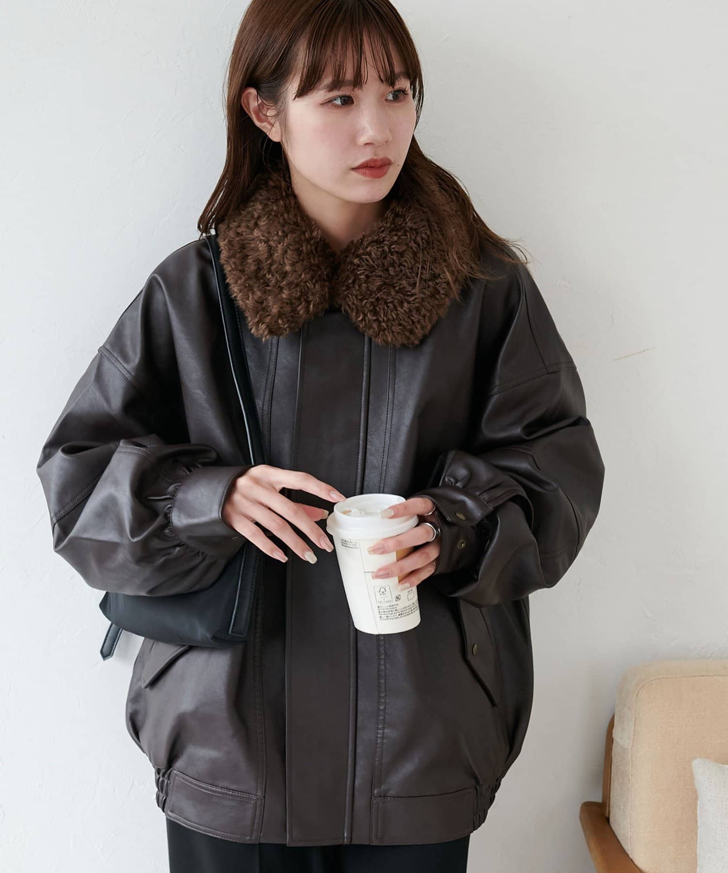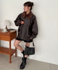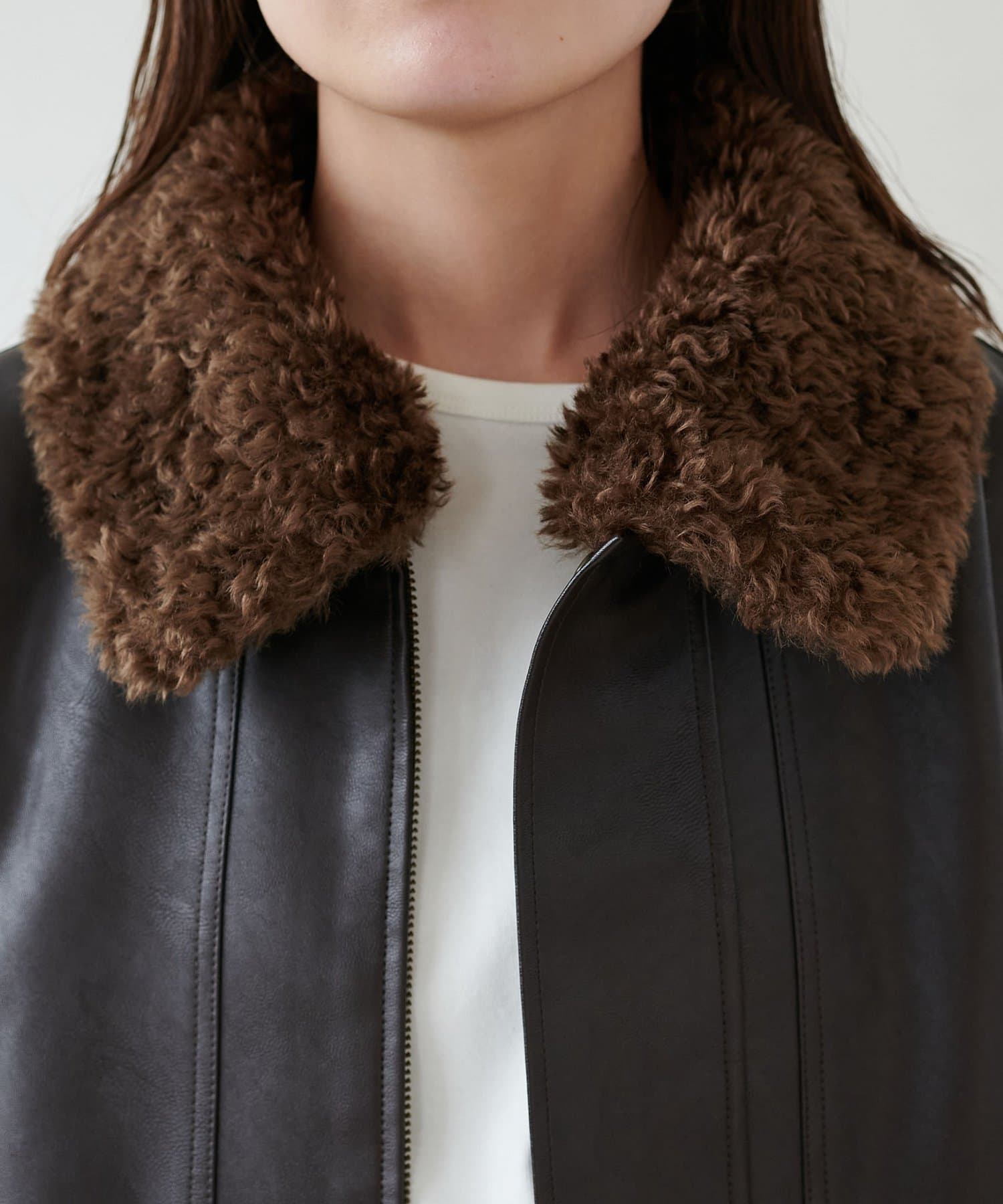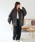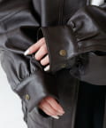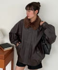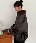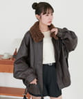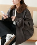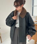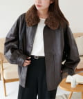 ヴィンテージ感あるフェイクレザーに、もこもこのボア襟を施したことで、顔回りに立体感を与え、スタイリングに程よいアクセントをプラスします◎