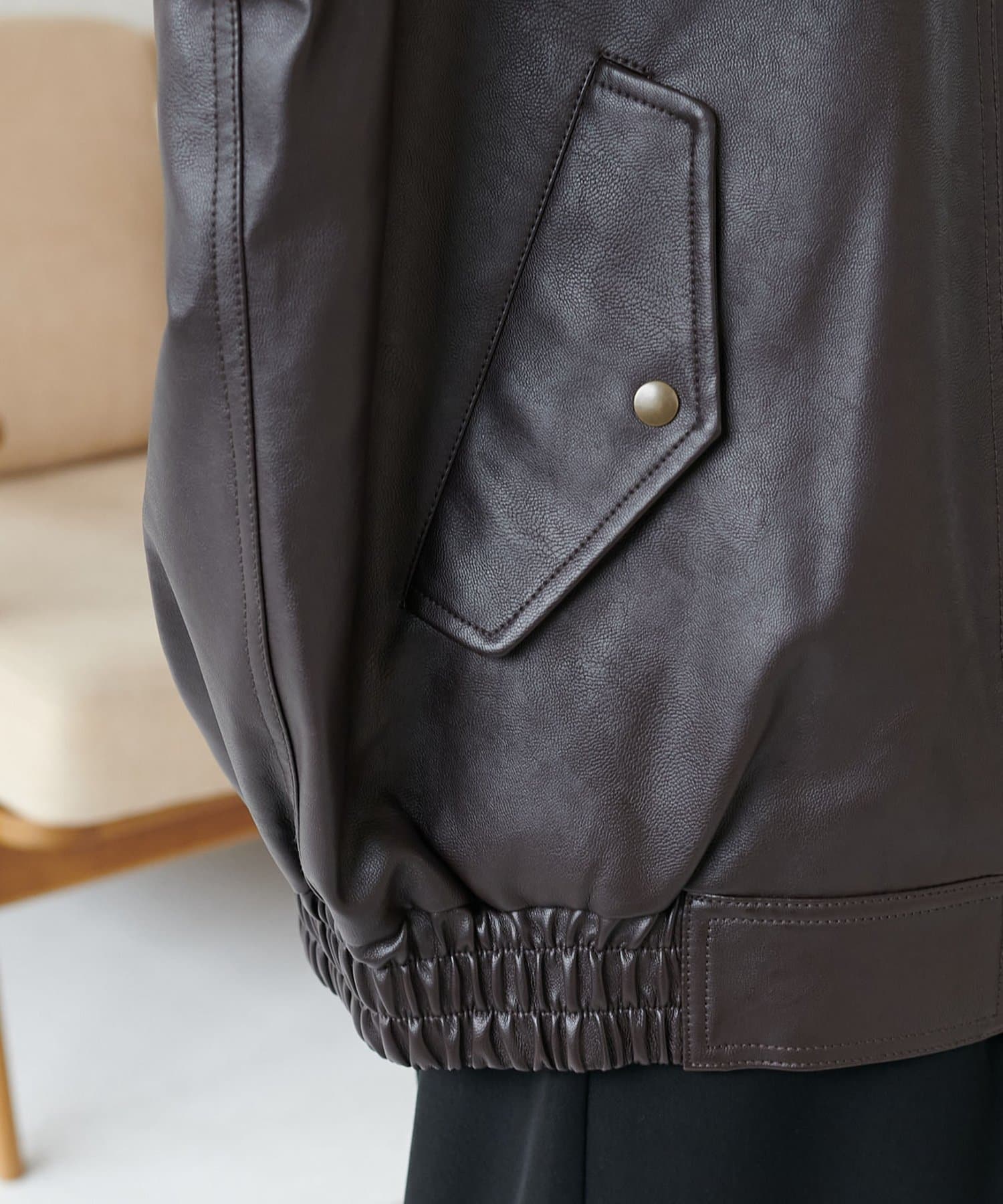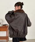 【衿取り外し可能/ユニセックス】ボア衿付きフェイクレザーブルゾン