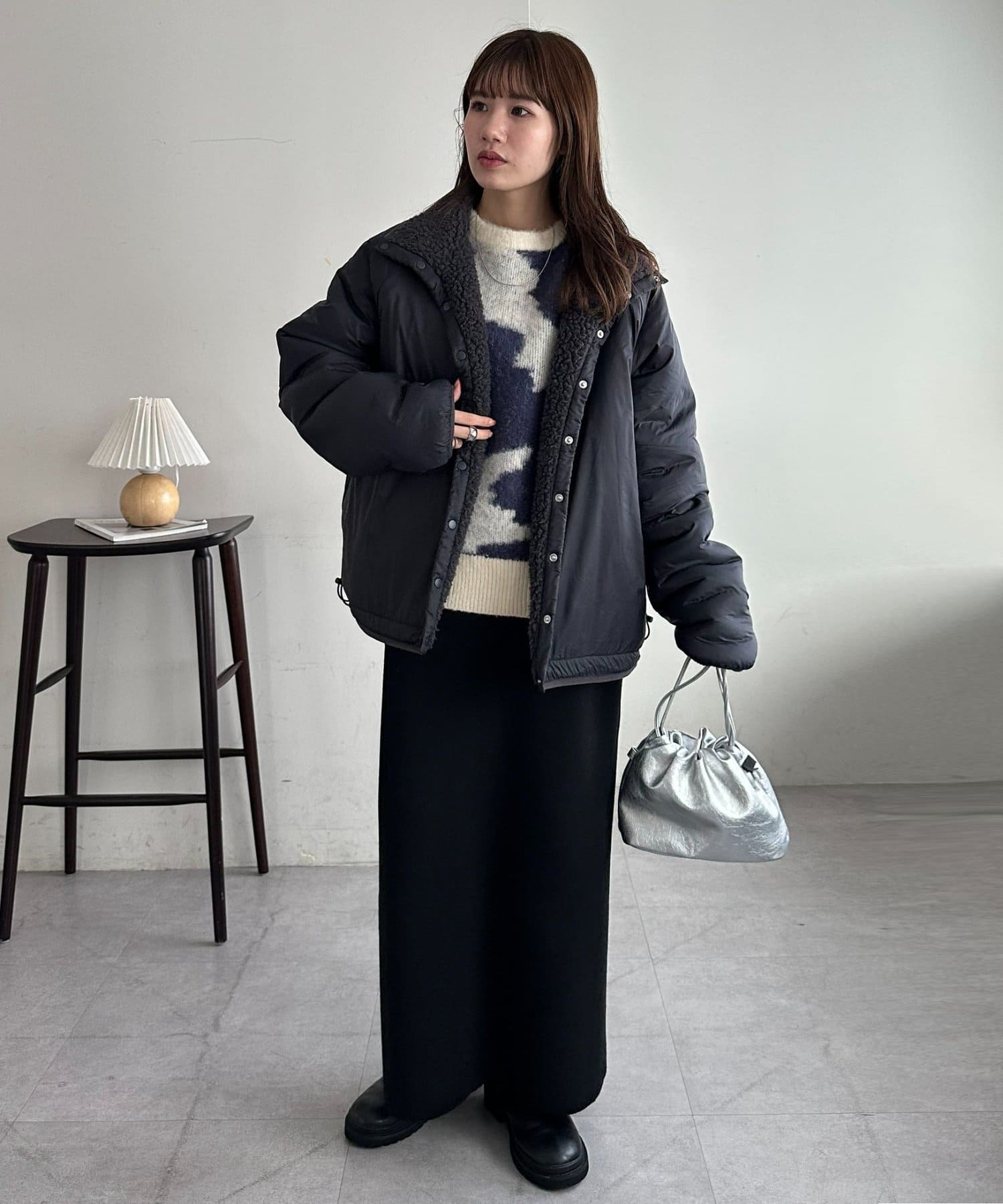Sサイズは着丈がコンパクトなので、フレアスカートやワイドパンツ合わせがおすすめ◎