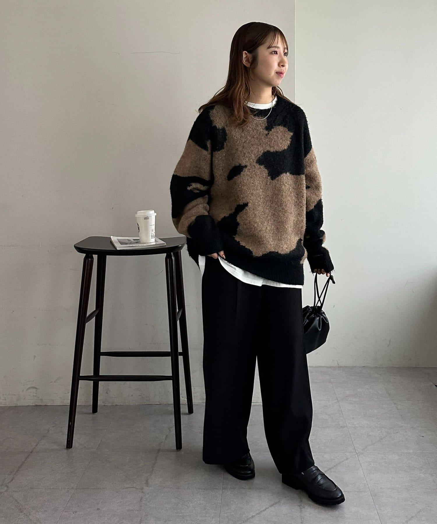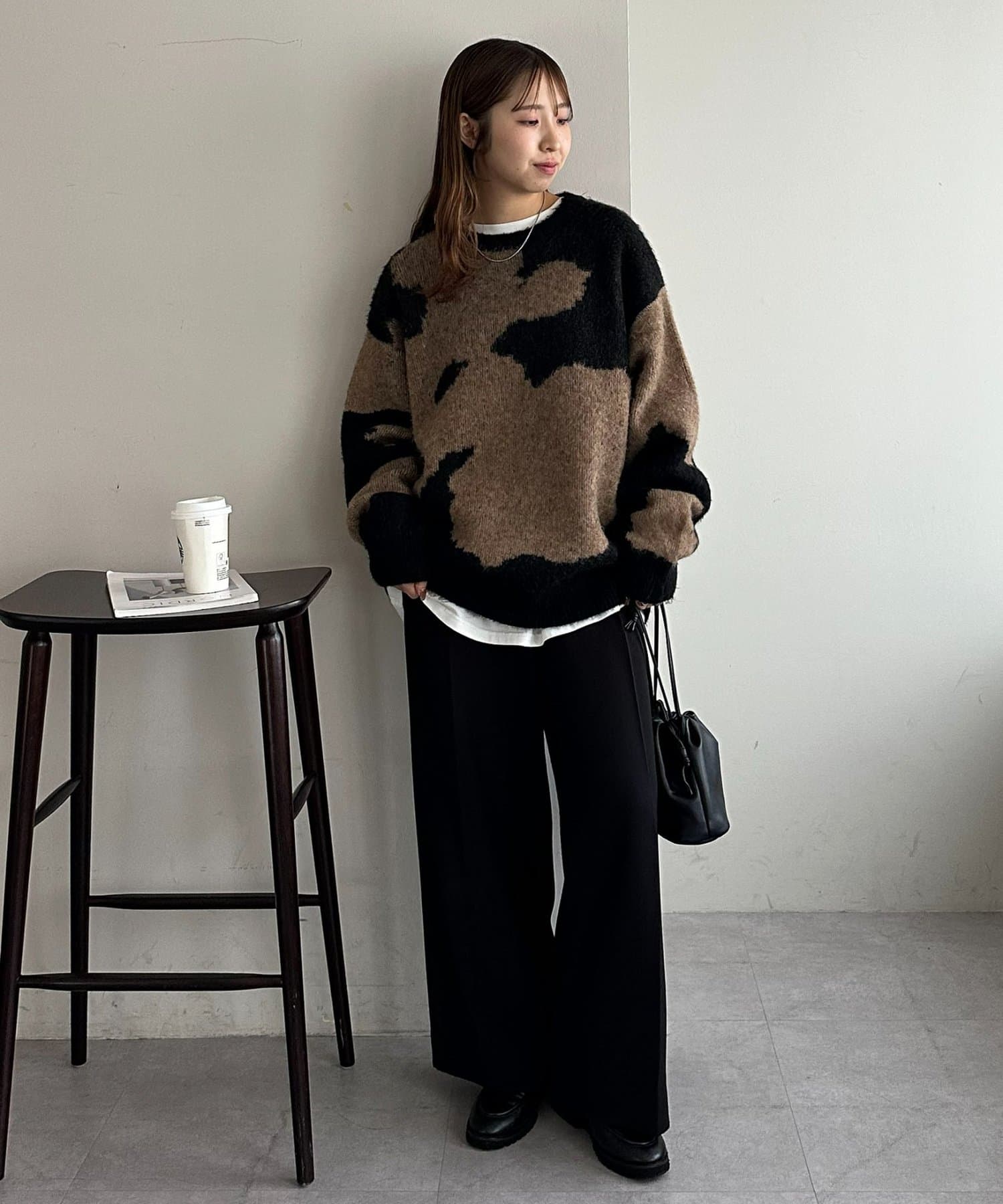表情のあるジャガード編みは、コーデのアクセントに!柔らかく伸縮性のある素材で着心地も抜群◎