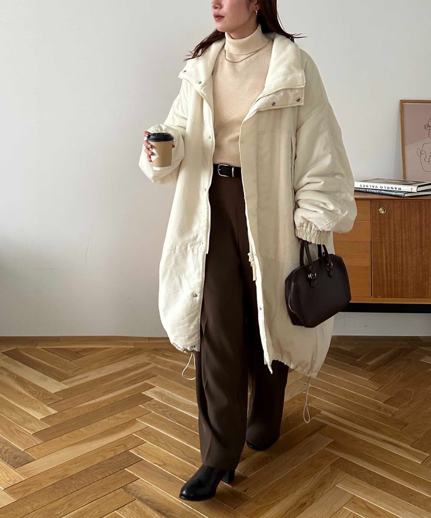 程よくボリュームのあるフォルムながらも、着るとすとんと落ちるラインで、すっきりとした印象に◎
