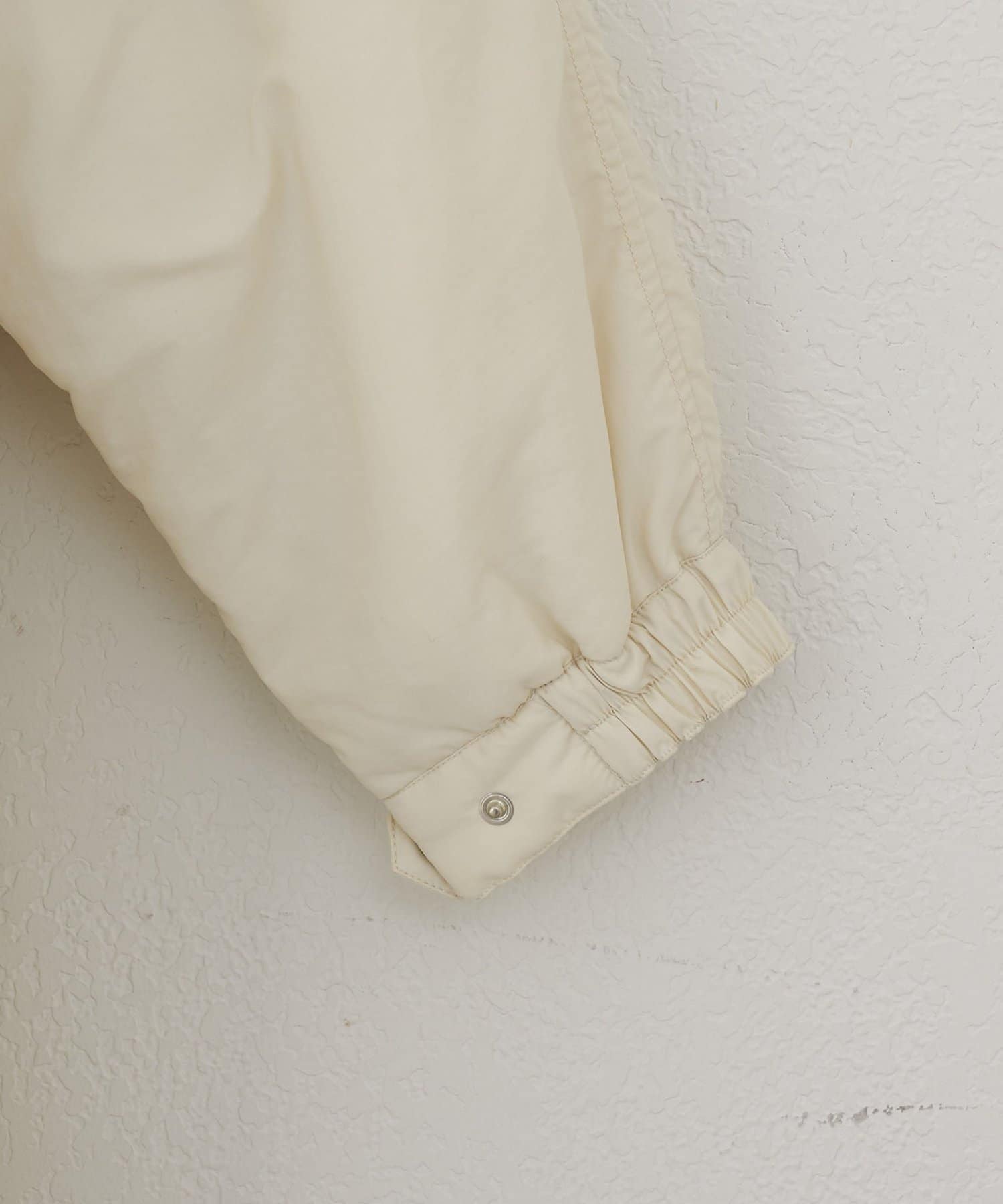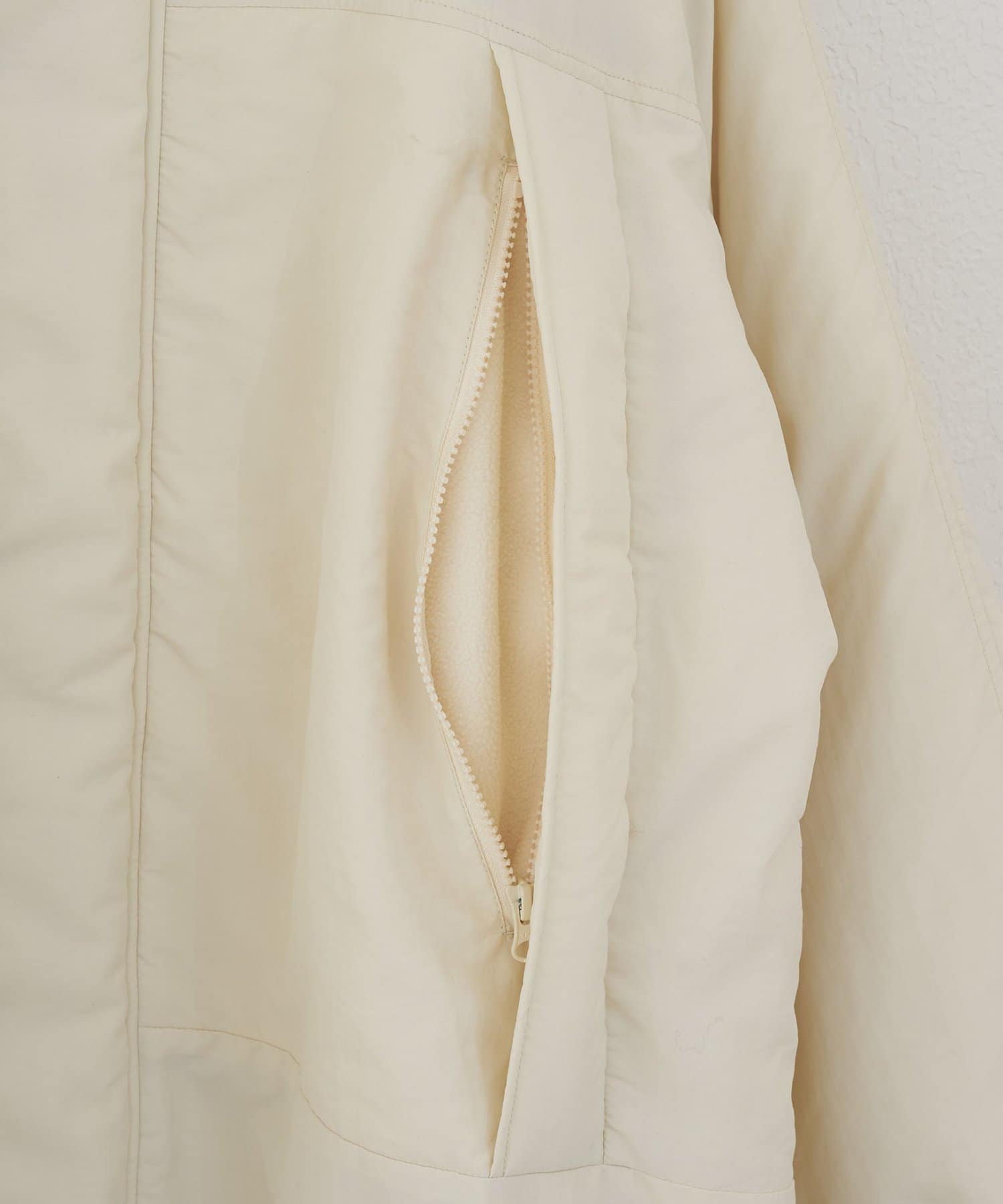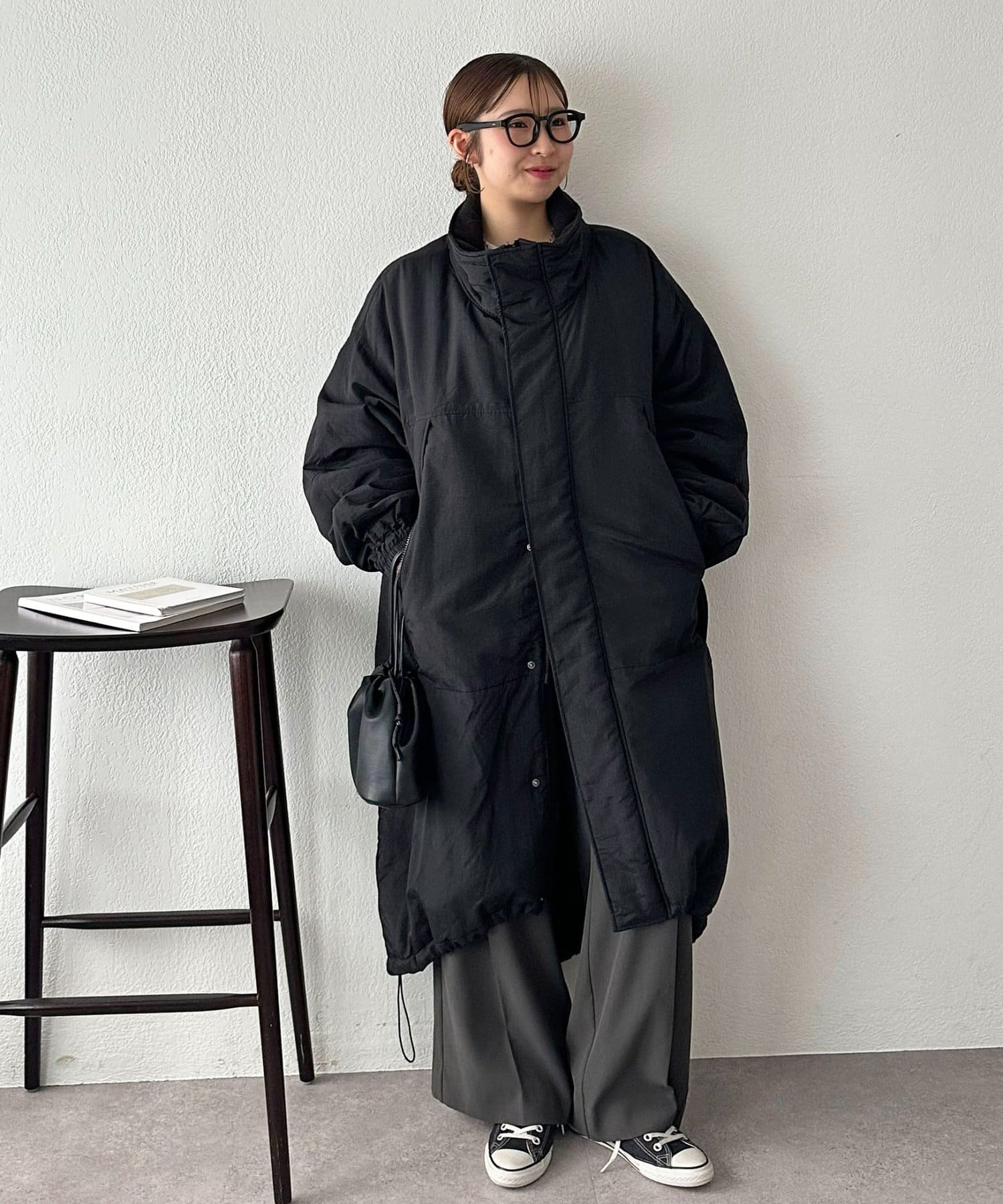 高めのスタンドカラーや大きめのポケットなど、ミリタリー要素を取り入れつつ、どんなスタイルにも馴染むシンプルなデザインに仕上げました。裾のドローコードを絞って丸みを出すと、バランスの良いシルエットに♪