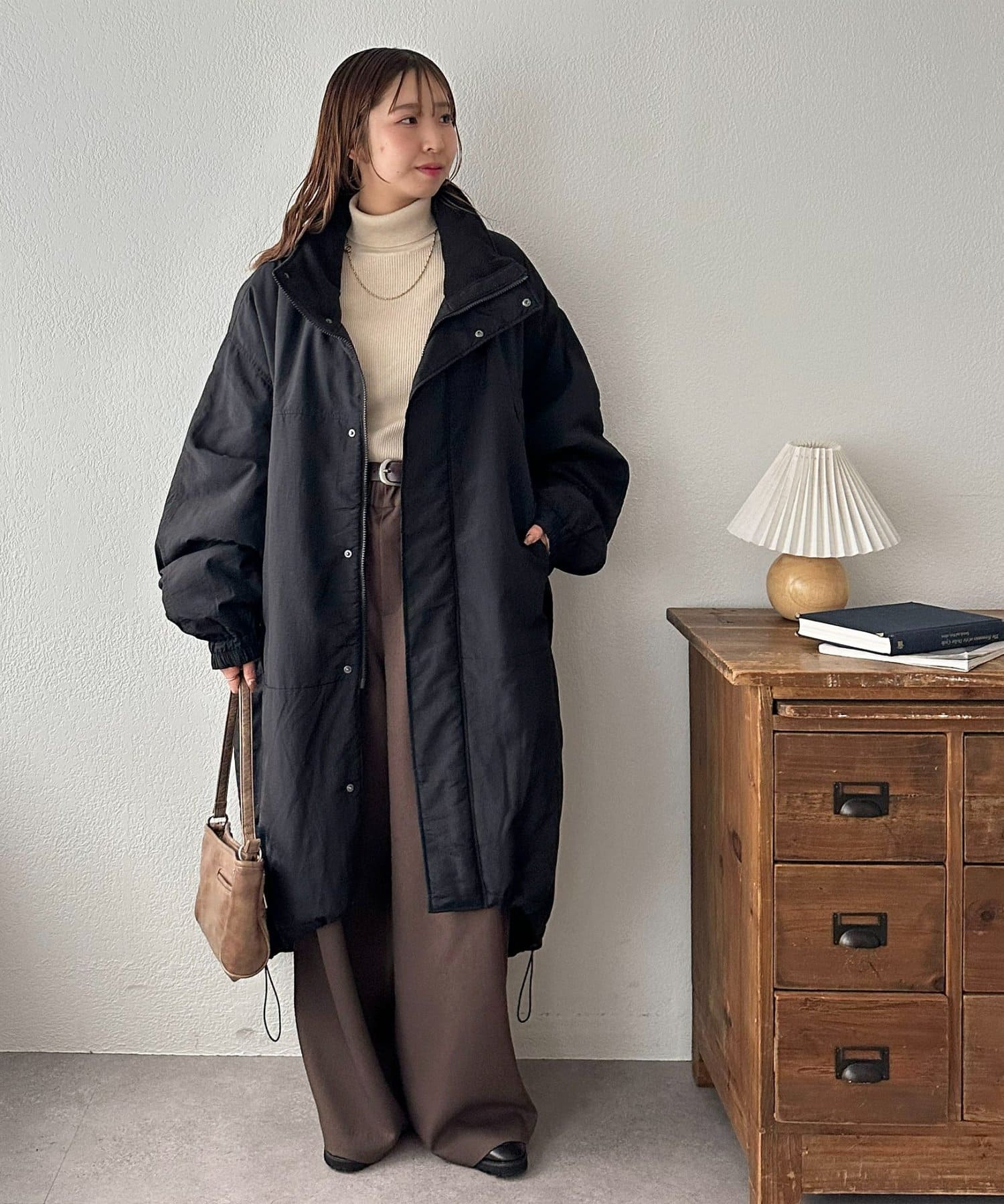 ひざ下まである丈感で暖かく、ダブルジップのデザインにしたことでロング丈の中に抜け感もプラスしてくれます◎