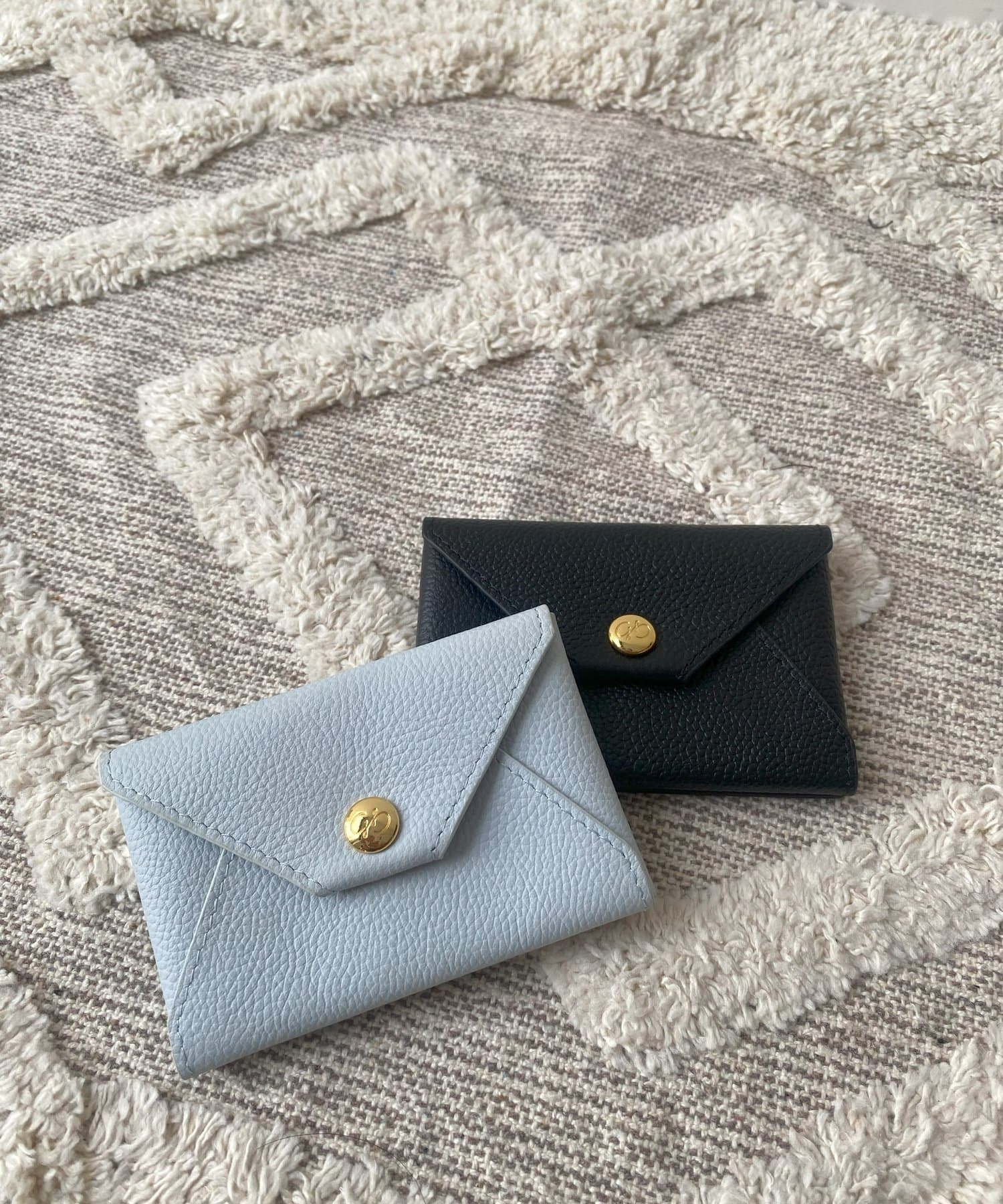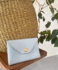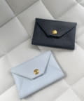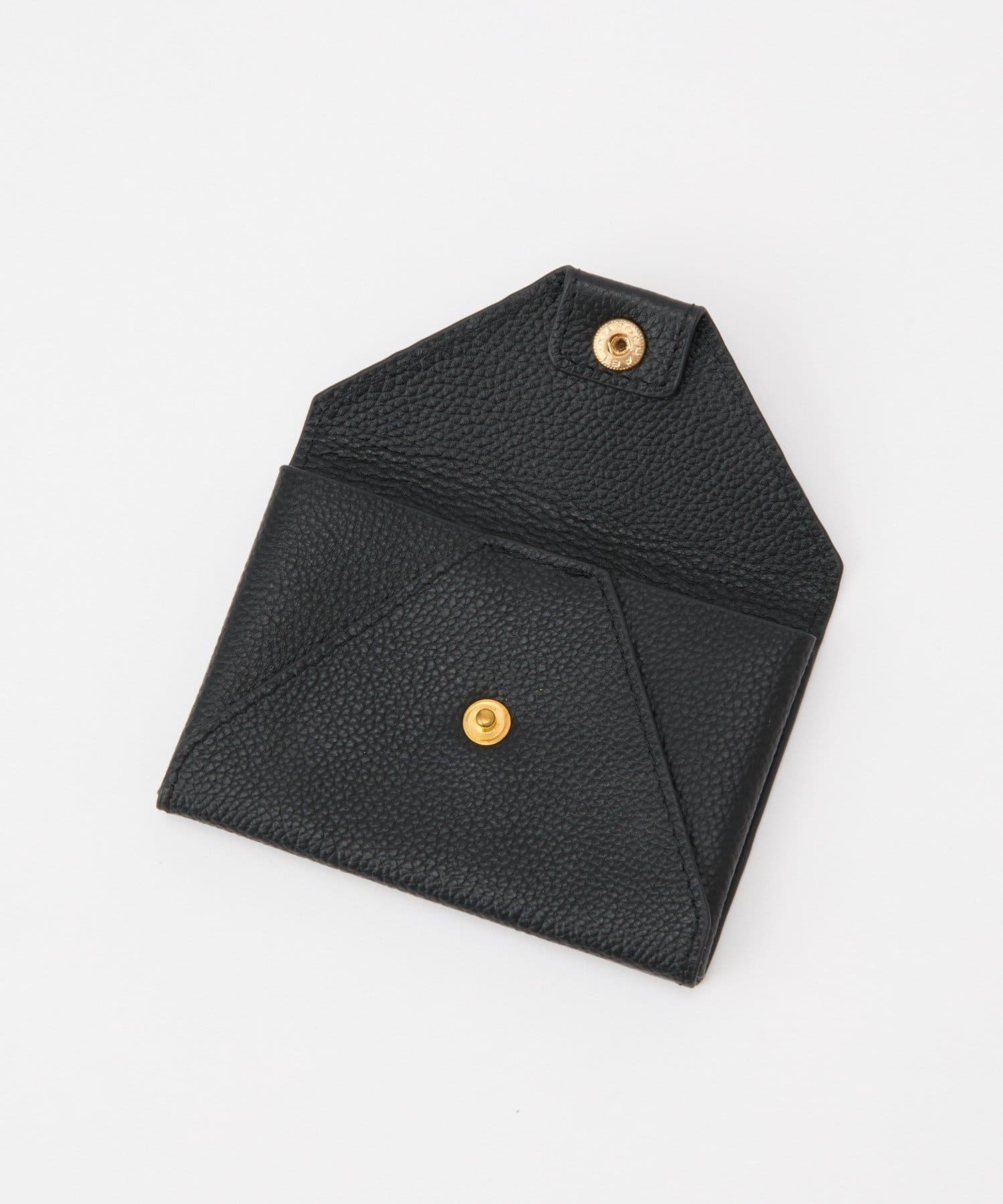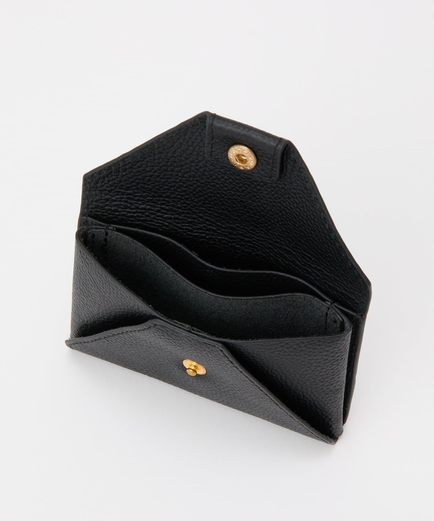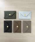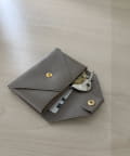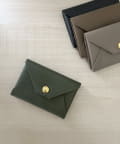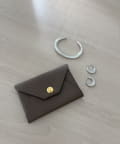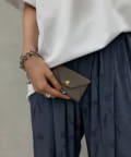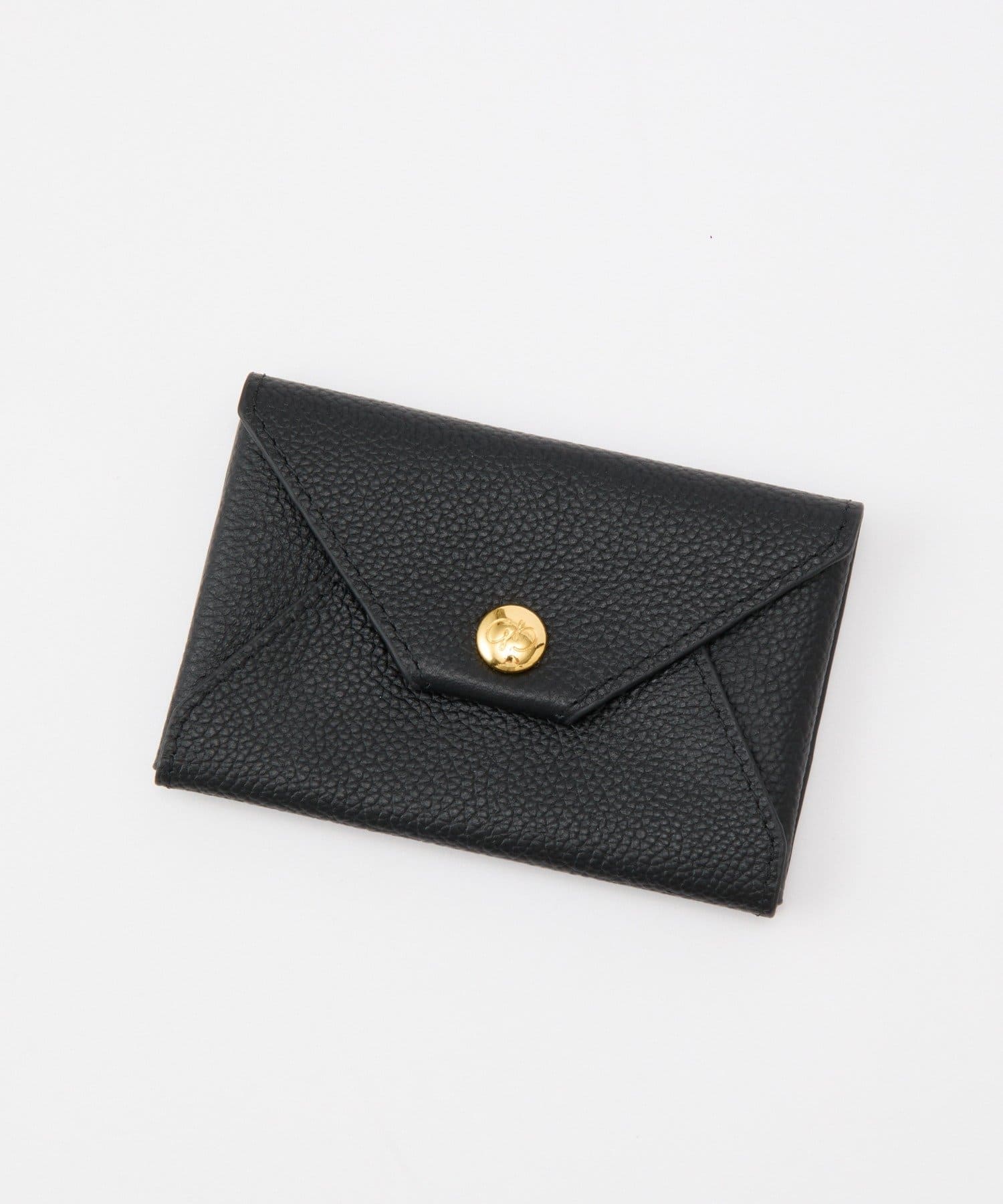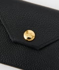 ロゴの入ったスナップボタンがポイントの、シンプルながらも洗練されたデザインのカードケース。