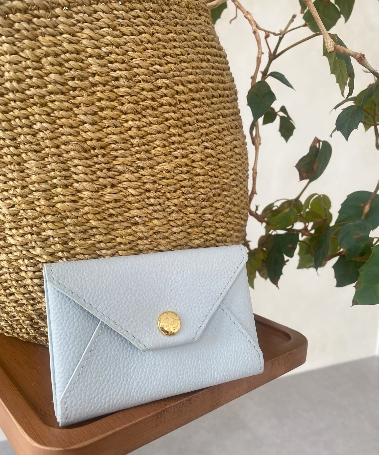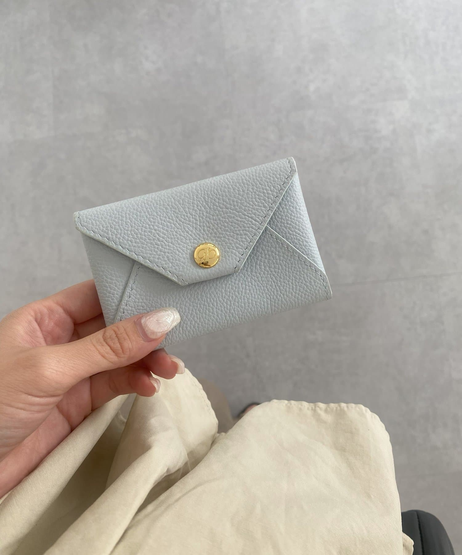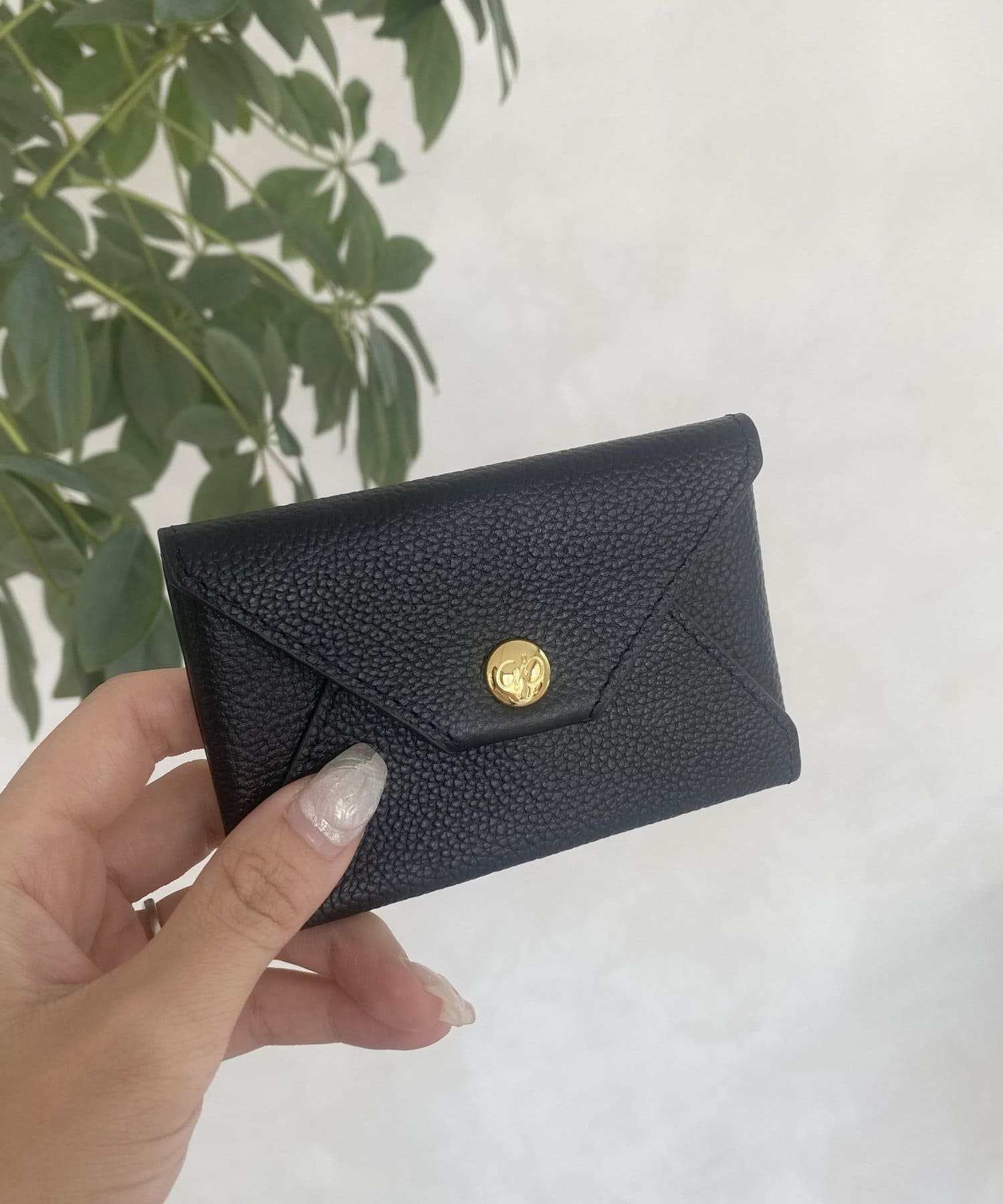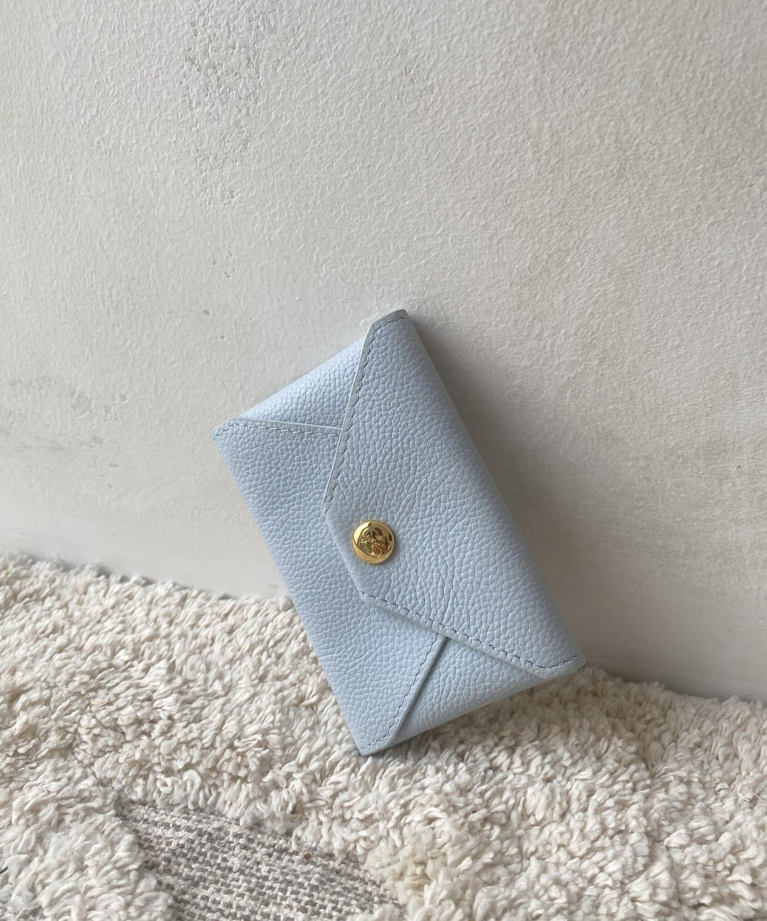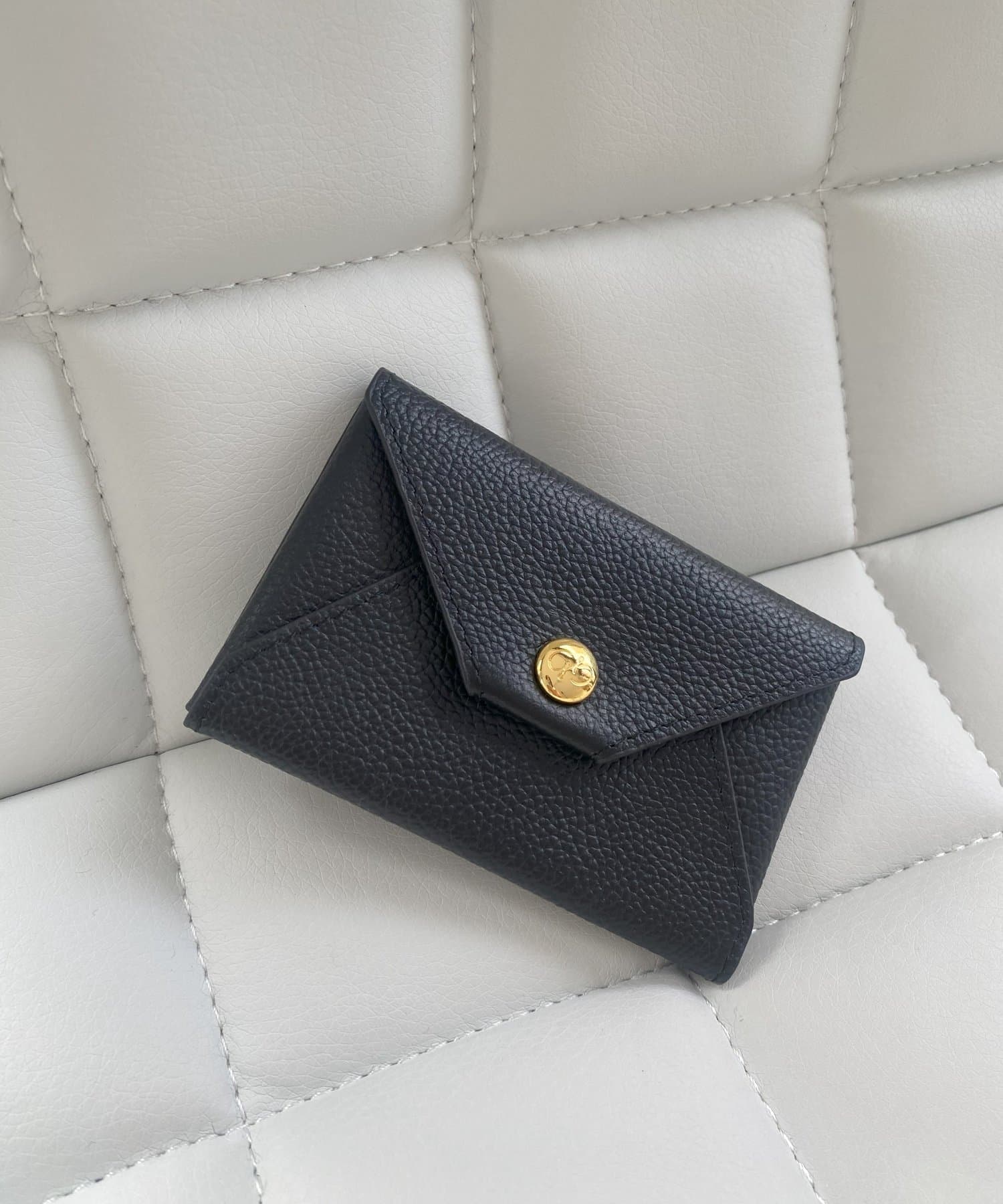ロゴの入ったスナップボタンがポイントの、シンプルながらも洗練されたデザインのカードケース。