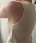 インナーのノースリーブカーディガンは、縦のラインを強調してくれるリブ素材を使用。