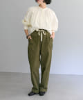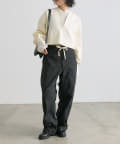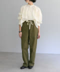 ・本体のカラーとは異なるアイボリーのウエスト紐がコーデのポイントに