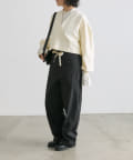 ダボっとしたシルエットとウエスト紐がポイント