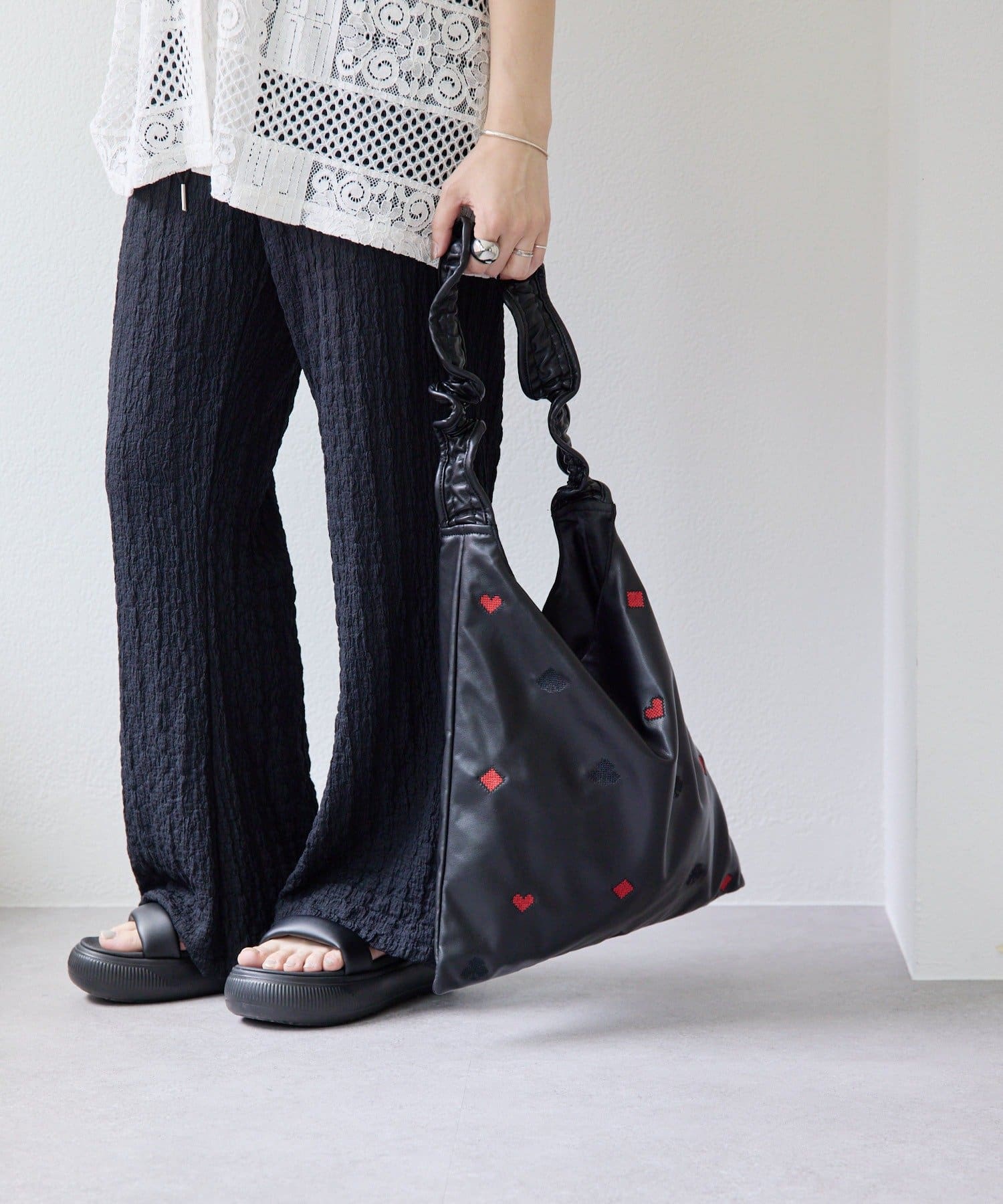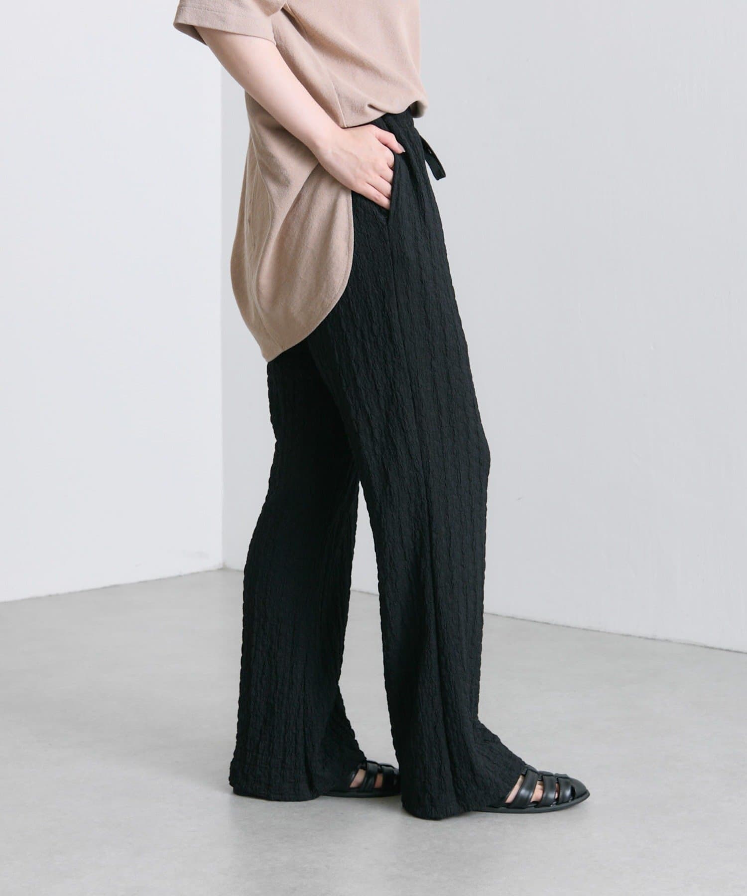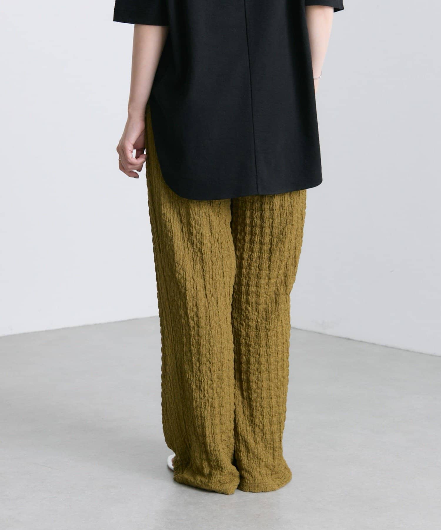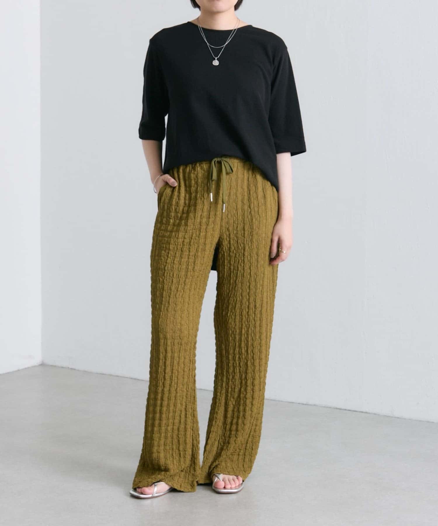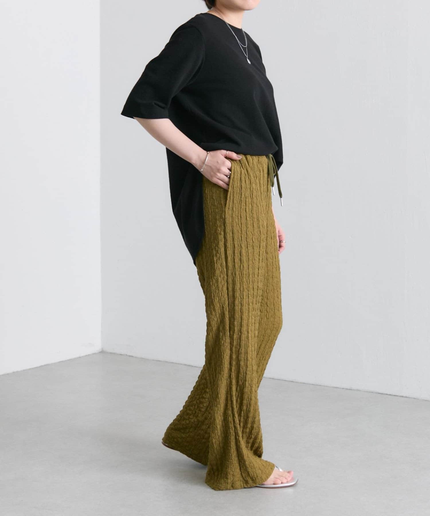凹凸感のあるデザインなのでシンプルなトップスと合わせるだけでも◎