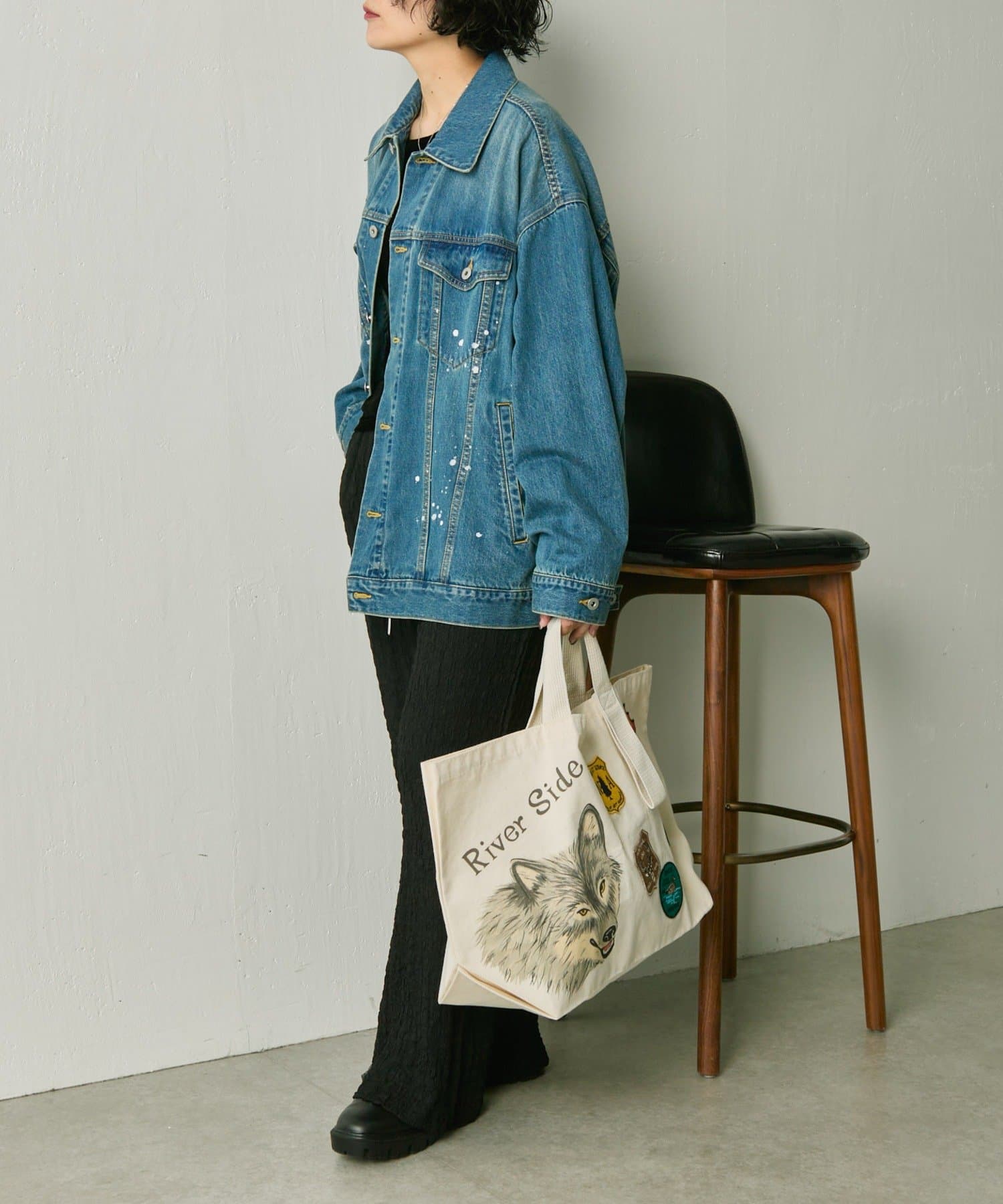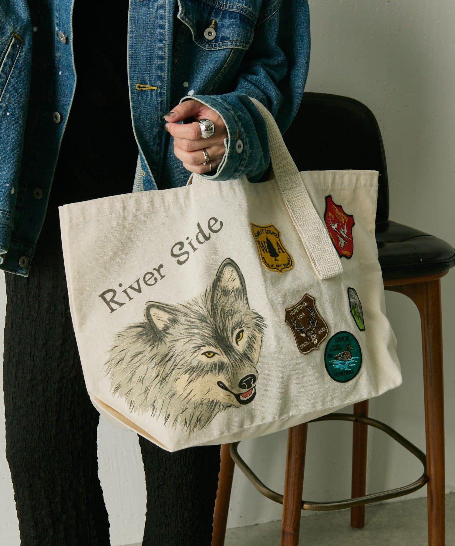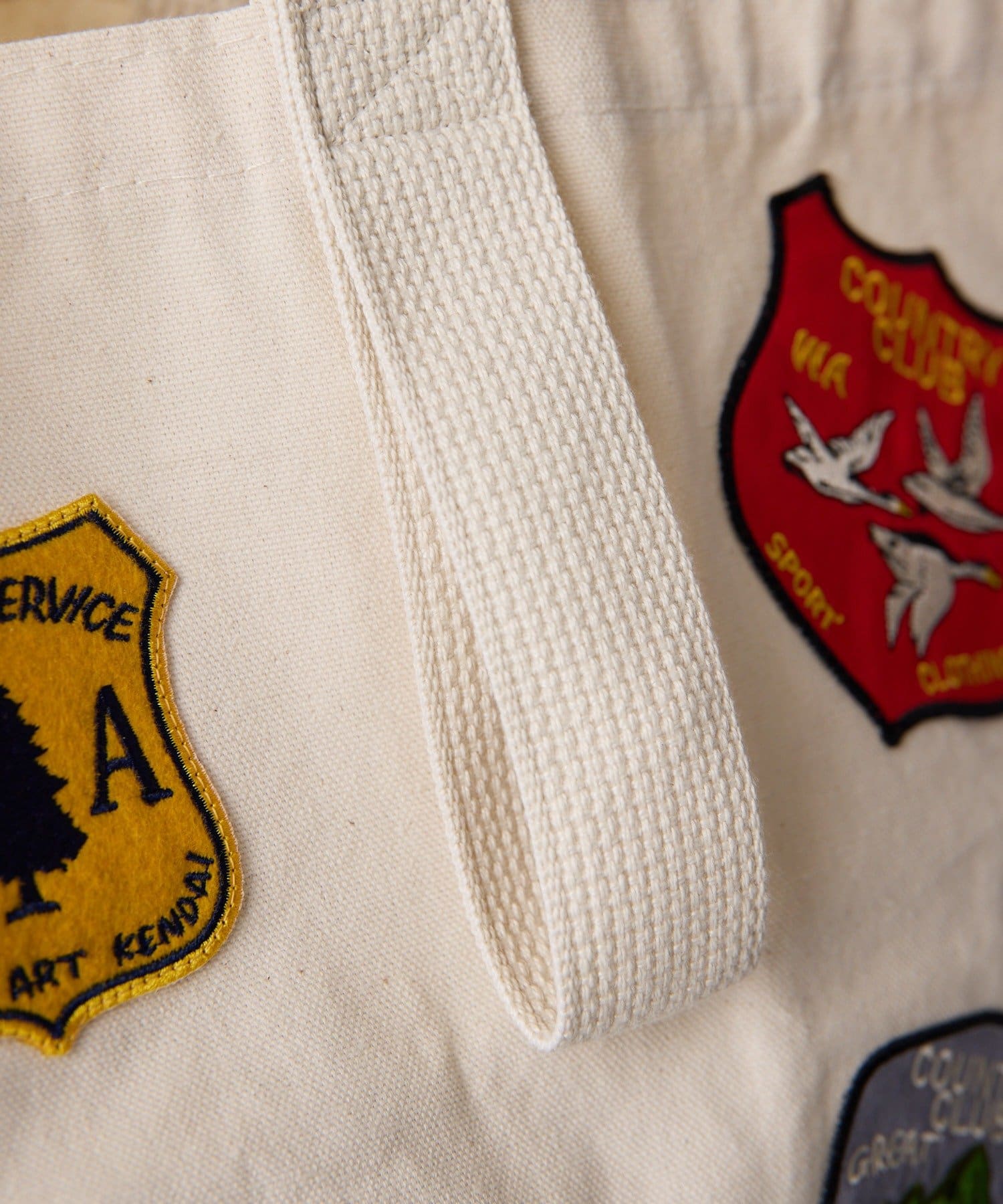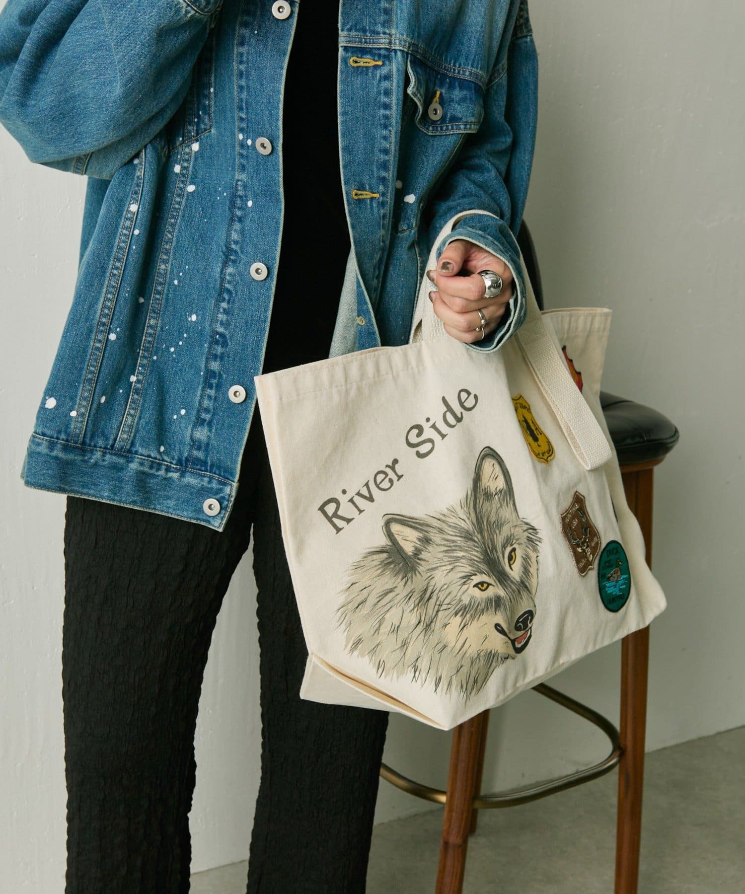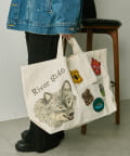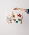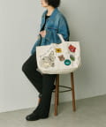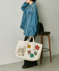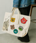 • アイボリー/ワッペン×プリントデザインがポイントのビッグサイズトート