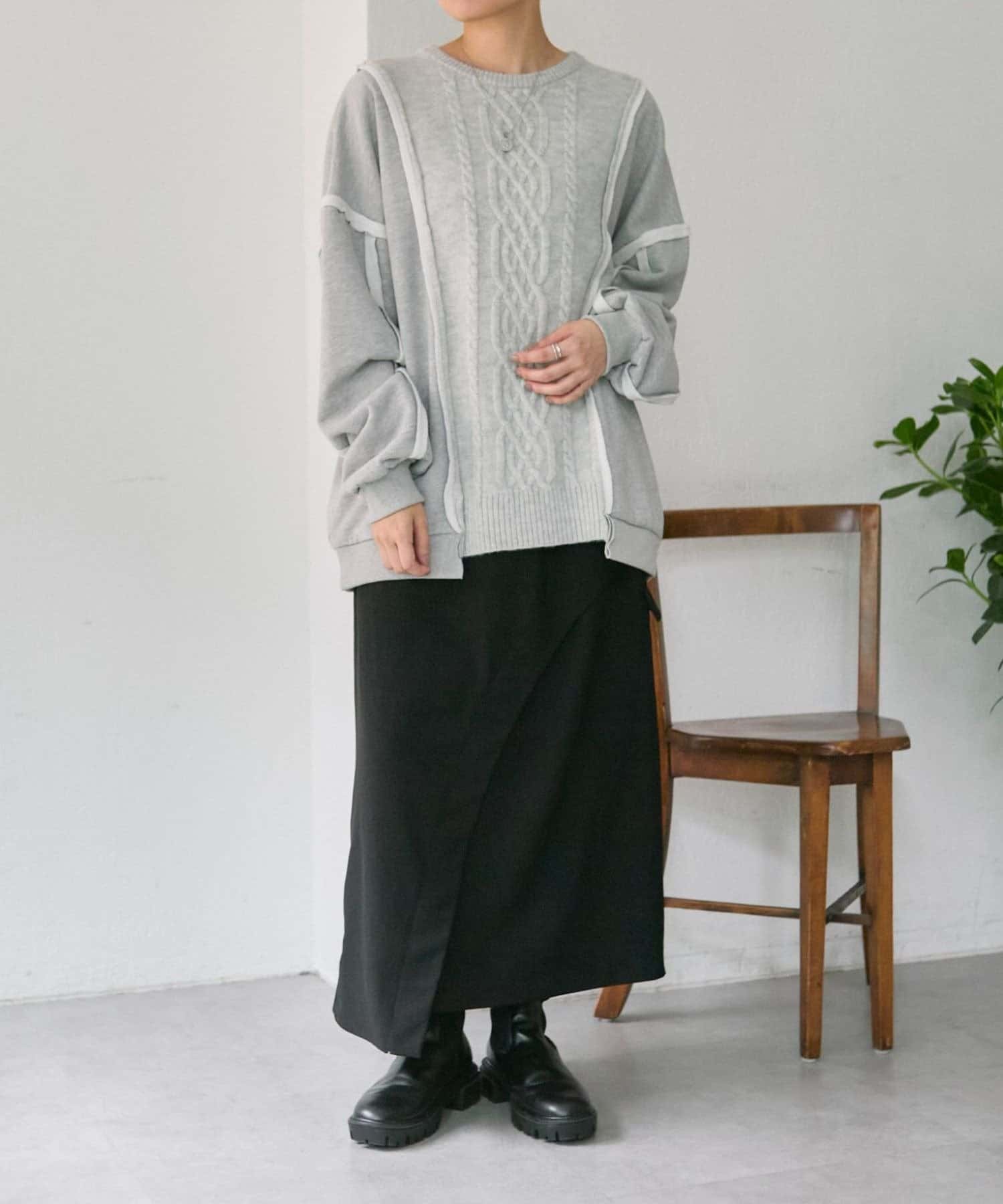 模様や絵柄のあるデザインスウェットやニットと合わせるのも◎