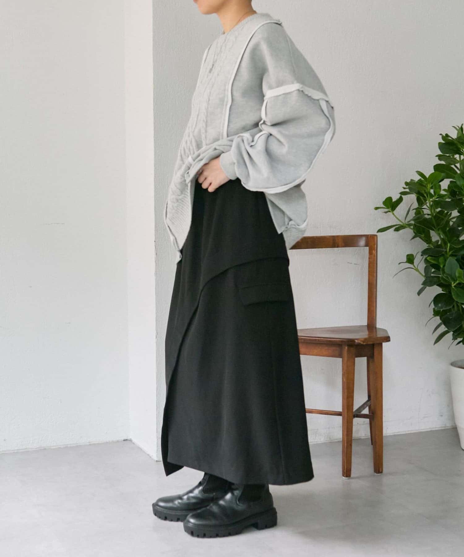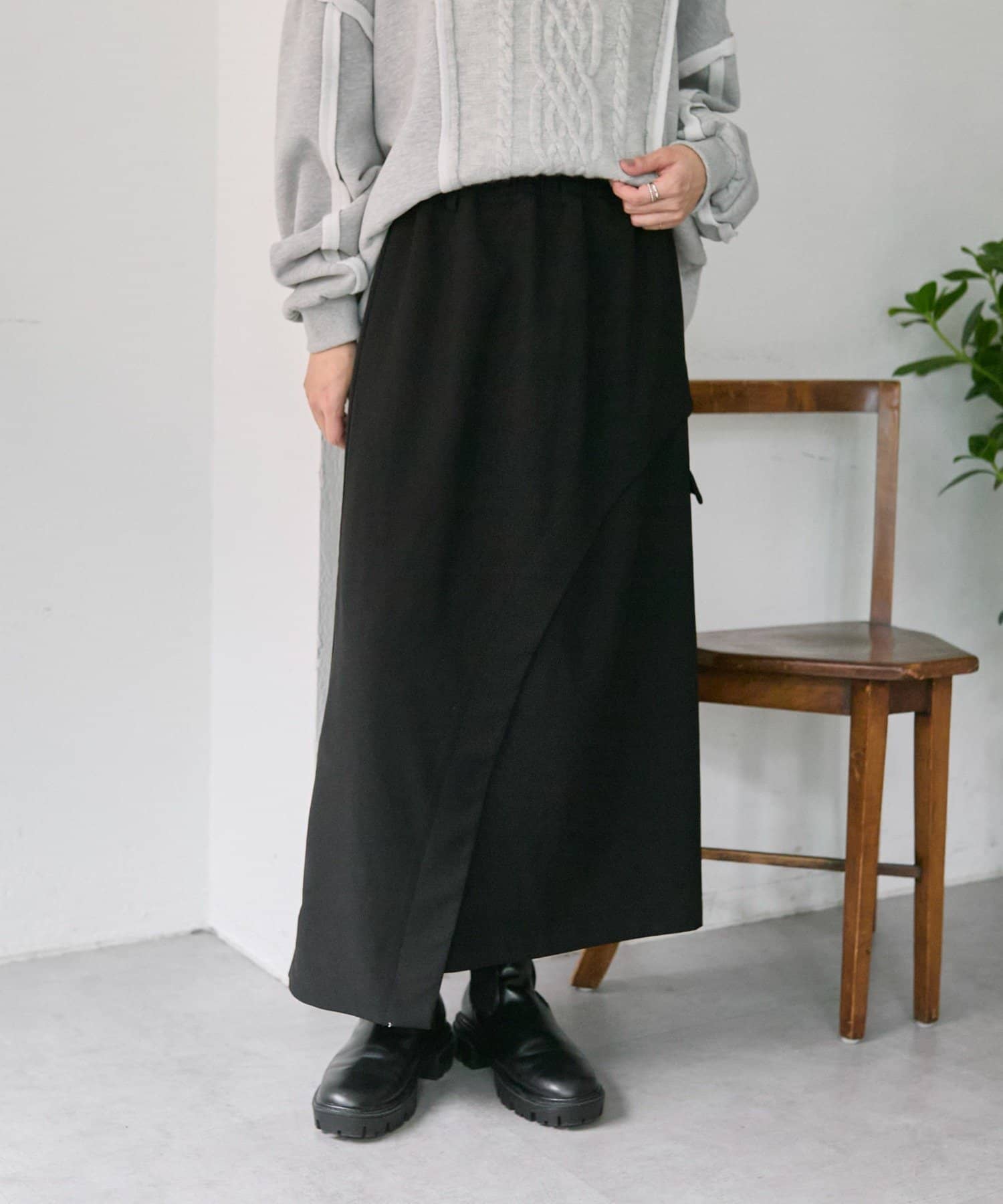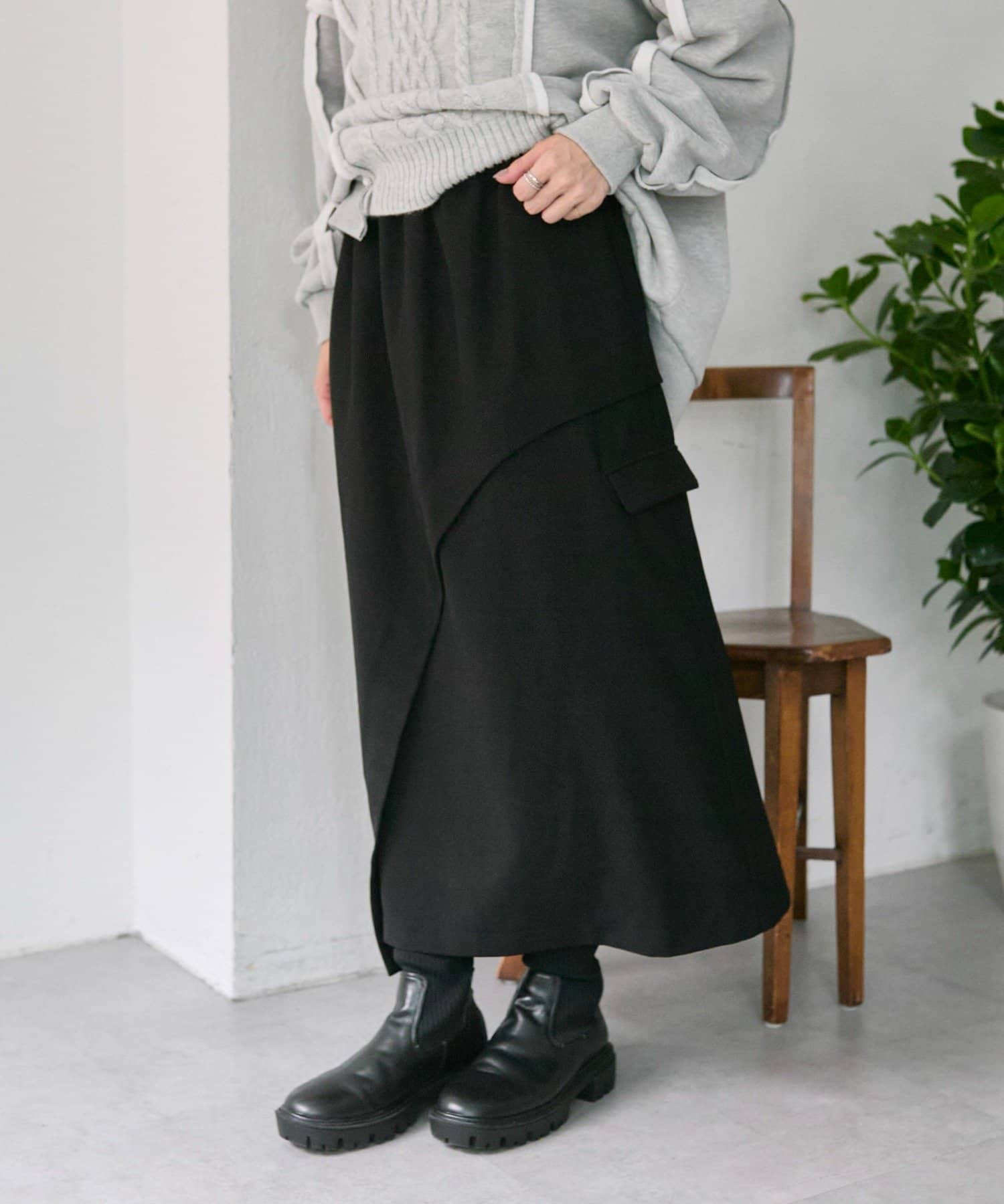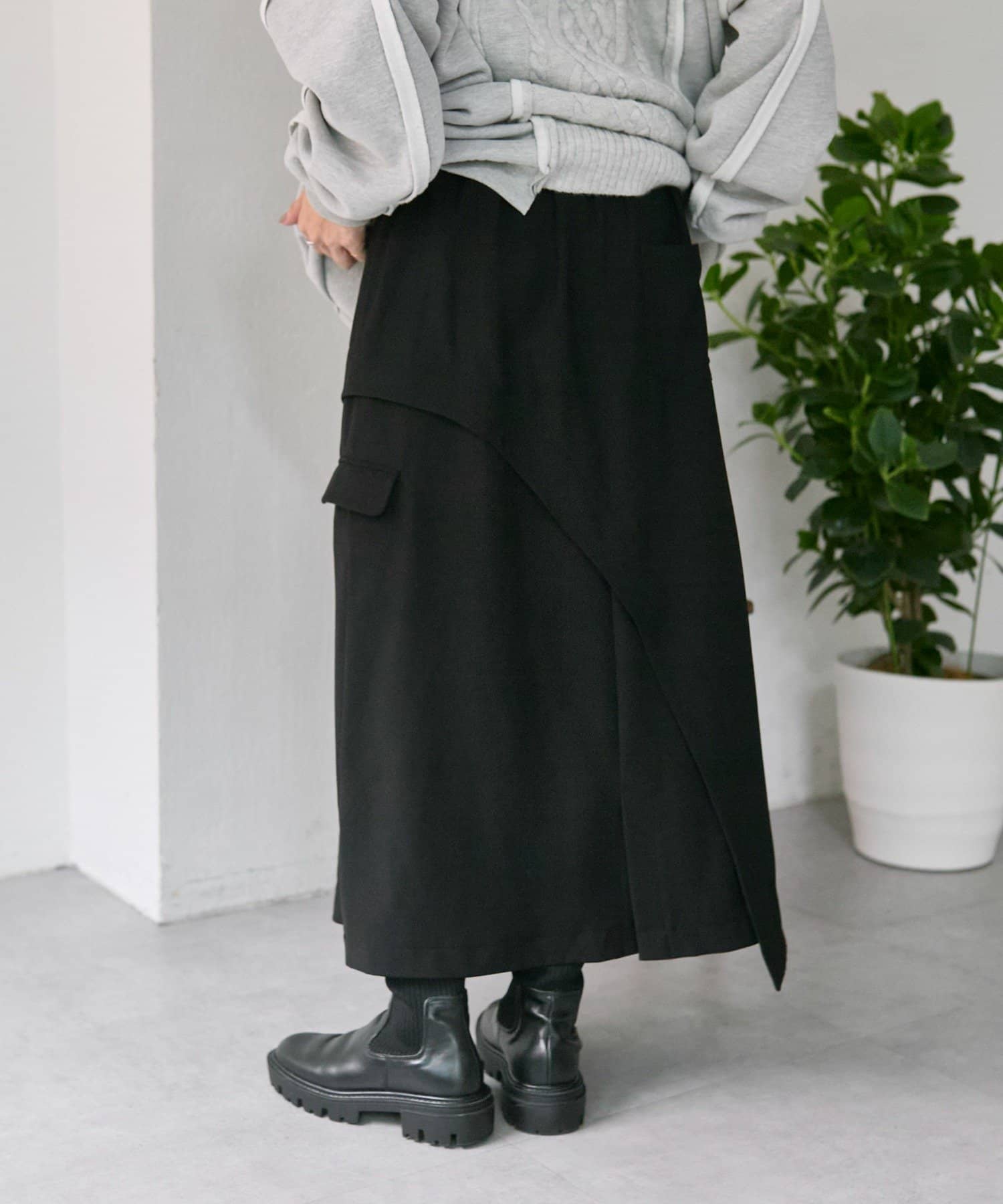 《ウエスト総ゴム/アシメデザイン》カーブラインスカート【SUM1 STYLE】