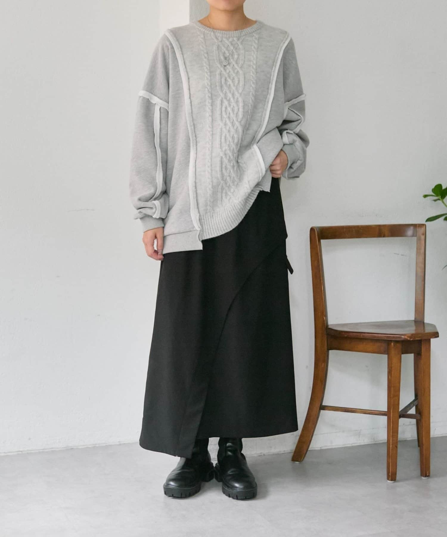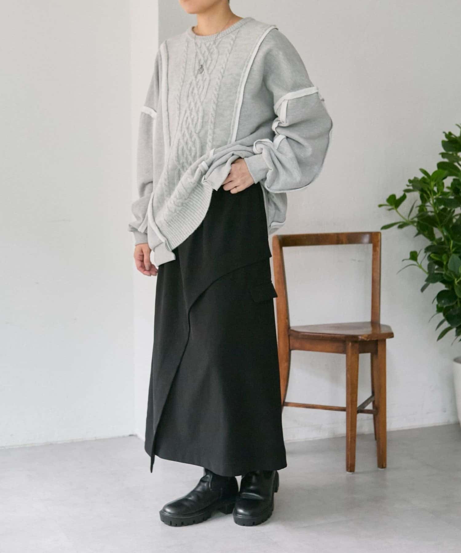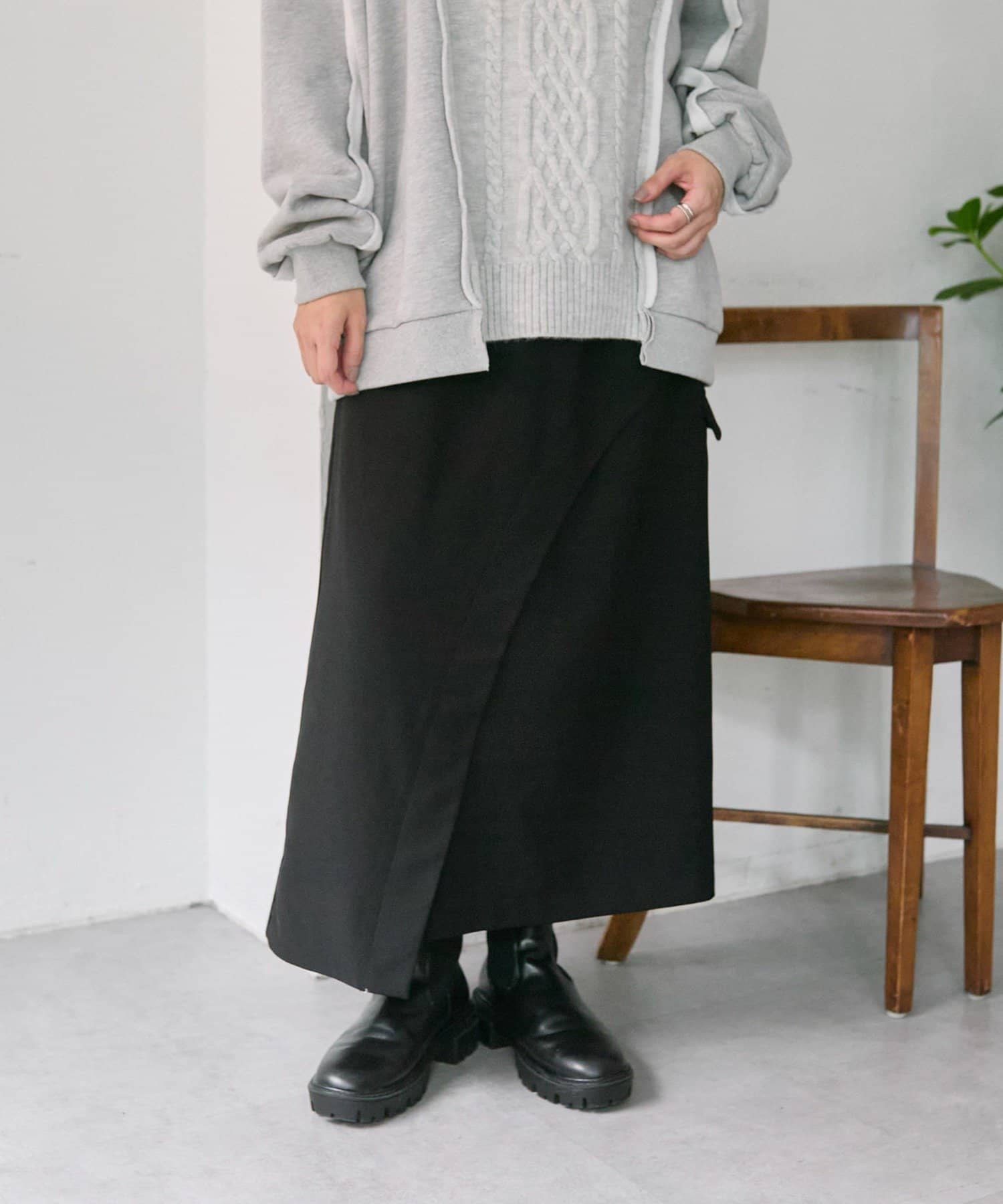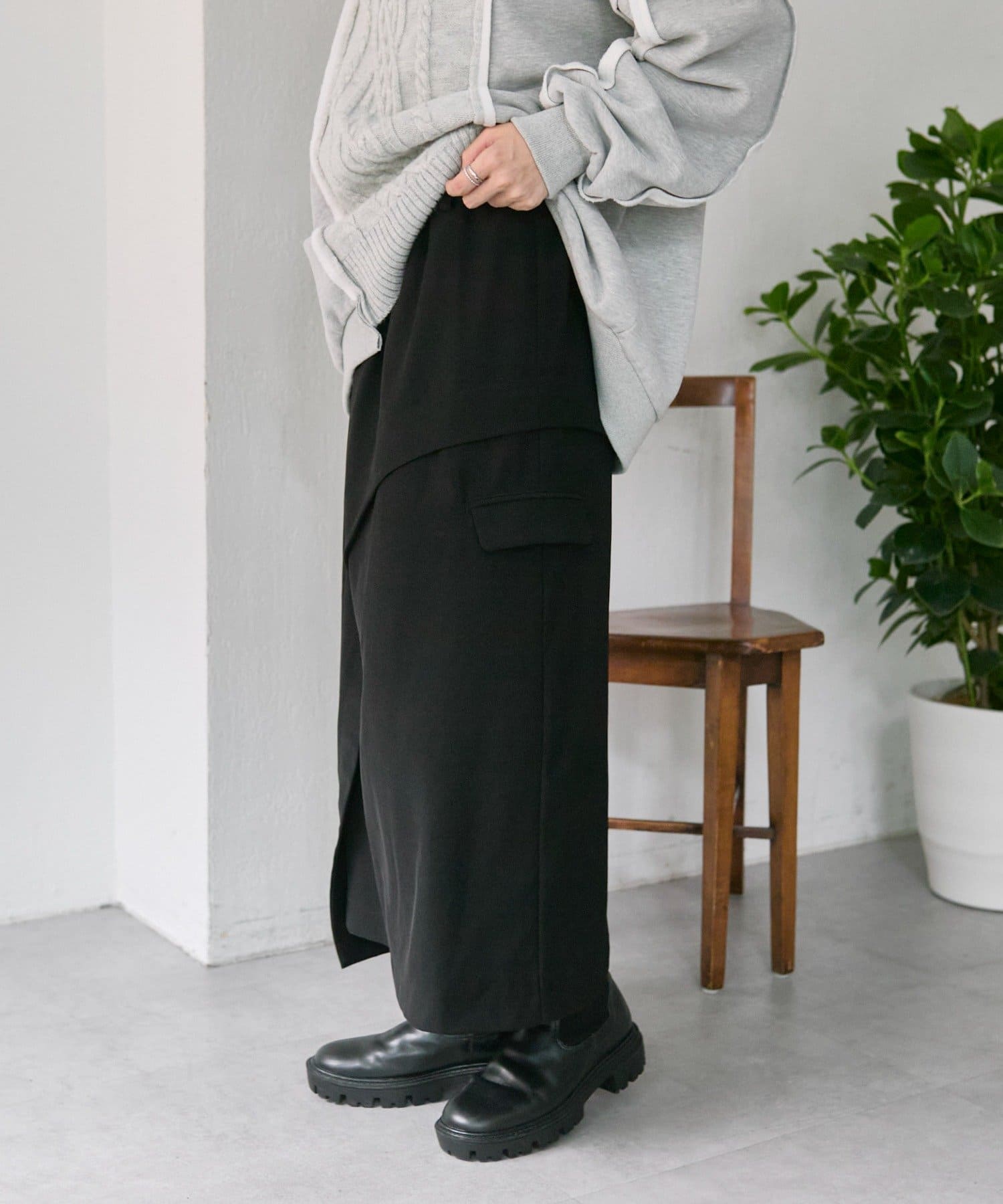 《ウエスト総ゴム/アシメデザイン》カーブラインスカート【SUM1 STYLE】