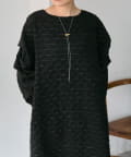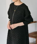 ・首元はベーシックなラウンドネックで、ネックレスやスカーフのアレンジも楽しめる。