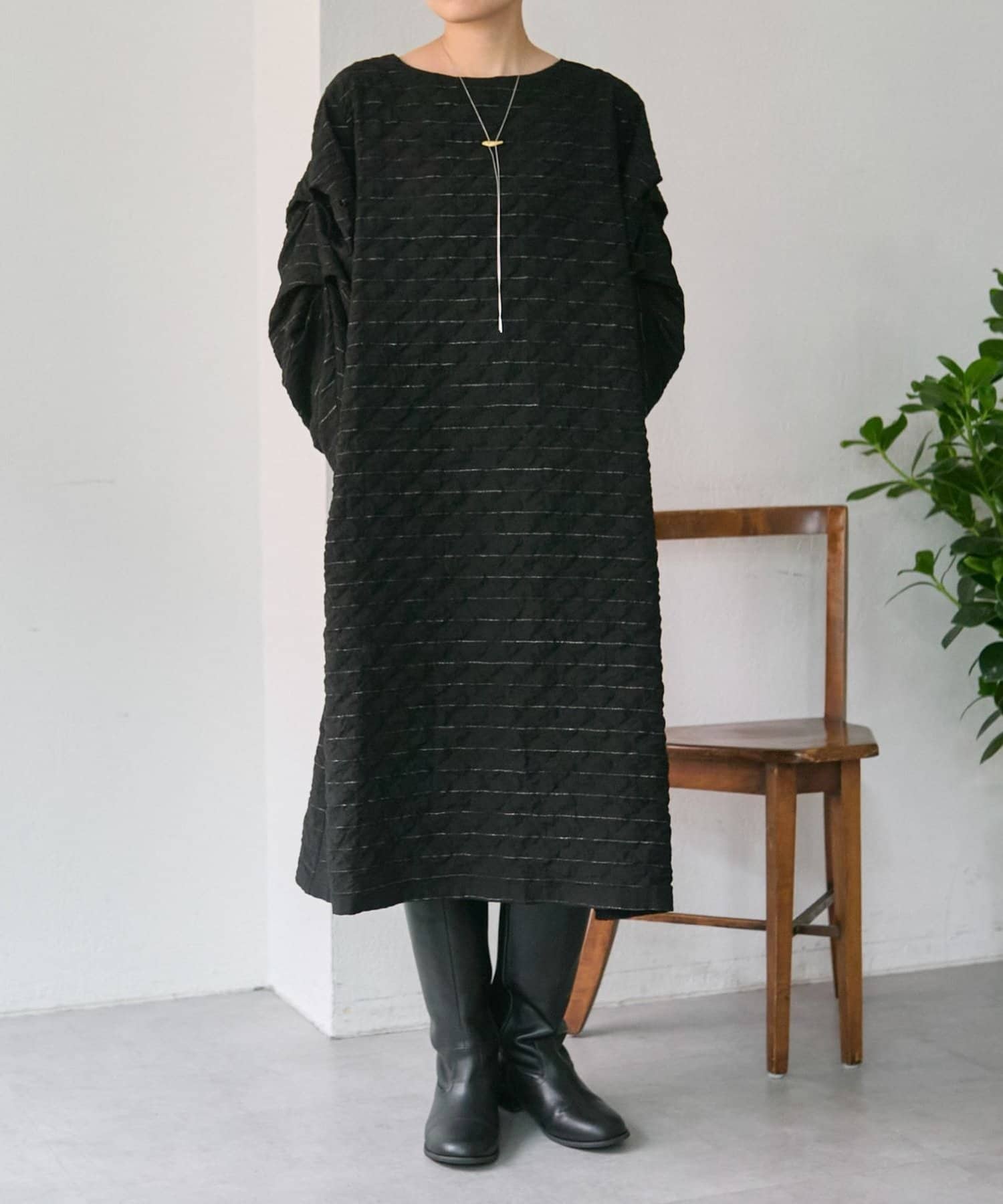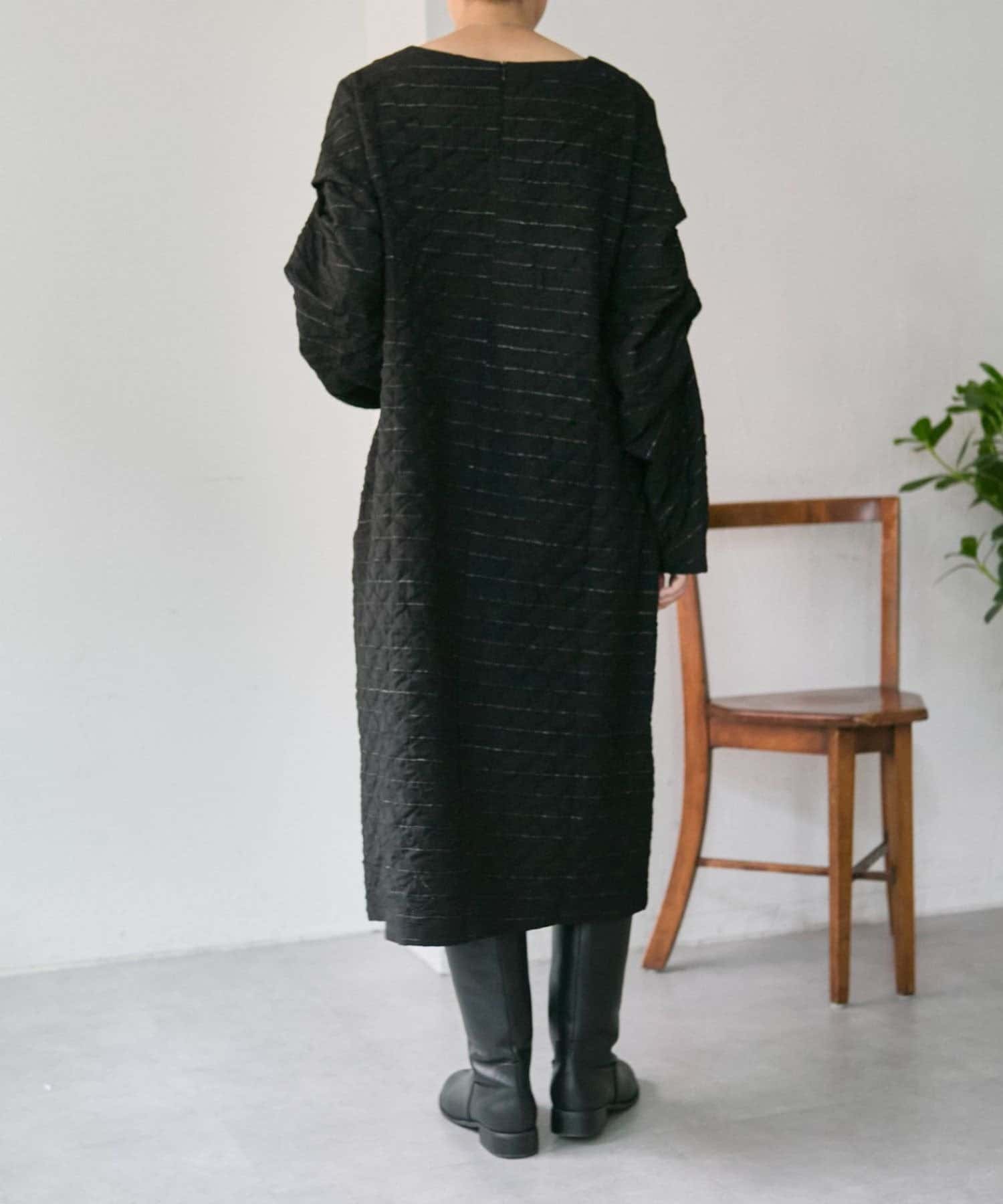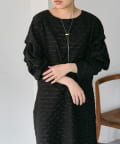 ・袖にタックを寄せて生まれる柔らかなドレープが、上品な華やかさを演出。