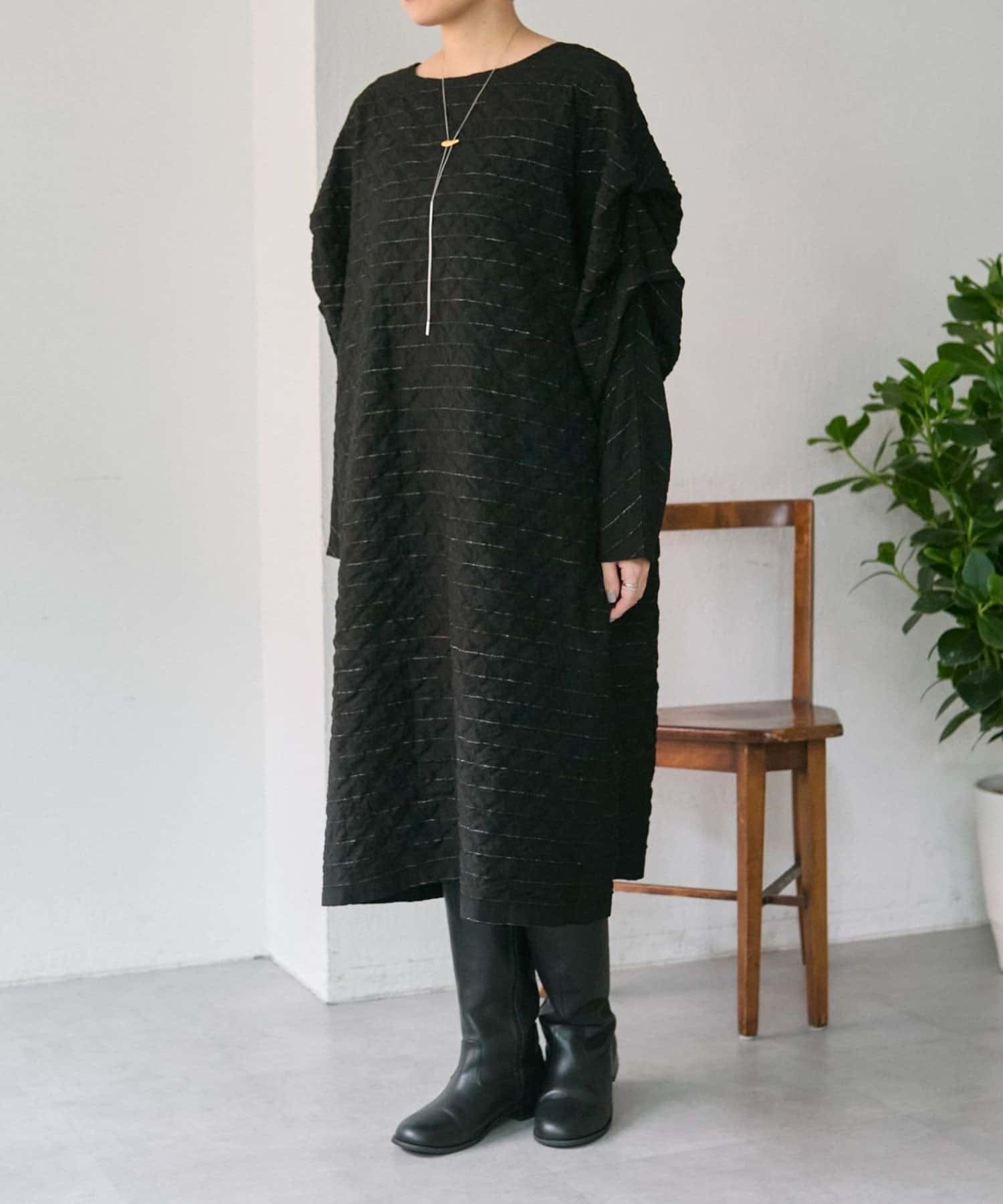 《オケージョン/ストライプ》長袖タックワンピース【SUM1 STYLE】