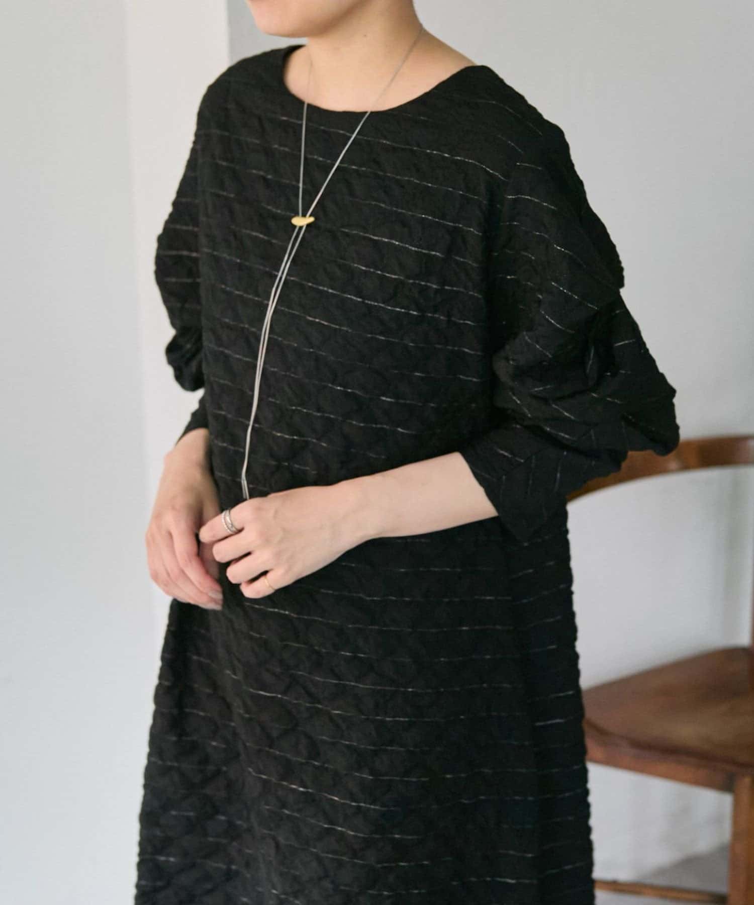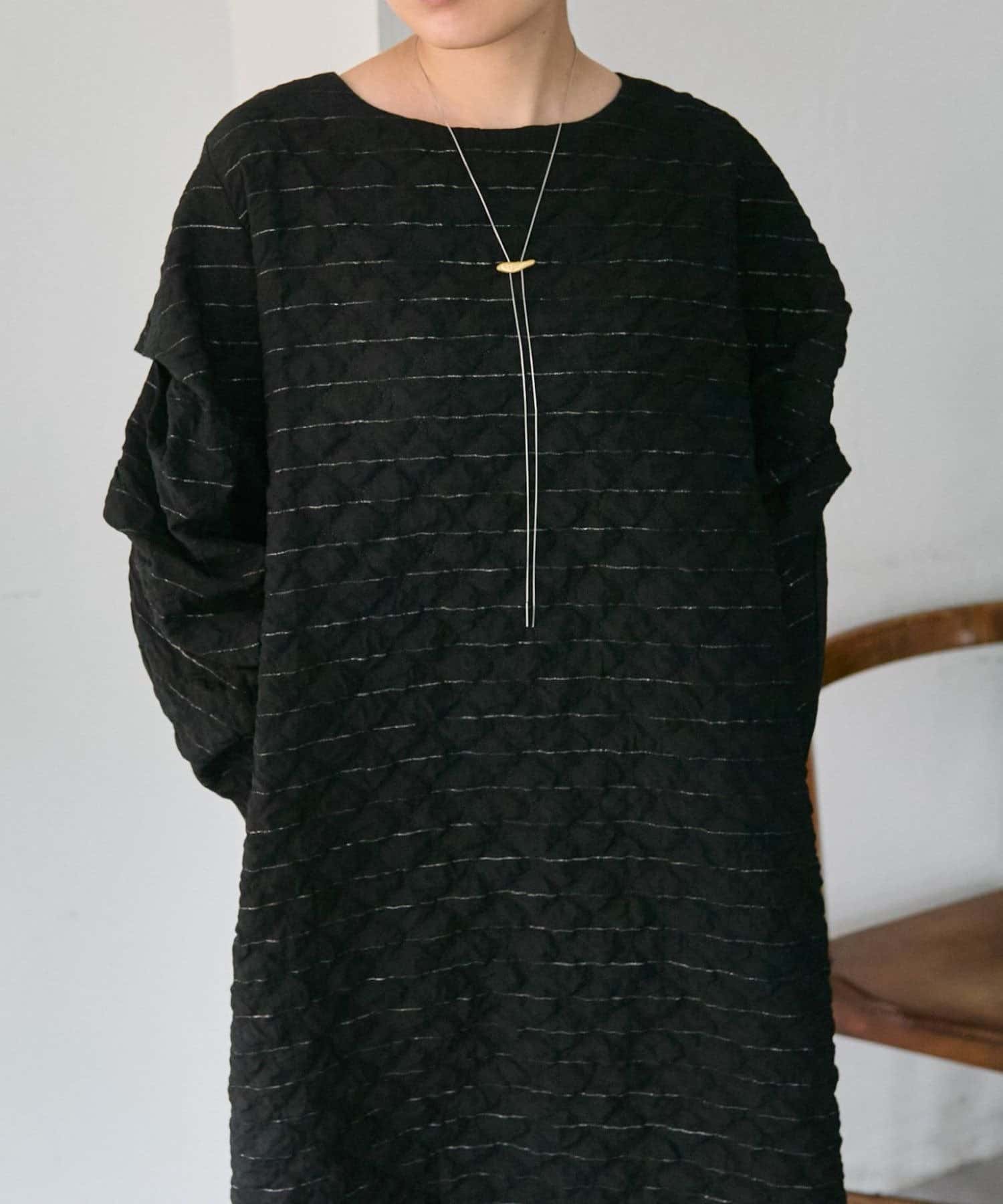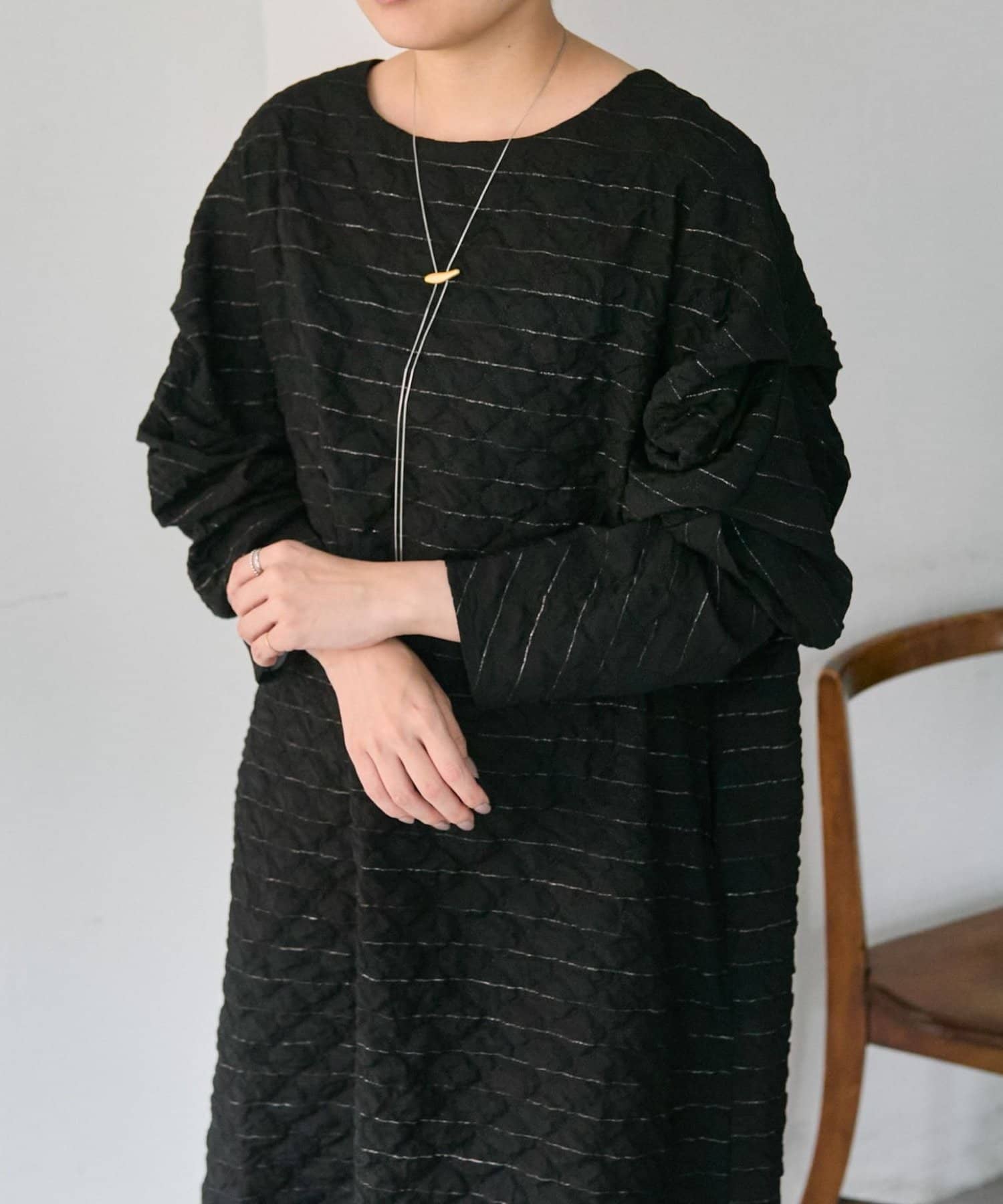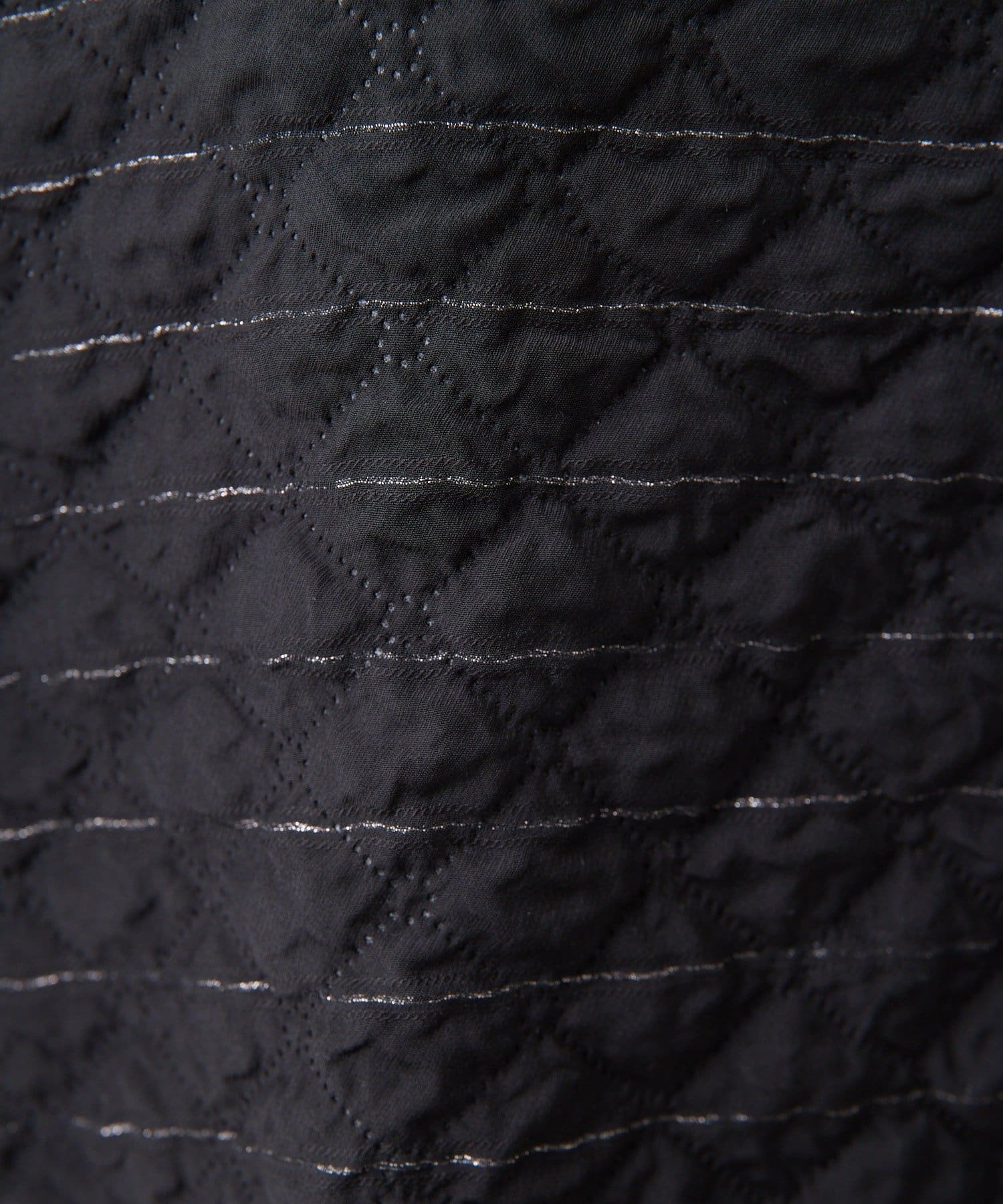 ・凹凸感のある生地に、ラメシルバーの横ラインが繊細に輝く上品な素材。