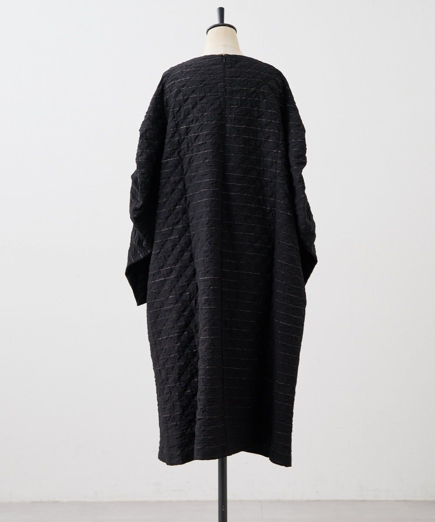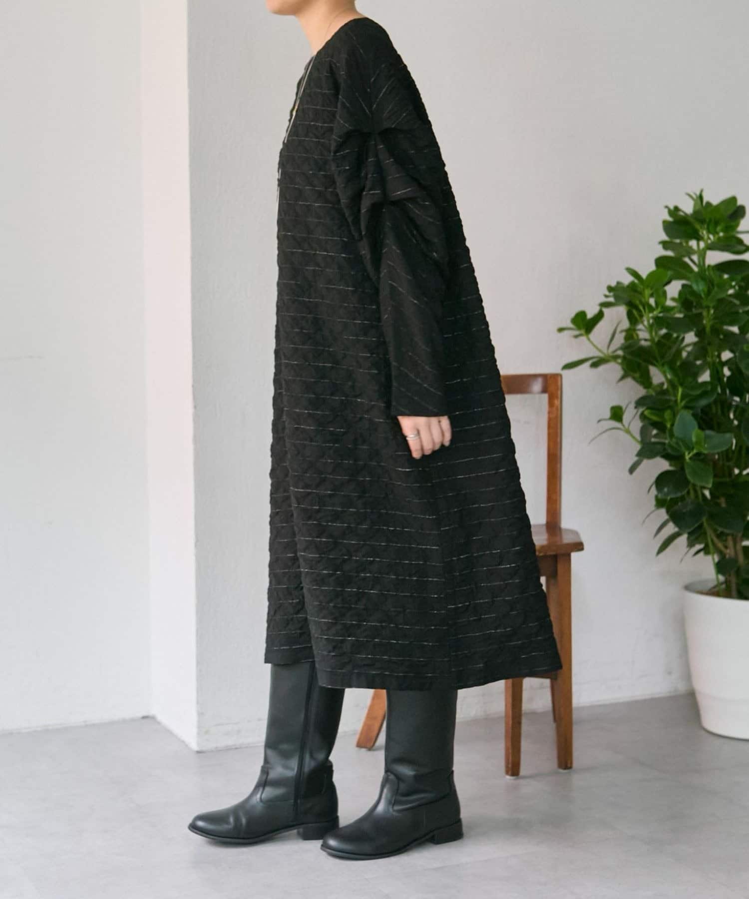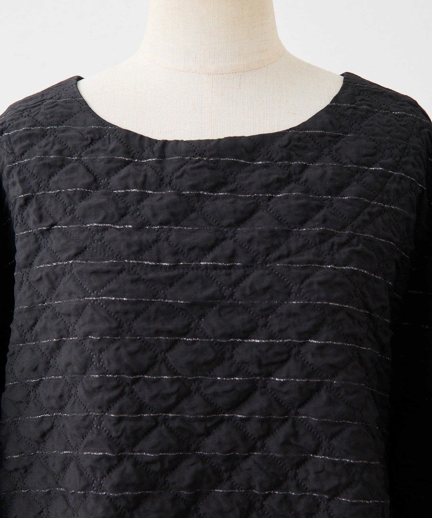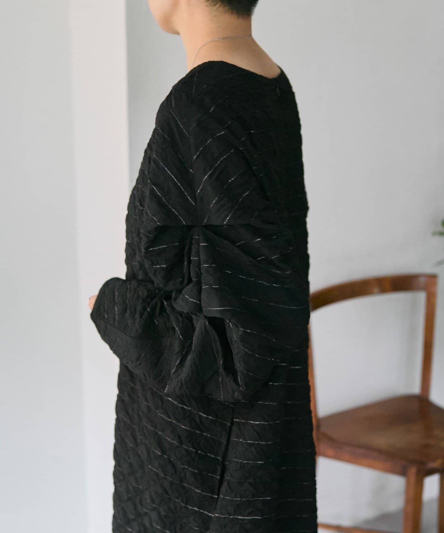 ・凹凸感のある生地に、ラメシルバーの横ラインが繊細に輝く上品な素材。