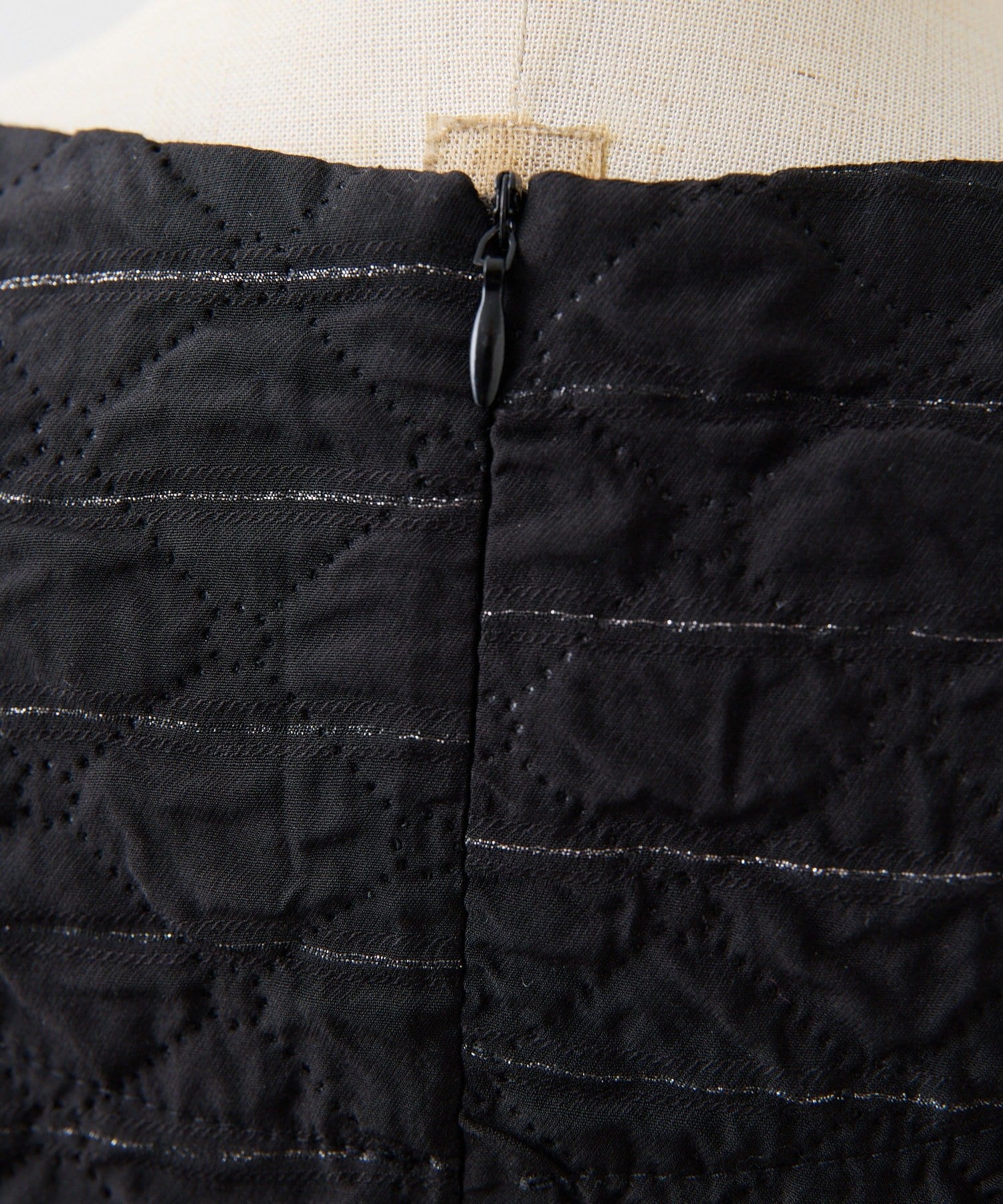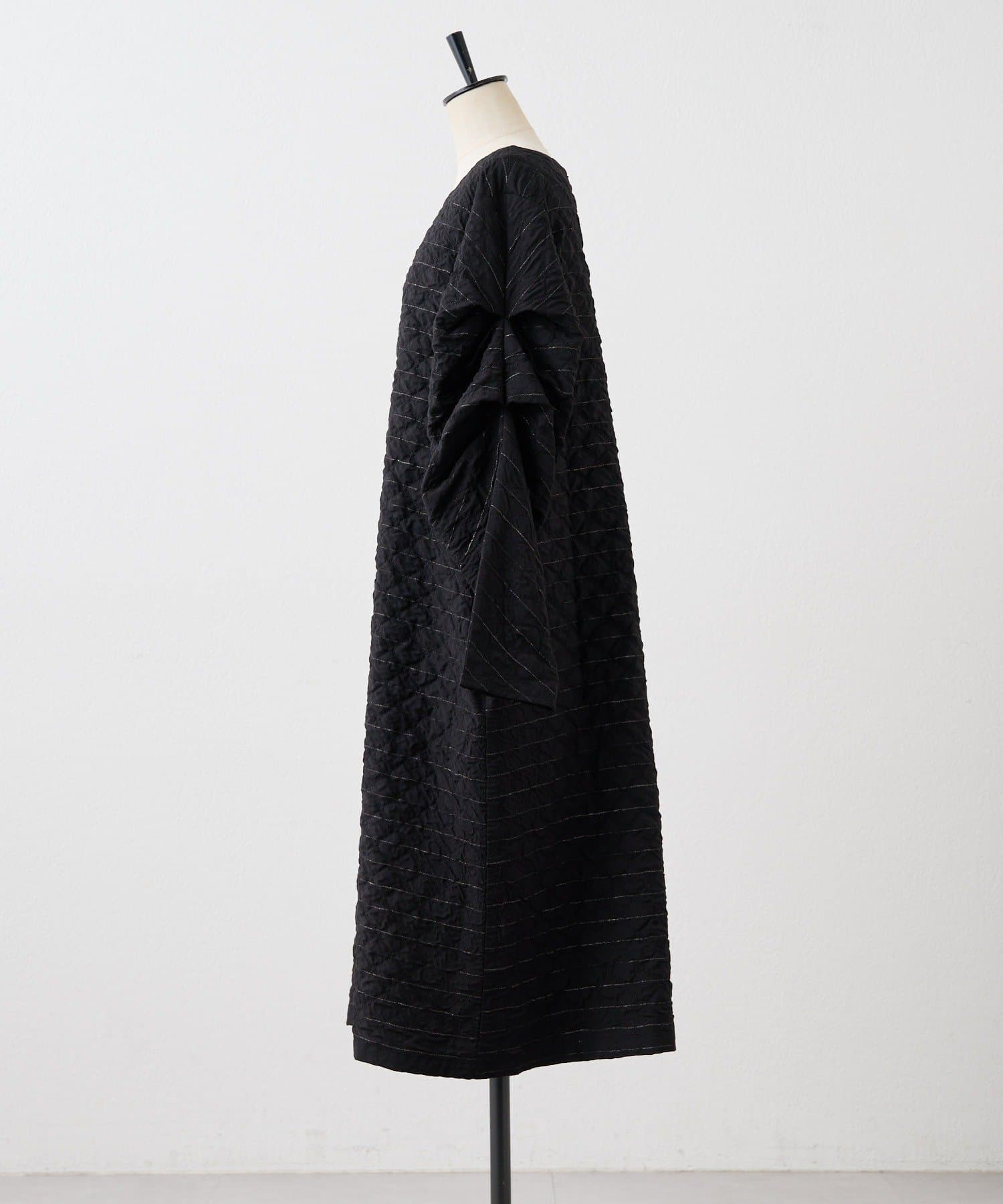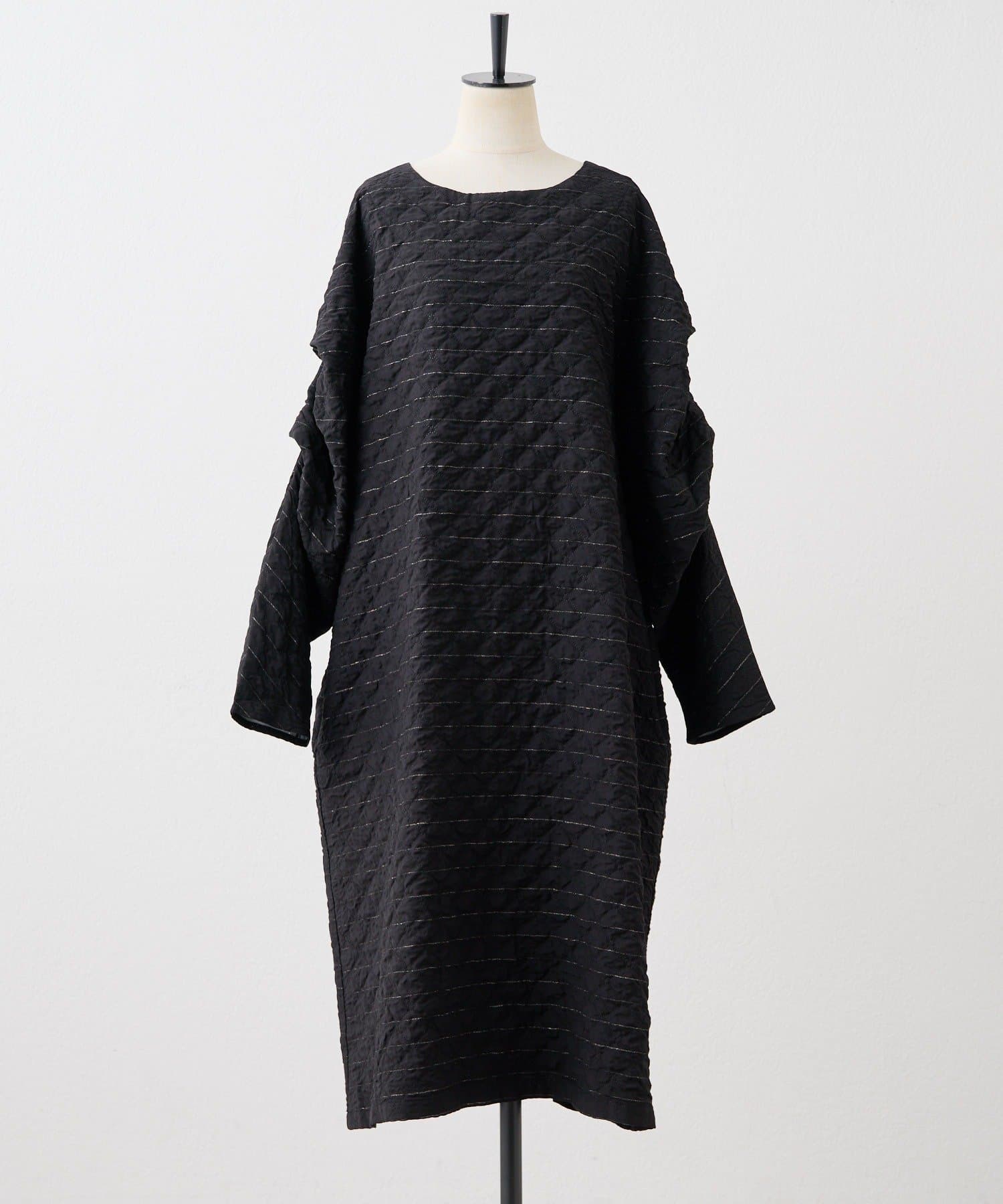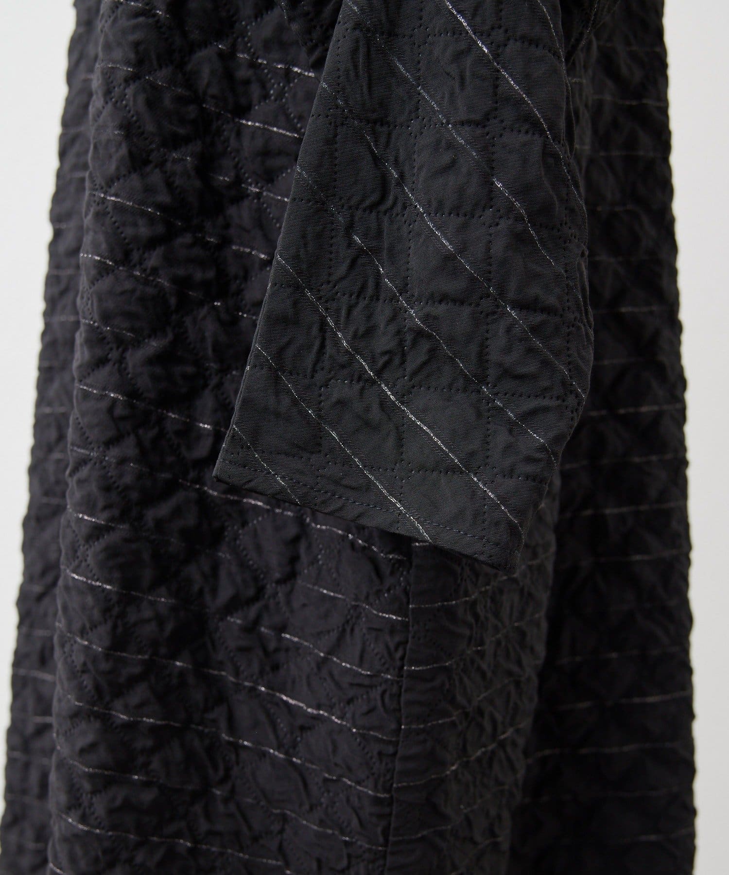 ・凹凸感のある生地に、ラメシルバーの横ラインが繊細に輝く上品な素材。