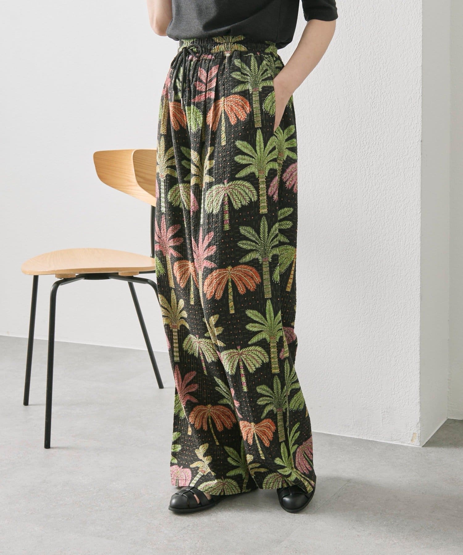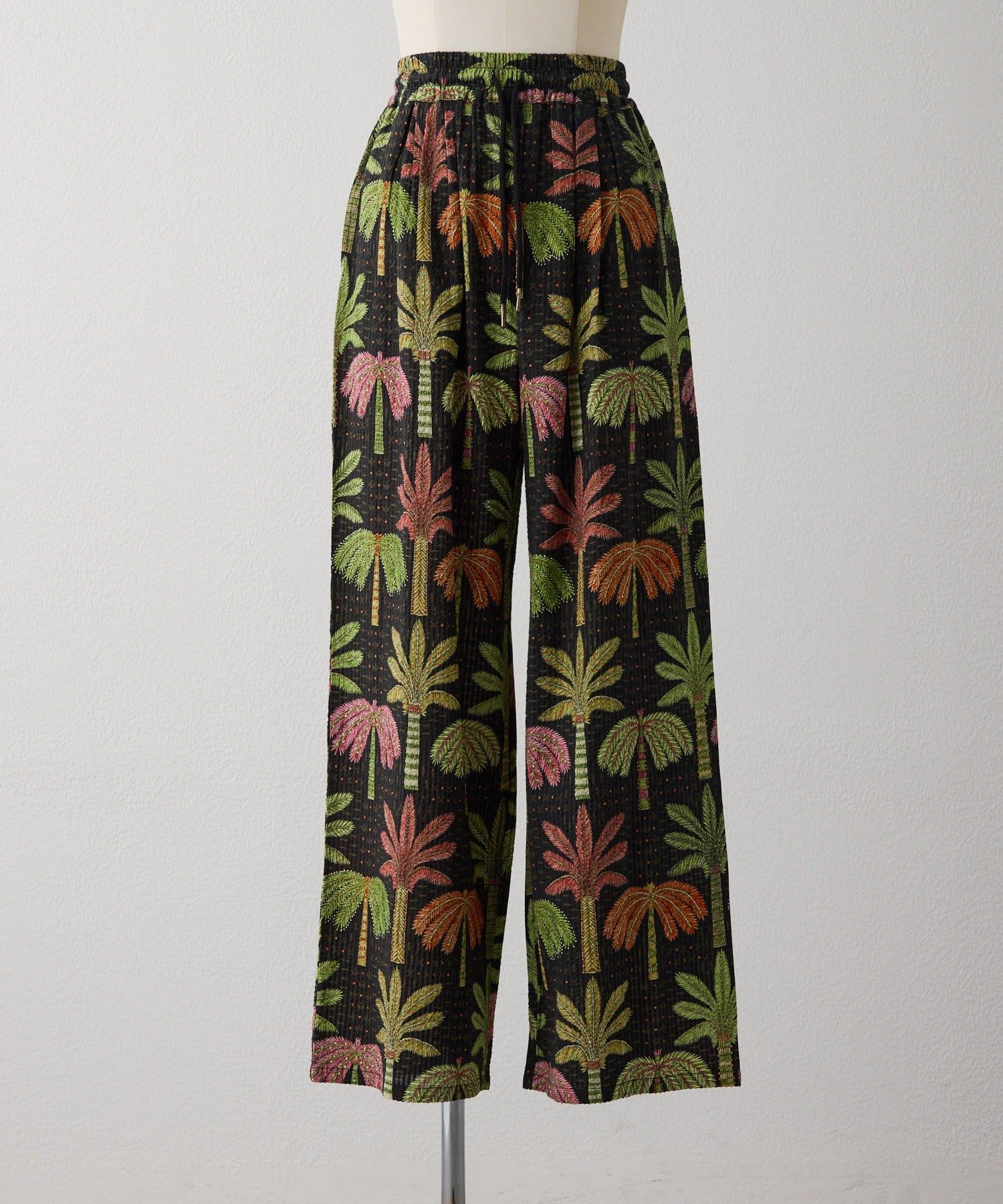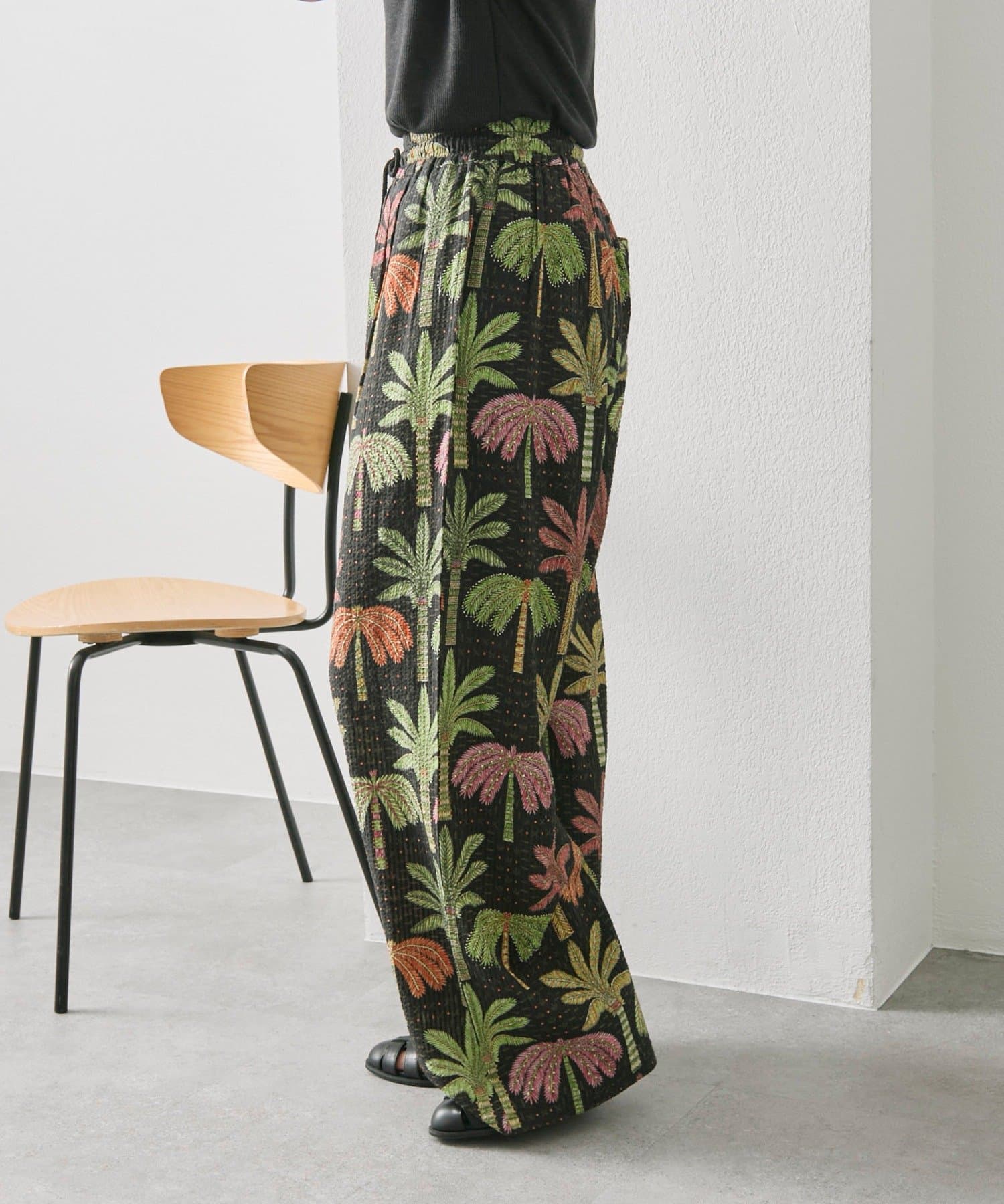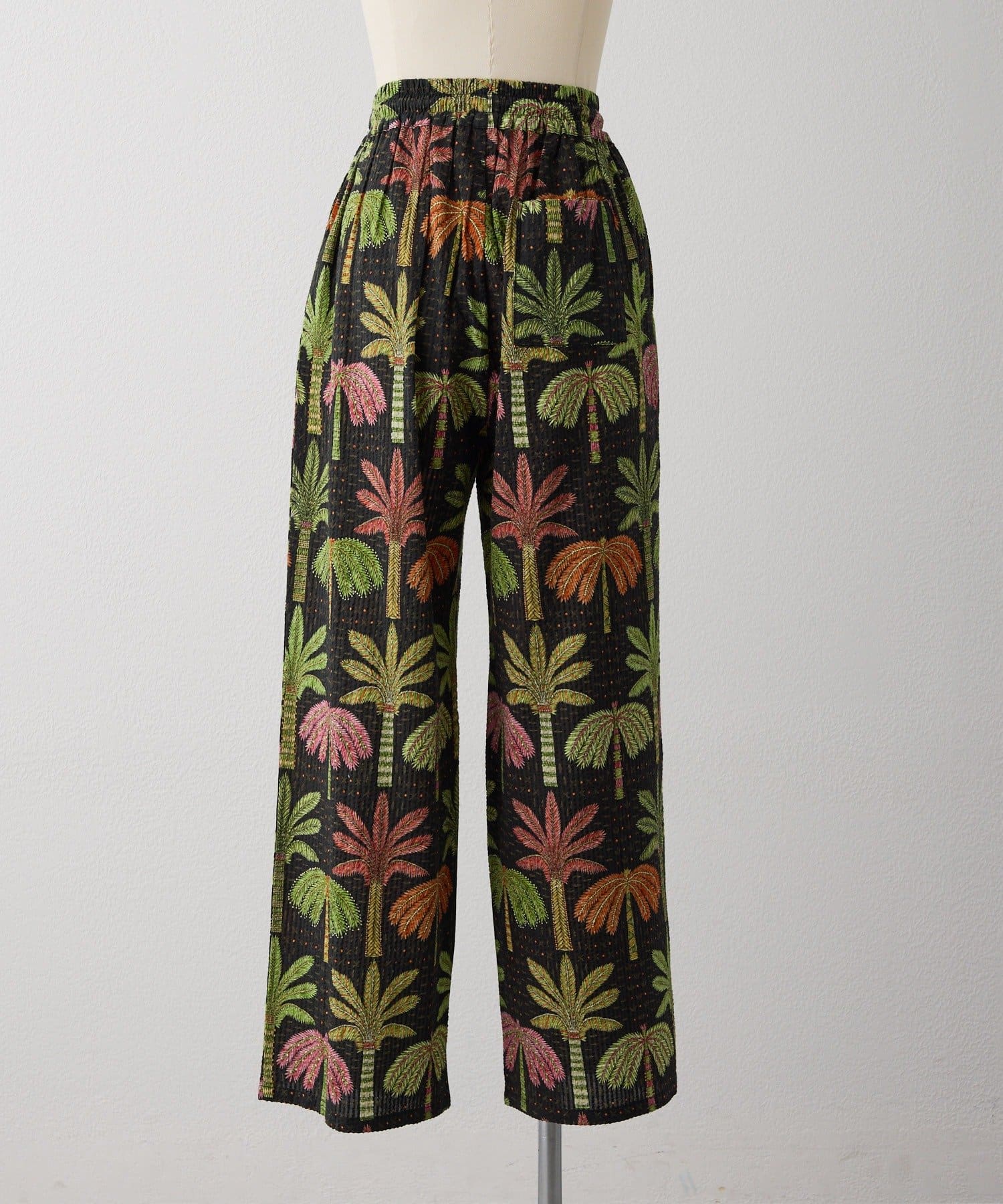 sampo×ear ヤシ柄パンツ 《サッカー生地/通気性◎/ボタニカル柄/ウエスト総ゴム》