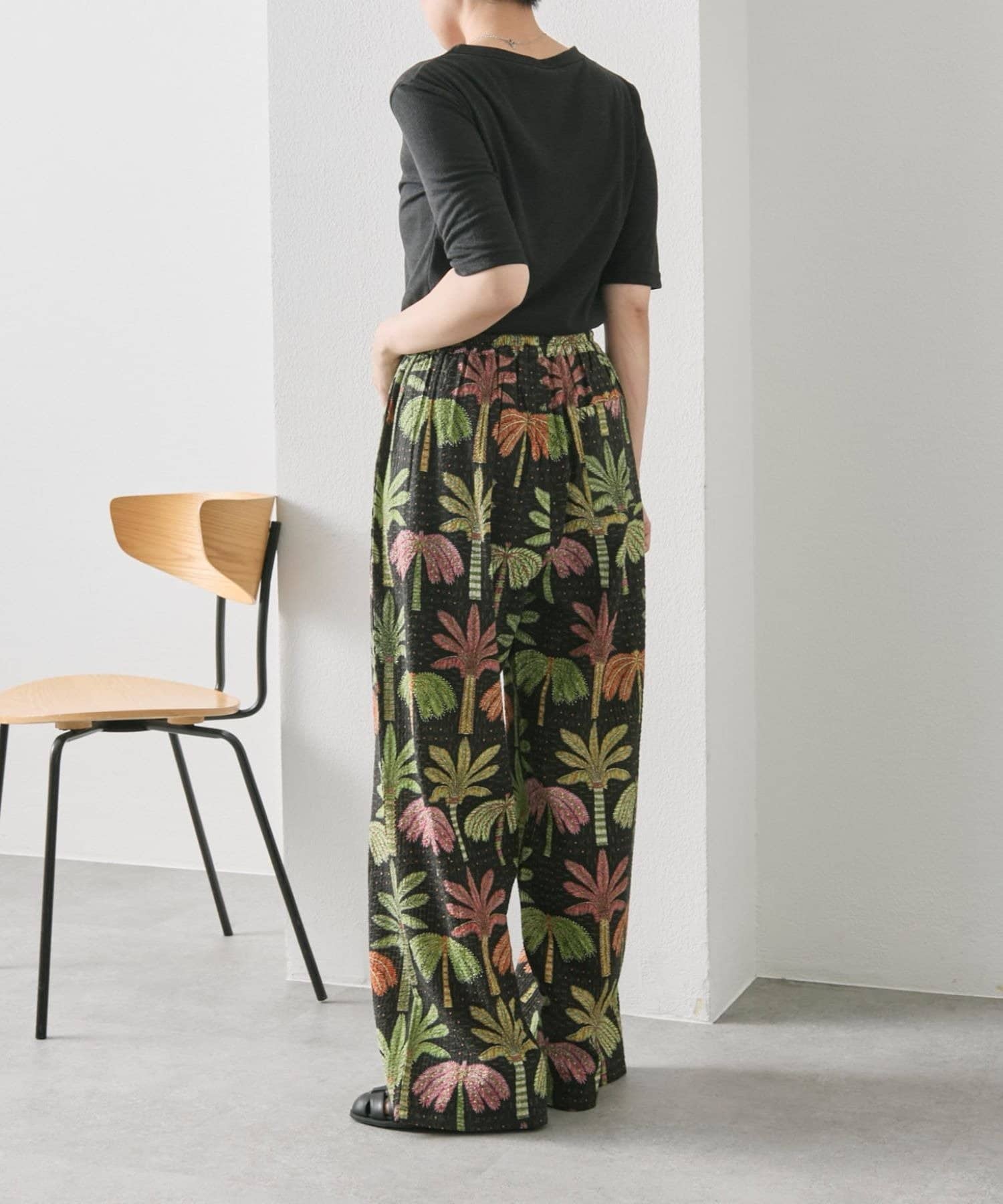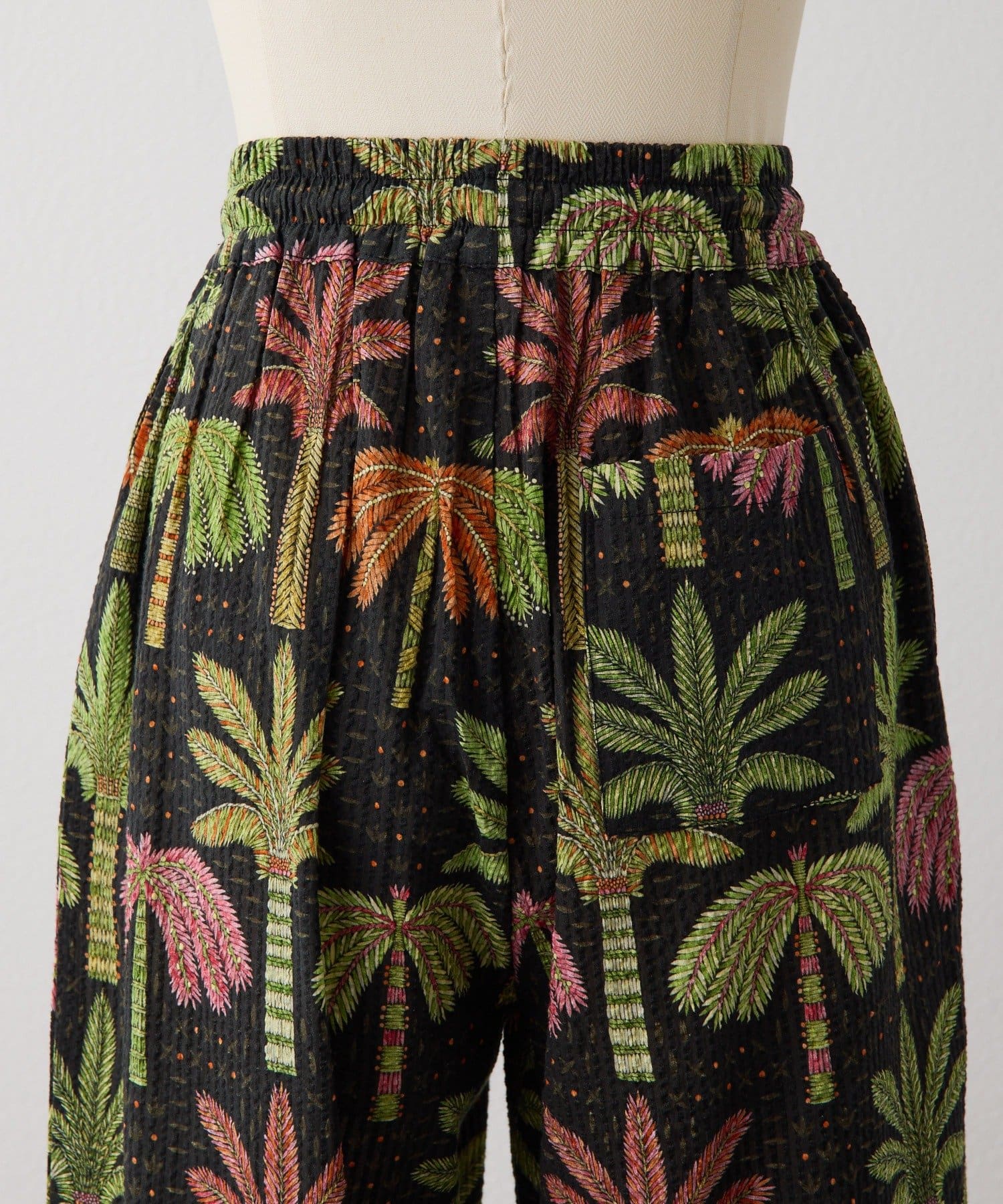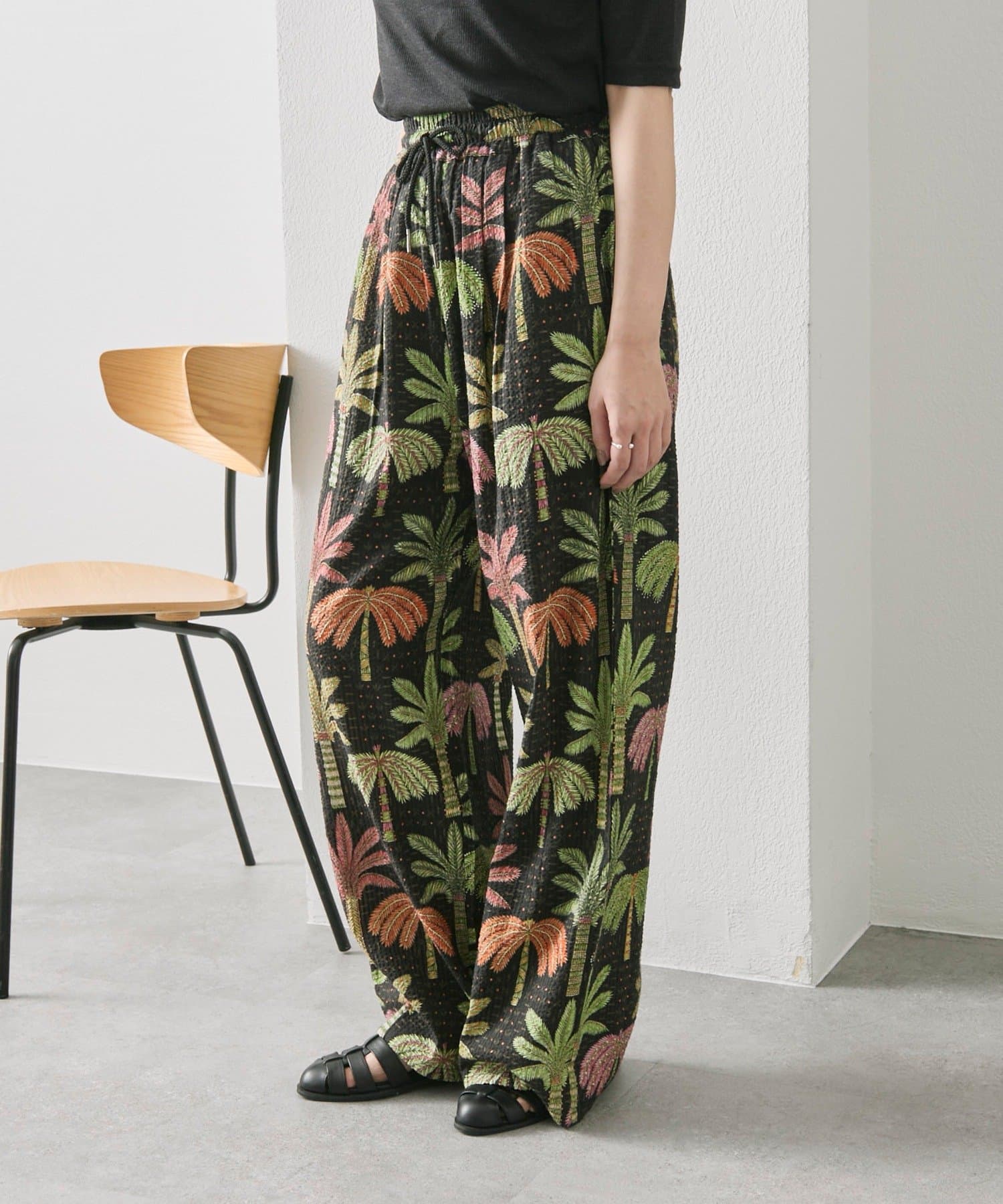 sampo×ear ヤシ柄パンツ 《サッカー生地/通気性◎/ボタニカル柄/ウエスト総ゴム》