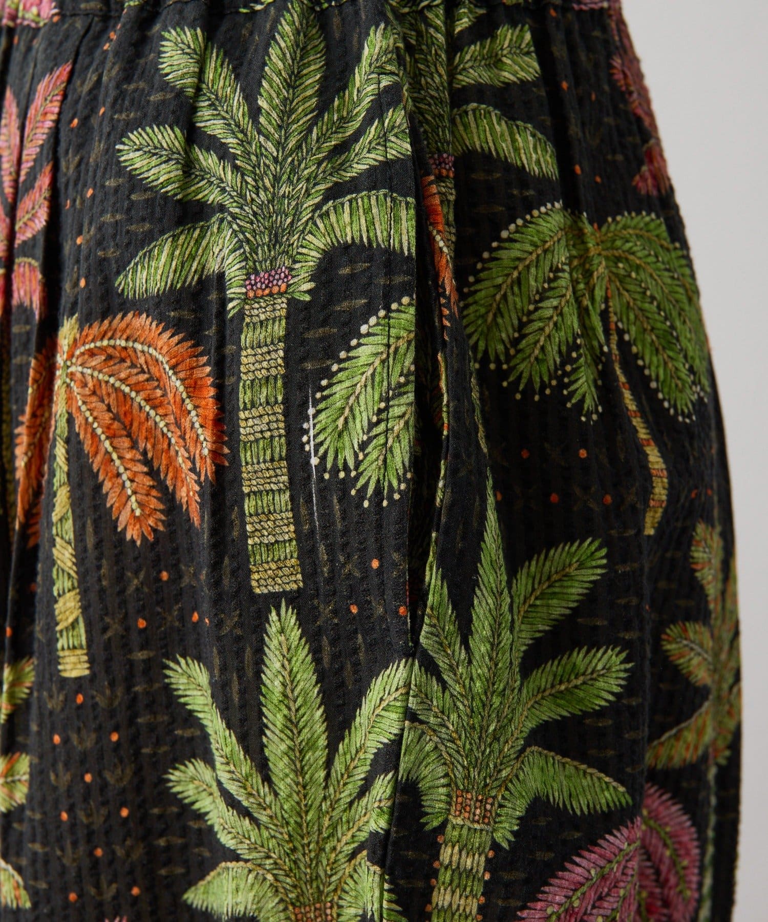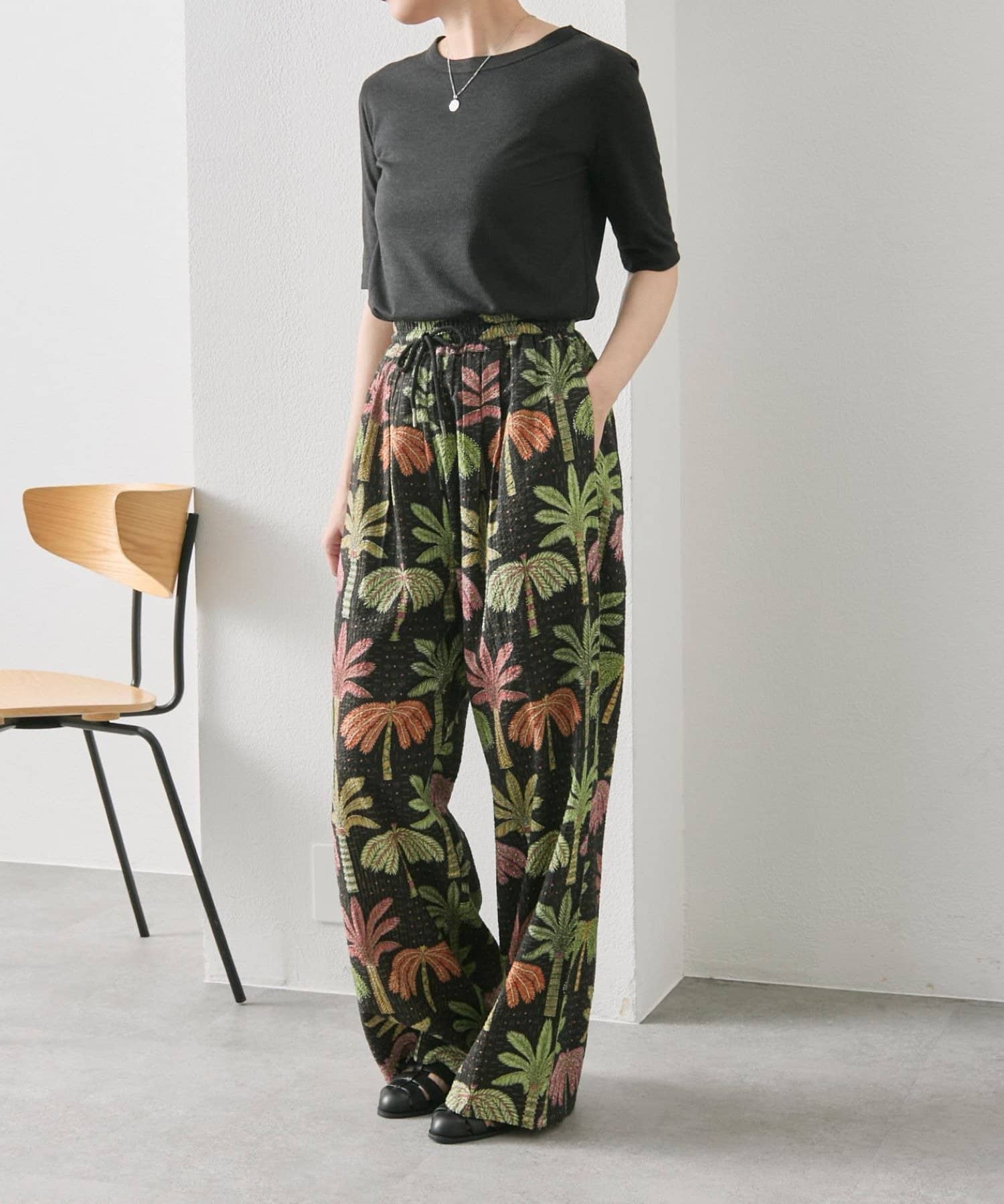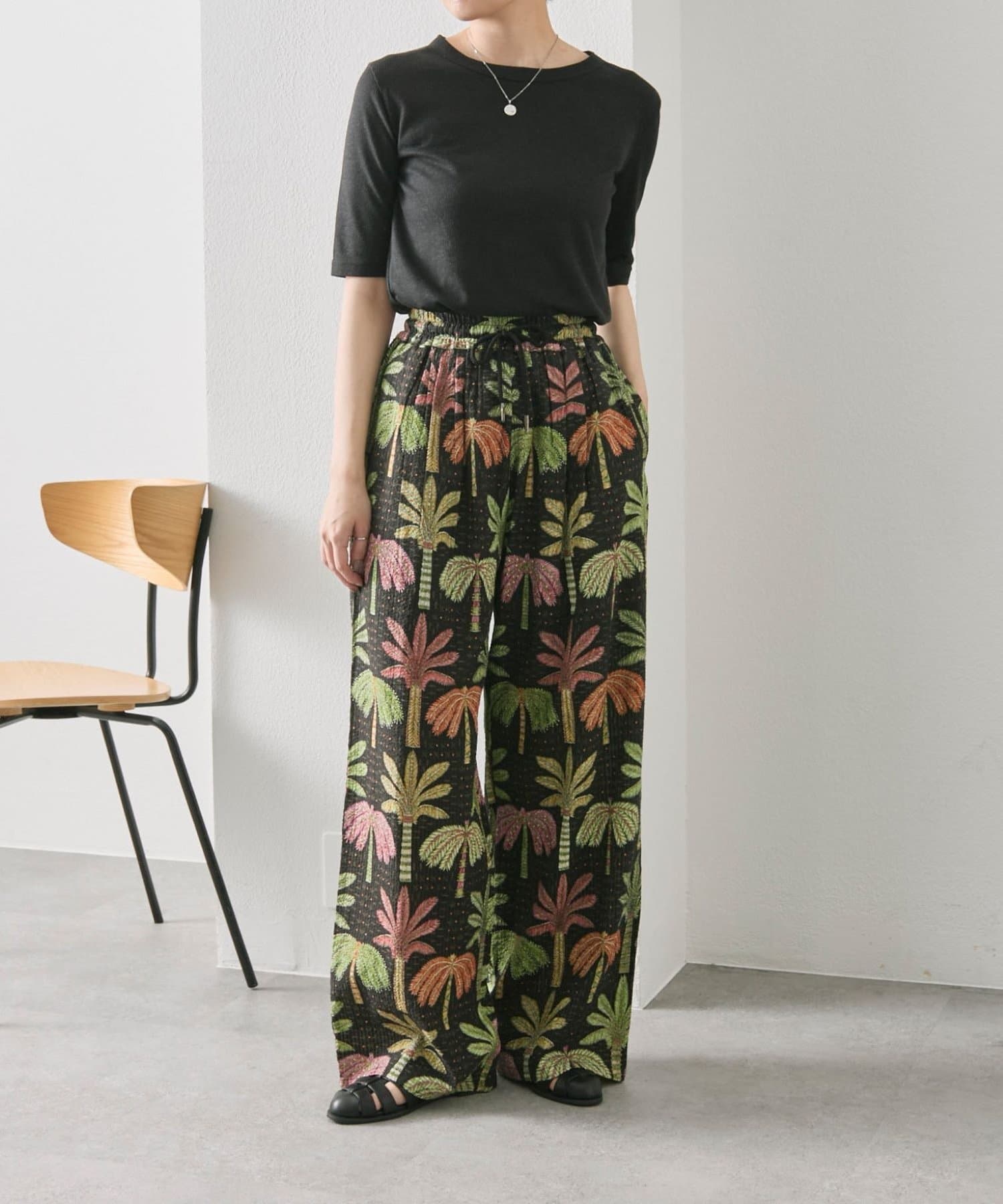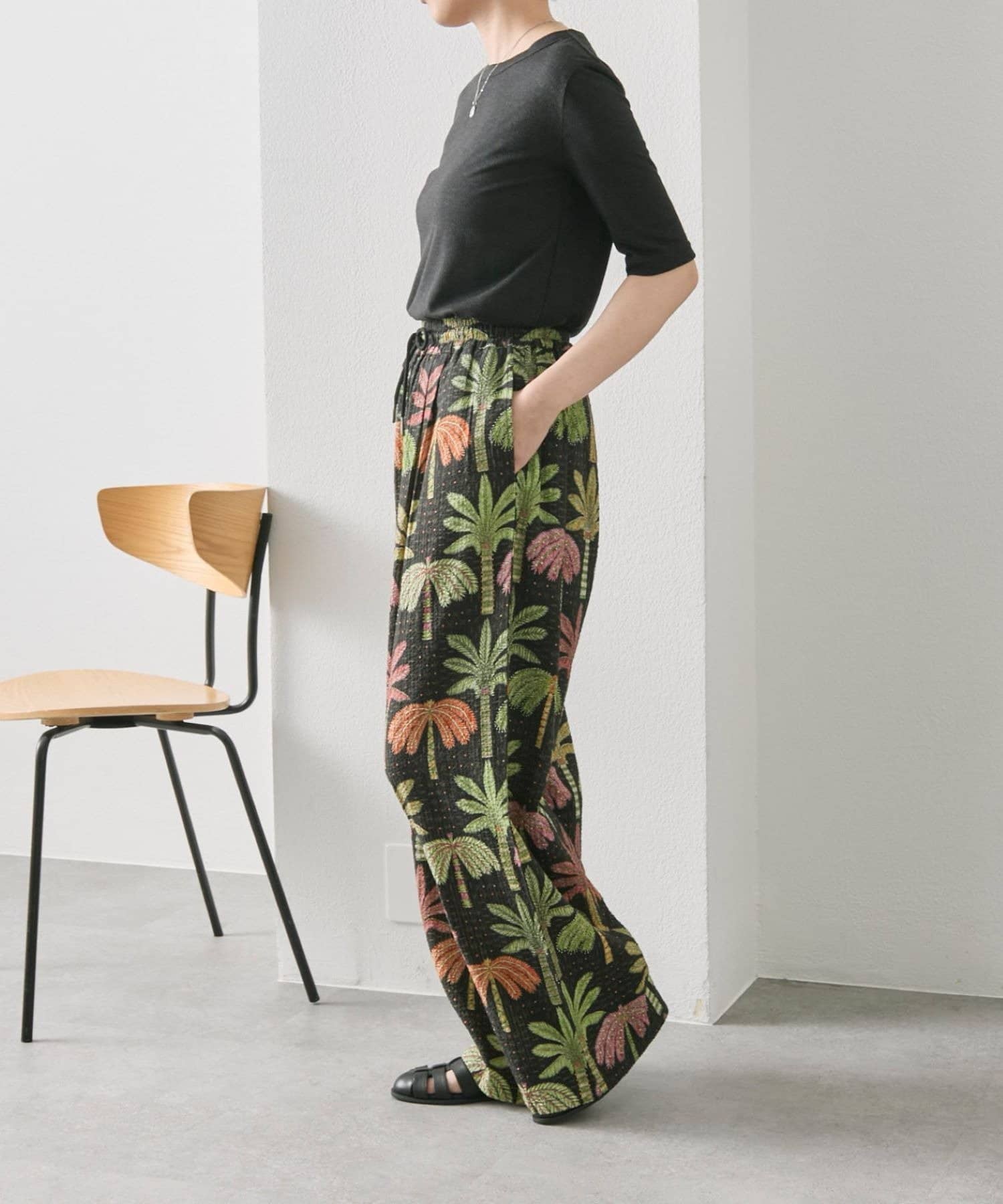 sampo×ear ヤシ柄パンツ 《サッカー生地/通気性◎/ボタニカル柄/ウエスト総ゴム》